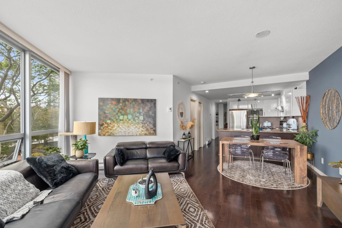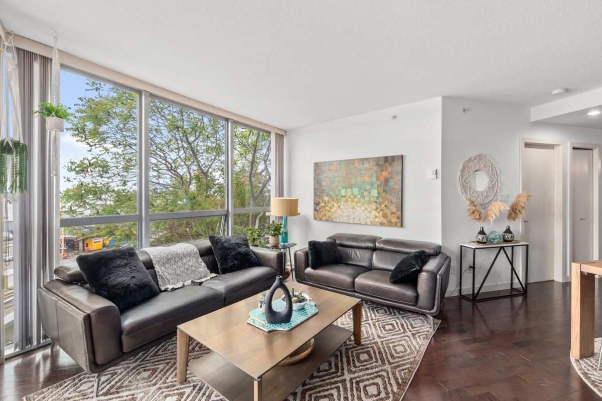 Interurban Building located @ Quay- New Westminster. The condo boasts modern amenities and thoughtful design touches. The open-concept layout creates a seamless flow between the kitchen, living, and dining areas. Nestled in the heart of the city, this two-bedroom, two-bathroom condo offers not just a home, but a lifestyle. With an expansive view that captures a panoramic vista of the river from the patio and every window.Convenience is key, and this property delivers. Located within walking distance to the River market and skytrain station, commuting is a breeze, whether it's for work or leisure. No need to worry about parking or traffic – just step outside and you're on your way.