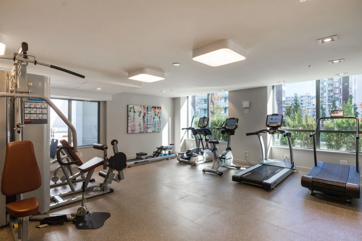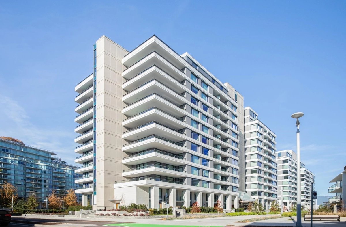 Experience waterfront living at its finest in the exclusive Navio building by Concert Properties. Built in 2018 and ideally located beside the upcoming 2.7-acre “West Park,” this elegant east facing 1 bed + den (approx. 50 sf) end unit lives larger than its footprint, sharing only one wall and framed by expansive windows that bathe the interior in natural light. Features include Bosch appliances, air conditioning, EV parking, and a private balcony overlooking the tranquil courtyard. Enjoy serenity away from street noise while being steps to the Seawall, SkyTrain, boutiques, cafés, and world-class dining. Resort-style amenities include concierge, fitness centre, rooftop terrace, lounge, visitor parking, and secure bike lockers—the perfect blend of urban luxury and waterfront calm.