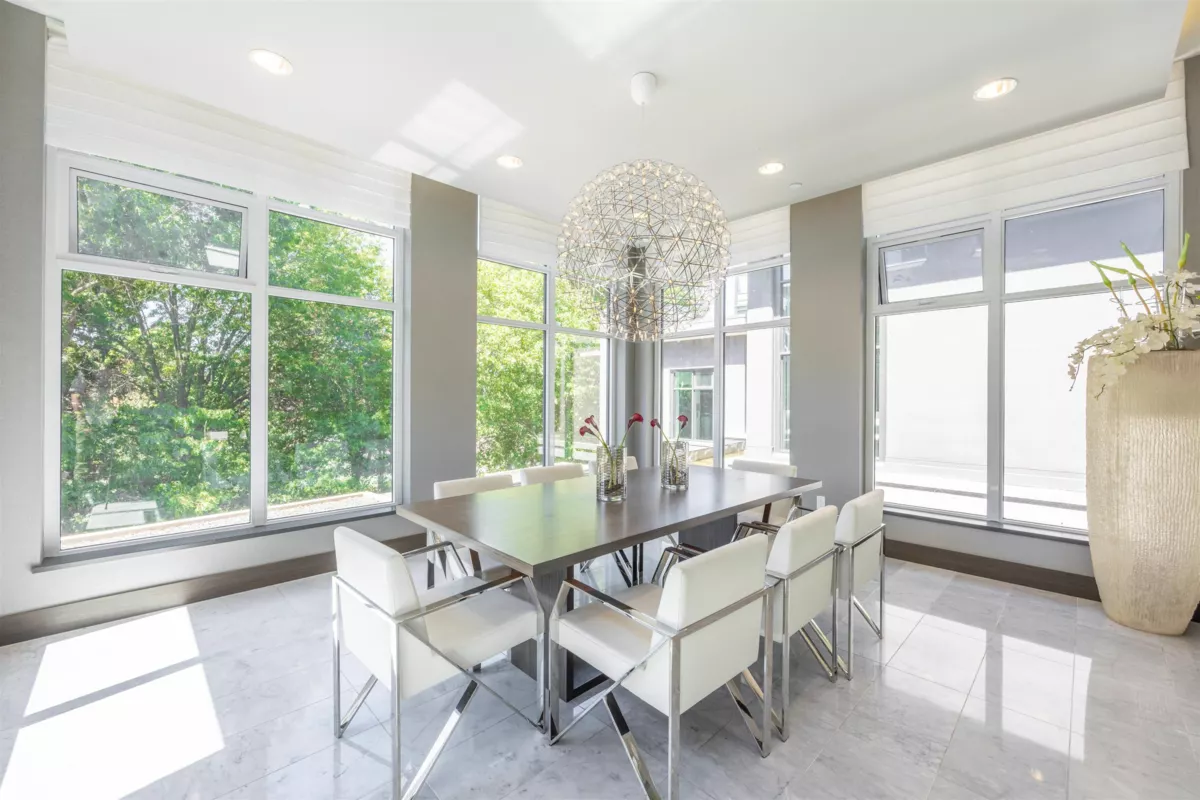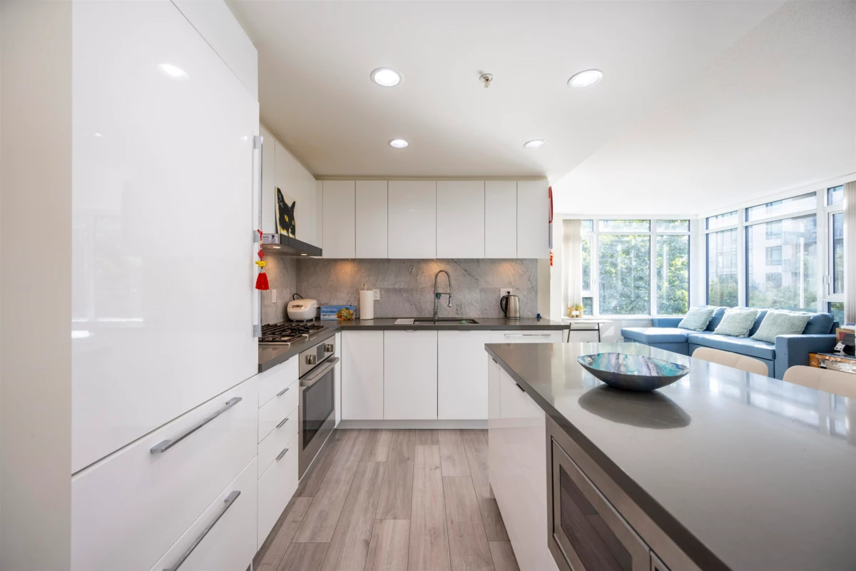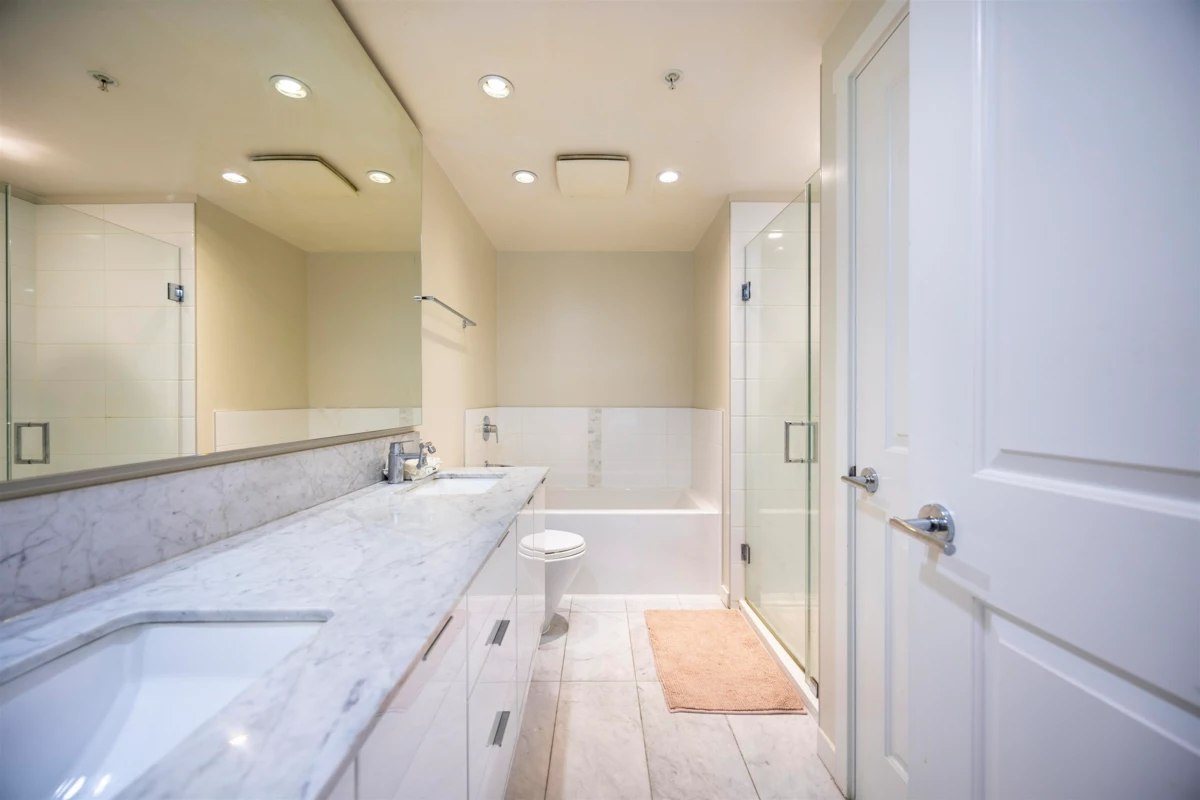 Experience luxury living in the heart of Central Richmond with this exclusive south-east corner unit. This elegant two-bedroom home in the prestigious Parkside tower offers air-conditioned comfort. The sleek Bosch appliances and custom cabinetry elevate the modern kitchen, complemented by a quartz island perfect for entertaining and meal prep. Floor-to-ceiling windows bathe the space in natural light. Unwind in the spa-inspired ensuite, featuring a walk-in shower with European thermostatic controls, a deep soaker tub, floating wood cabinetry, and marble floors. As a resident, you'll enjoy exclusive access to the private Carrera clubhouse offering premium amenities for your convenience and relaxation. Just steps to Richmond Center and Skytrain.