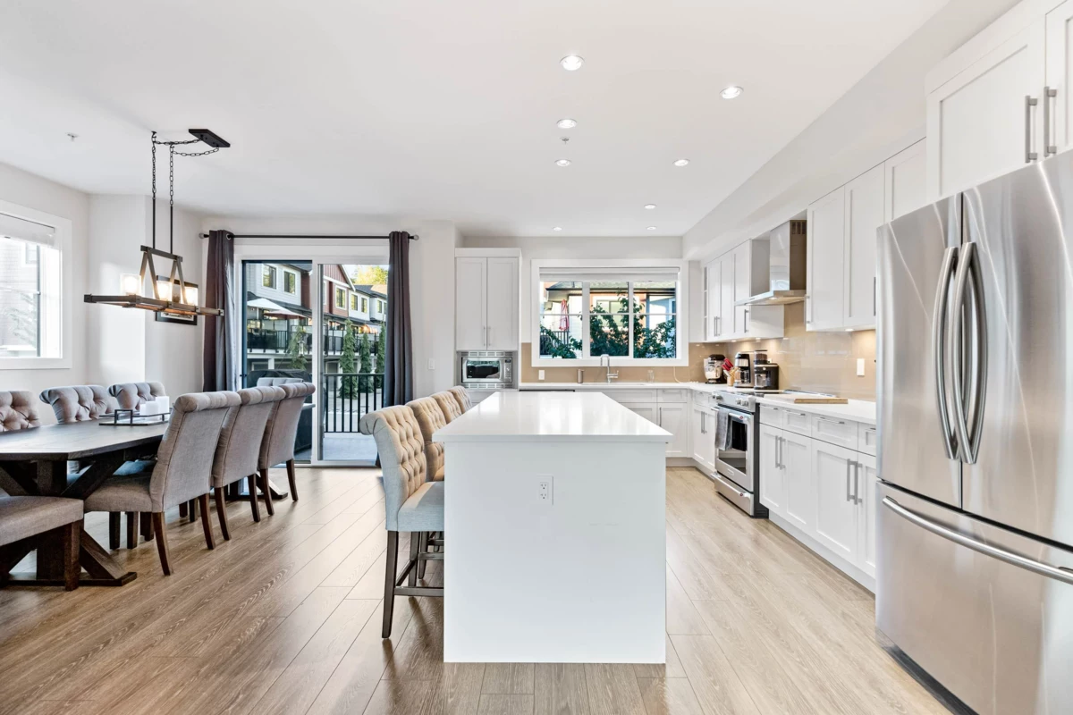 SUPERNATURAL SILVER VALLEY! Nestled atop Rockridge lies sought after Archstone. Expansive end unit w/ rare extra wide floor plan lives like a home. Dramatic main has 9' ceilings, sun drenched living room, large dining room, powder room & designer kitchen. Boasting an oversized quartz island, S/S apps & custom cabinetry. Enjoy a sunny balcony just off the kitchen; perfect for morning coffees or BBQing. Upstairs find 3 spacious beds w/ BONUS 4th bed below OR office/rec/gym space. Double side by side garage fits a full size truck + massive driveway fits 4 additional vehicles . Tons of street parking right out front of the fully fenced yard. Immaculately kept home that shows brand new. Explore lakes & trails, breweries, amazing golf courses, top of the line schools & local farm fresh shops!