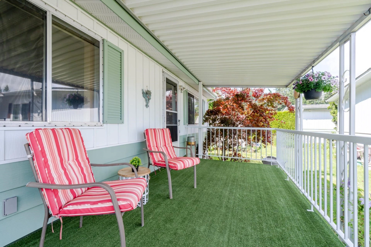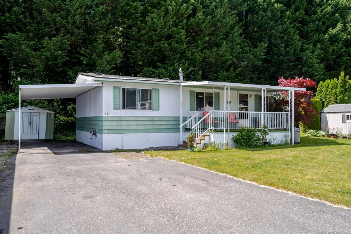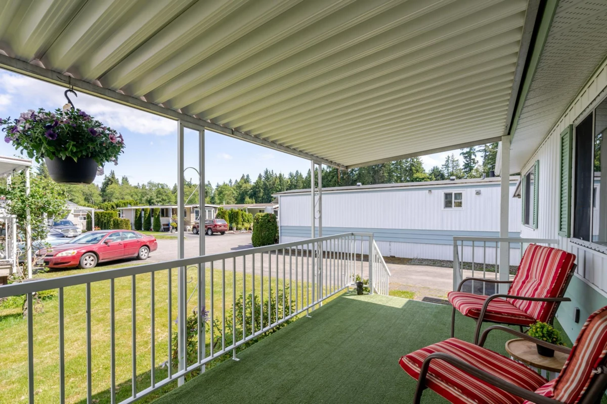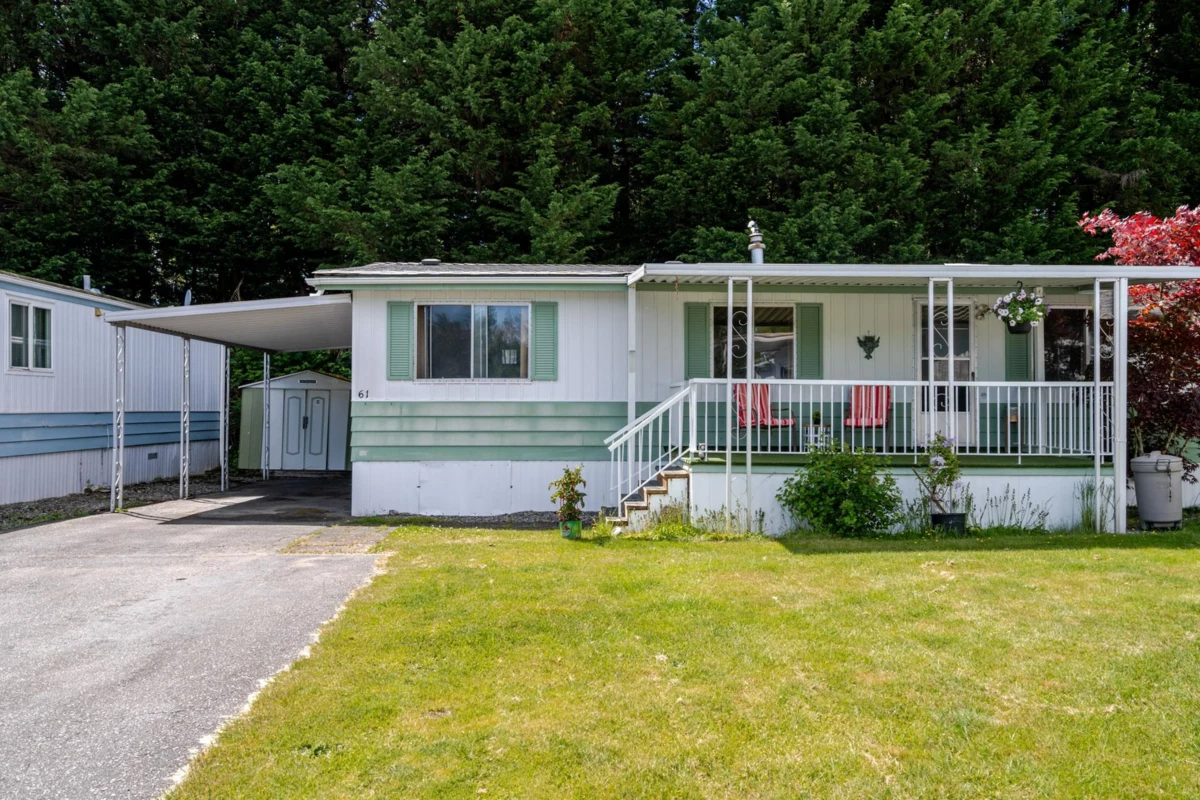 Welcome to Brookswood's most desired 55+ park, Pineridge! This DOUBLE WIDE features unique attributes you won't find in other mobile homes. Offering TWO storage sheds, TWO sundecks, a wrap around yard and parking for at least 7 cars. Updates include new roof (April), hot water tank & furnace (2023), washer (2024), dryer (2023). This unit has two good sized bedrooms and one bathroom. 1 pet is allowed up to 14 inches at the withers. Don't miss your chance to own this unique home.