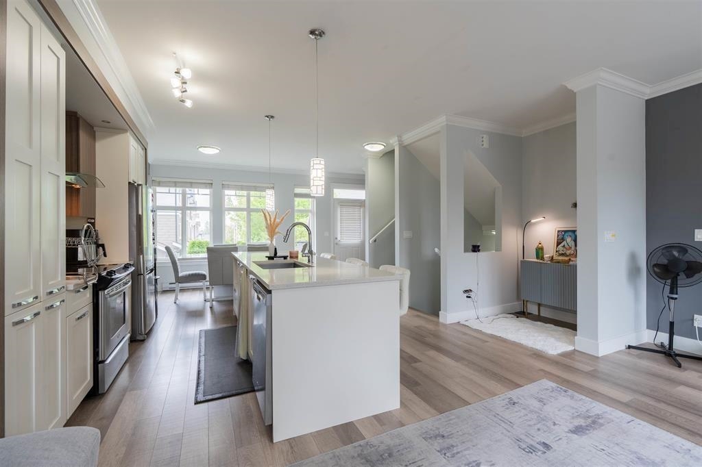 Canvas at Sullivan Hills offers a functional open-concept floor plan with 4 bedrooms and 3 bathrooms. This executive townhome features a spacious kitchen with pantry, quartz counters, stainless steel appliances, large island, and a bright great room. Quality finishes include crown moulding, laminate flooring on the main, marble counters in all bathrooms, and a spa-inspired ensuite with double sinks. Enjoy the large rec room, inviting deck, walk-out patio, and fenced yard with irrigation. Additional highlights include a main floor powder, side-by-side garage, whirlpool washer/dryer, and roughed-in central vacuum. Close to schools, parks, and shopping. Book your private showing today!! The seller is highly motivated to sell.