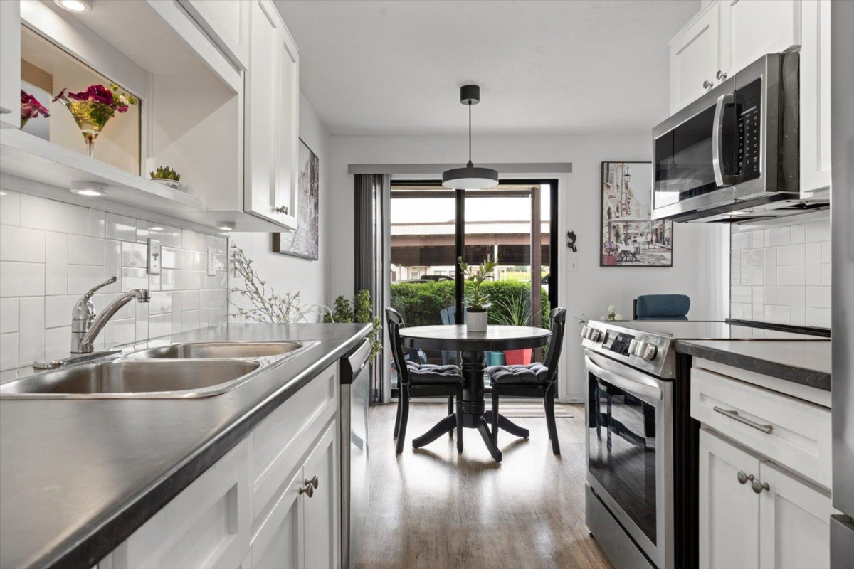 Welcome to Ascott Estates!! This beautifully renovated ground floor END UNIT townhouse is sure to impress you. This 2 bedroom 1 bathroom unit has been tastefully updated with new flooring, fresh paint, lighting, updated kitchen with s/s appl, backsplash & countertops, lighting and much more!! Comes with 2 patios for you to enjoy 2 storage units and in-suite laundry. This well-maintained 55+ community offers fantastic amenities, including a clubhouse w/ kitchen & pool table, workshop, and plenty of bike and RV storage. STRATA FEES INCLUDE HYDRO, HEAT, SEWER & HOT WATER, maintenance, gardening and use of the amenities. Please note: No pets, except for approved support or assistance animals. Don’t miss your opportunity to make this beautiful home yours!