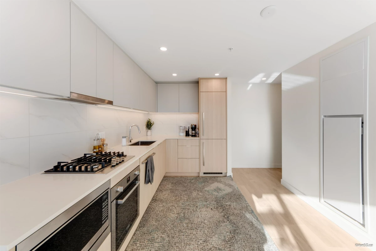 This brand-new, south-facing one-bedroom at Anthem’s SOCO is bright, modern, and move-in ready. The open dining and living areas offer beautiful city, greenery, and water views. The spacious kitchen comes equipped with an integrated Bosch appliance package, including a gas cooktop. Enjoy modern comforts throughout the home such as roller shades, laminate flooring, quartz countertops, a deep soaker tub, and a heat pump providing year-round heating and cooling. SOCO offers an exceptional lifestyle - just minutes from Lougheed Mall, the SkyTrain, and Burquitlam. Residents also enjoy impressive amenities including BBQ areas, guest suites, a basketball court, a playground, and beautifully landscaped gardens.