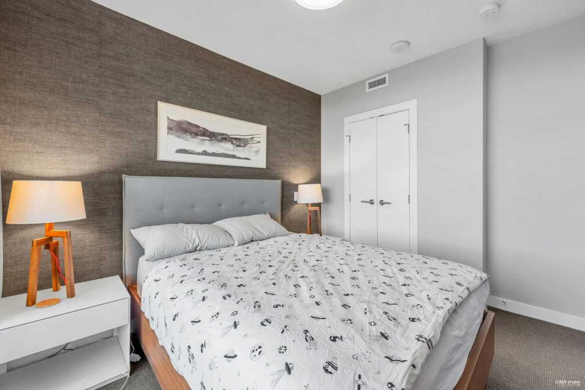 Bright, functional 1-bed+den home at Cambie Star, 590 sq ft with an efficient layout and no wasted space. East-facing with open mountain and city views, plus oversized balcony. Kitchen features an integrated Liebherr fridge and freezer, Fisher & Paykel gas cooktop and dishwasher, quartz countertops, and soft-close cabinetry. Engineered hardwood flooring in living area, with Blomberg washer & dryer. The bedroom includes a walk-in closet with custom built-in cabinetry. The den works well as a storage room and includes custom shelving. Located in the heart of Cambie Village, steps to shops, cafés, Queen Elizabeth Park, and directly adjacent to King Edward Canada Line Station. School catchment: Edith Cavell Elementary & Eric Hamber Secondary. Includes 1 parking stall and 1 bike locker.