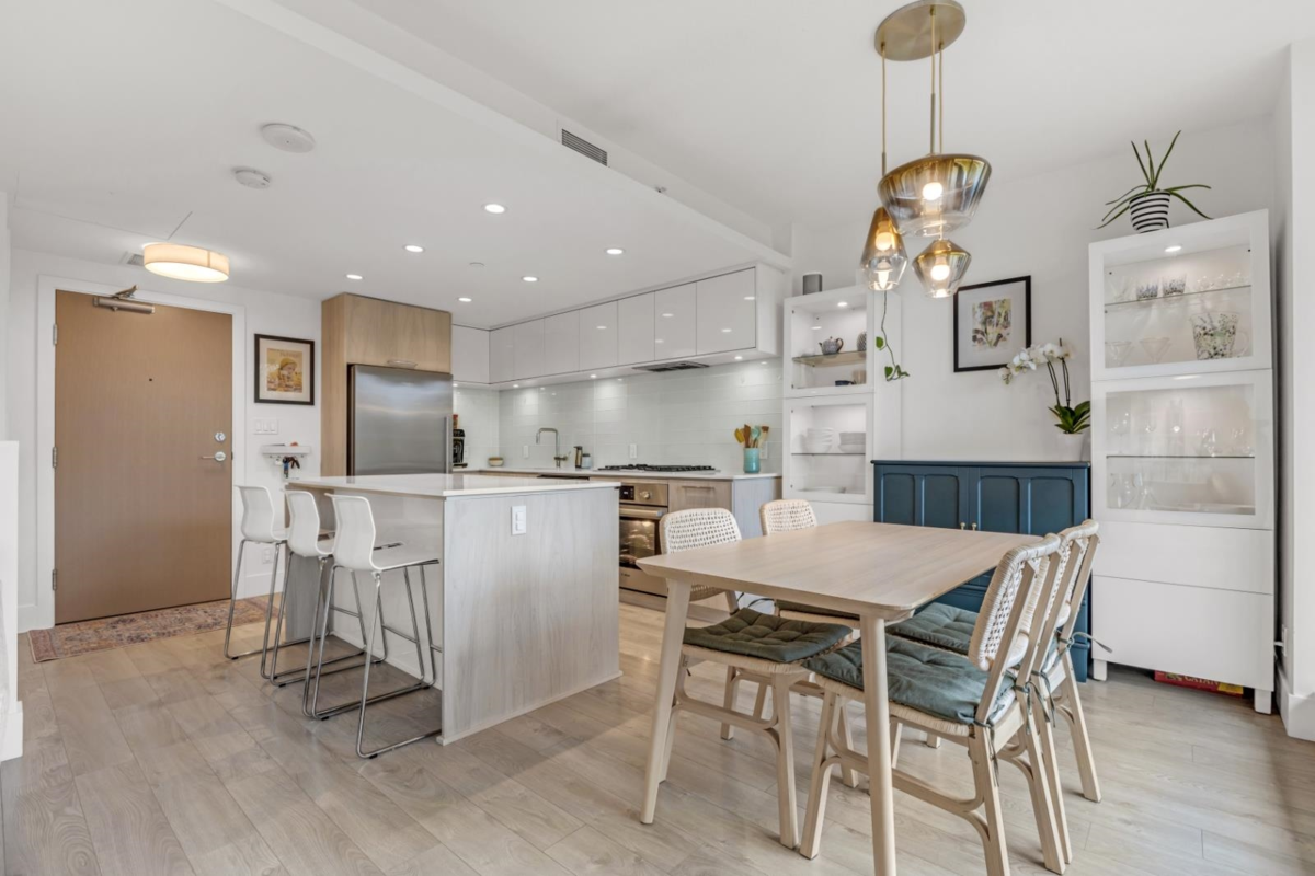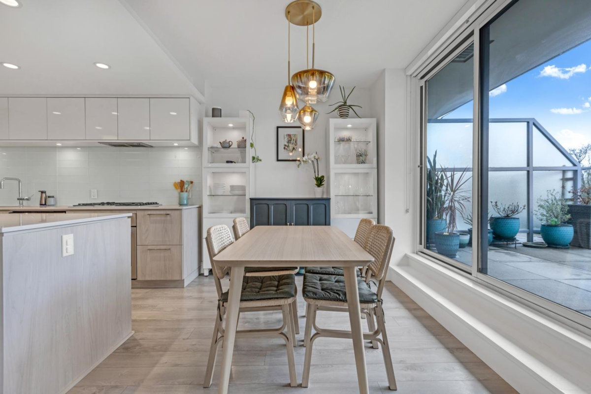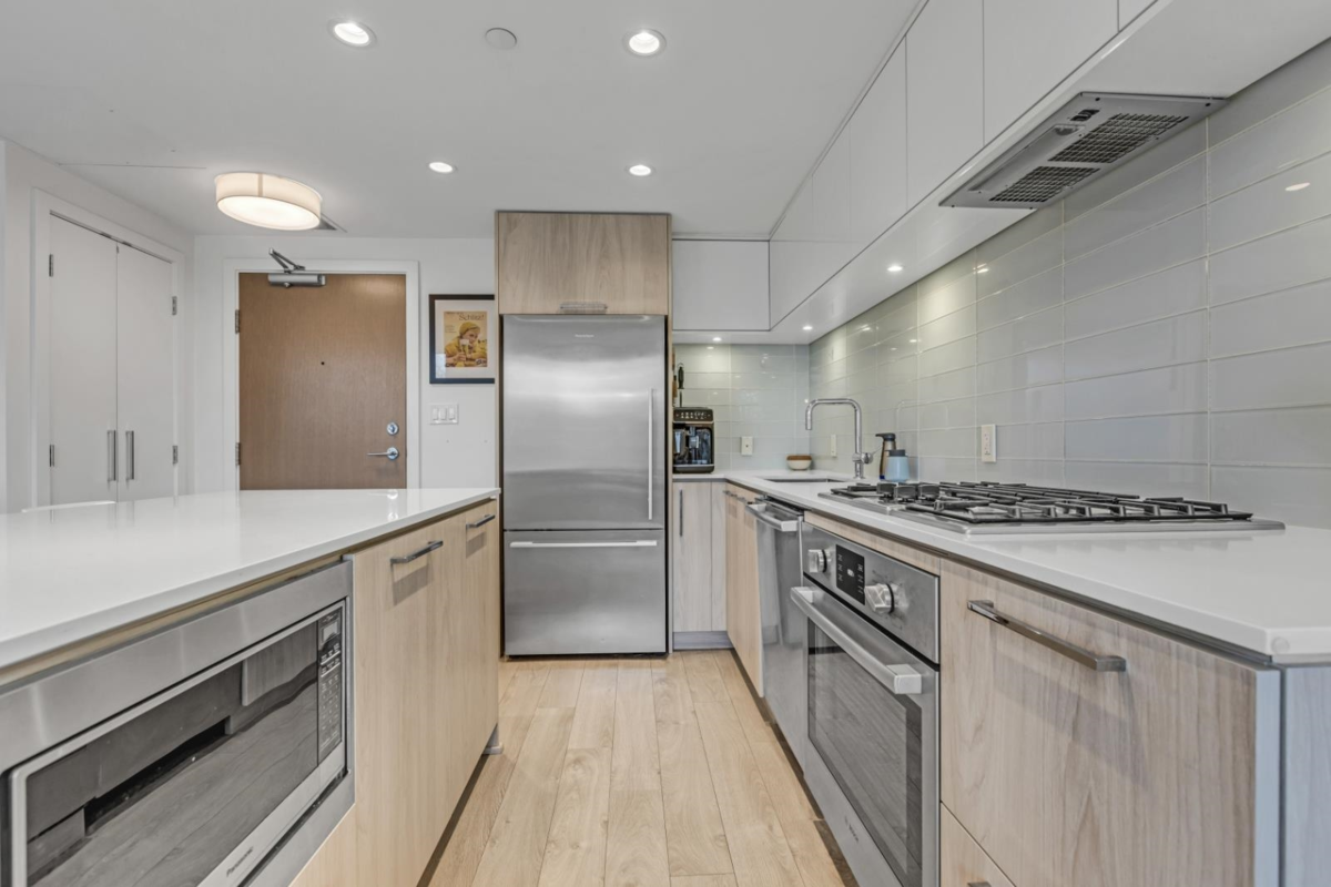 Discover elevated North Shore living in this top-floor, two-level City home with breathtaking views of Grouse Mountain, Lynn Creek, and a peek of Vancouver. This 2-bed + den, 2-bath home offers west-facing triple-pane windows, a European kitchen with Bosch and Fisher & Paykel appliances, and dual sliding doors leading to a large balcony. The lower level has a primary bedroom with ensuite, second bedroom, full bath, den, and in-suite laundry. Amenities include concierge, Denna Club access with a pool, gym, sauna, and steam room, plus guest and meeting rooms. Pet-friendly, with storage, bike room, and parking near the elevator-just minutes from downtown and nature! OPEN HOUSE: Sunday, June 1'st, 2-4pm