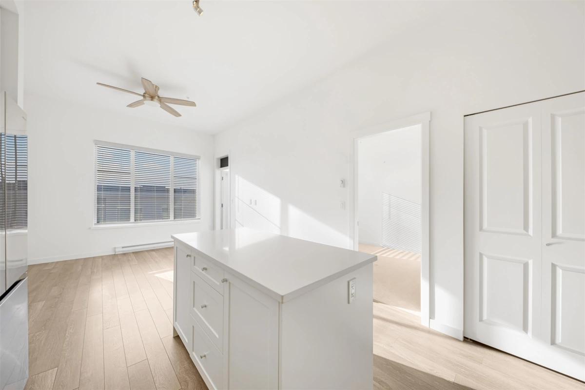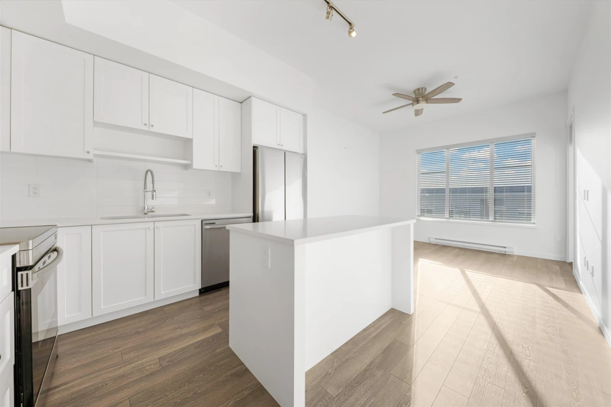Welcome to FLEETWOOD VILLAGE by Dawson + Sawyer. This top-floor Jr 2 Bed plan offers 10-foot ceilings, a bright open layout, and a modern kitchen with stainless steel appliances and quartz counters. Quiet side of the building, away from Fraser Highway, and includes 1 parking. Building amenities include a pet shower, yoga room, weight room, on site day care and an amenities room. Two pets permitted. Steps to the future SkyTrain, shopping, dining, and parks. A well-kept unit in excellent condition, ideal for first-time buyers or investors. Quick Possession available.