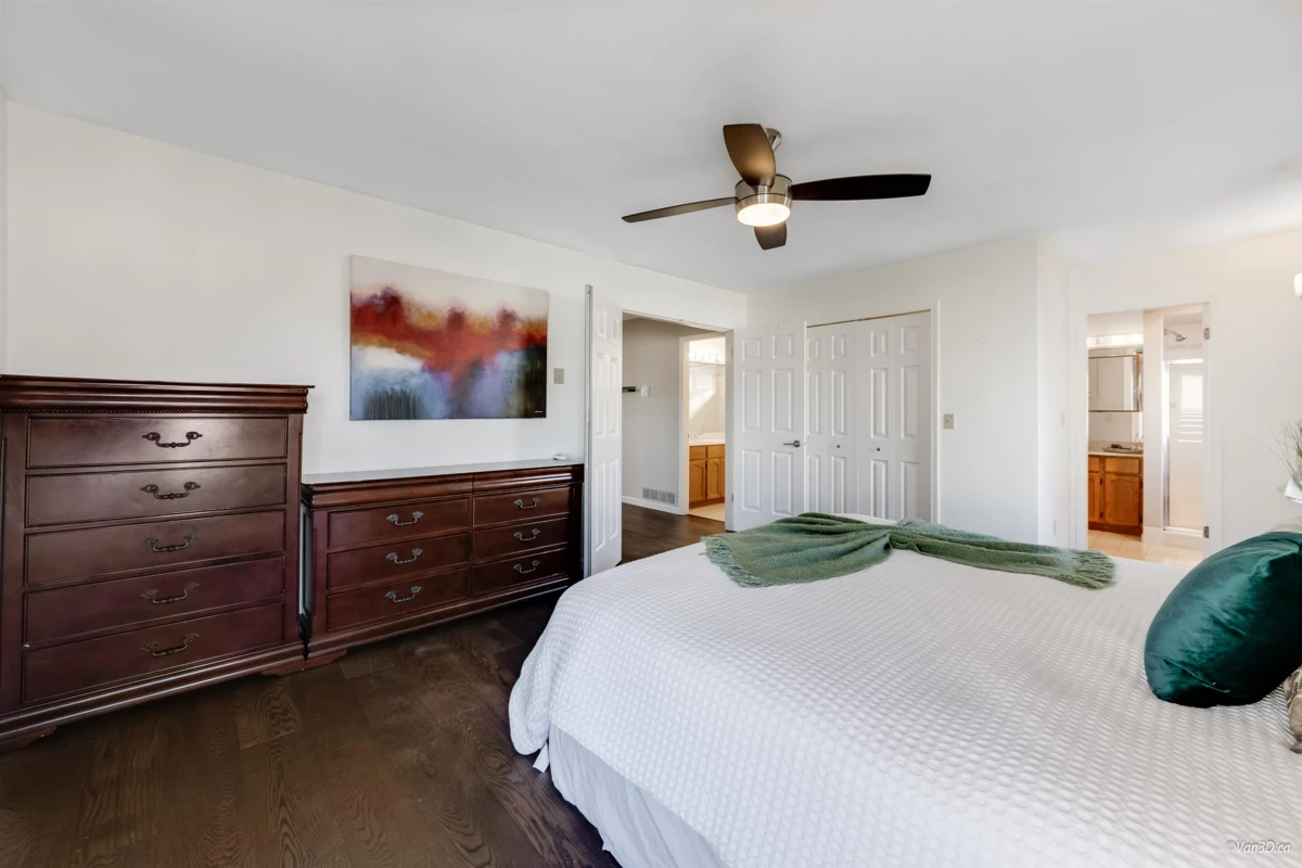 This beautifully maintained home offers space for the whole family and is just a short walk to Holly Elementary. The functional layout features a bright living and dining room with vaulted ceilings, leading to an open-concept kitchen with white shaker cabinets, quartz countertops, and a subway tile backsplash. The cozy family room boasts custom built-ins and a gas fireplace. Upstairs, you'll find a large games room, two bedrooms, and a spacious primary suite with a walk-in closet and ensuite. Additional highlights include a den (or 5th bedroom), a double garage, laminate flooring, and a private backyard perfect for relaxing or entertaining.