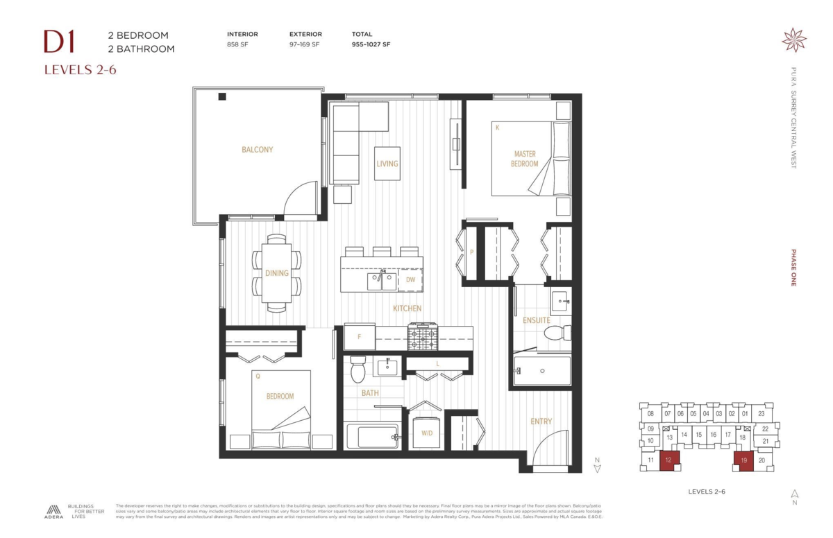 PURA - A collection of 1 to 2 bed + den urban homes built by Adera Developments. These homes are sustainable and built with enduring Mass Timber in Surrey Central's blossoming West Village. Just steps away from parks, schools, shopping, dining & 2 skytrain stations. Amenities include rooftop terrace with gas fireplace as well as putting greens, high end fitness facilities and a co-working lounge. Every home features radiant in-floor heating and full size SS appliances package including gas range and W/D. Strata fees INCLUDE heat, hot water and gas. Presentation Center open daily from 12-5 PM. Low 10% deposits. Ask about limited time purchaser incentives!