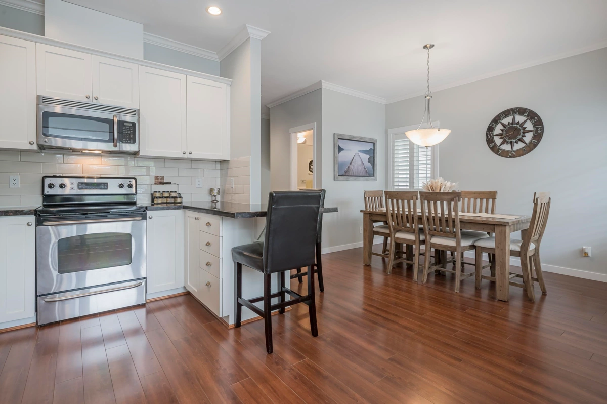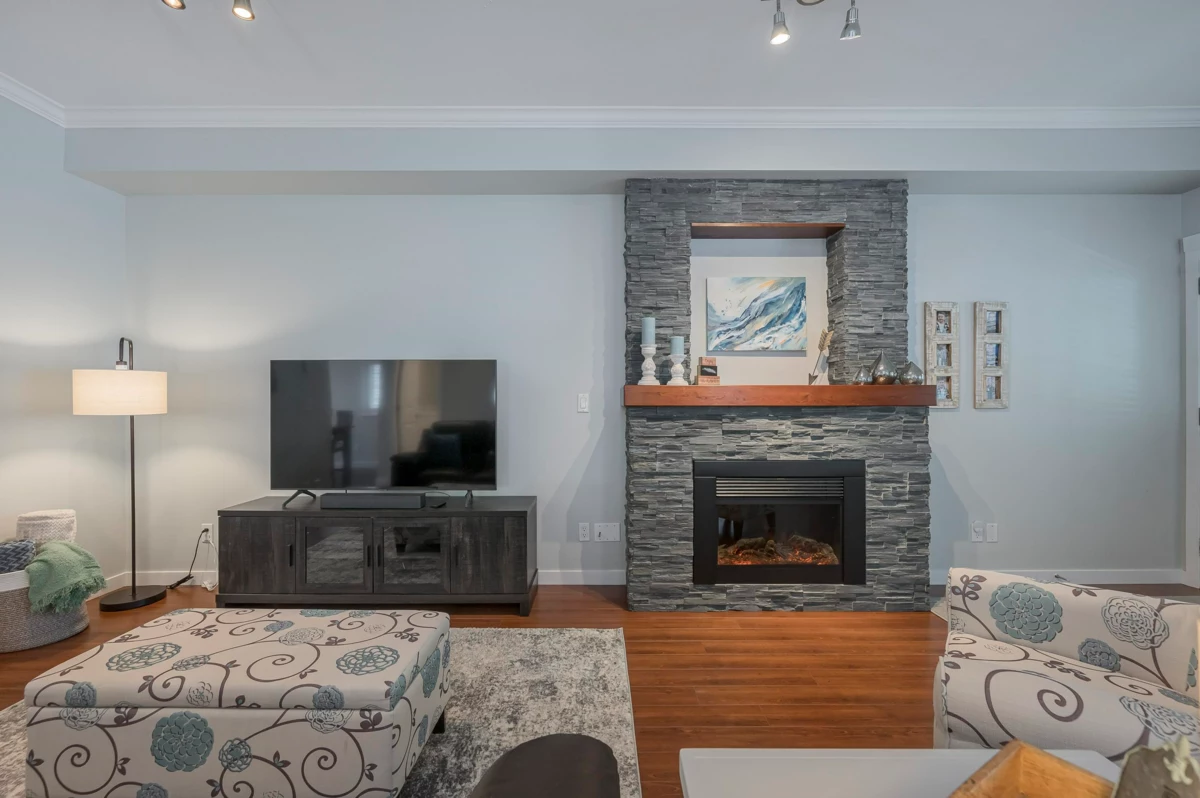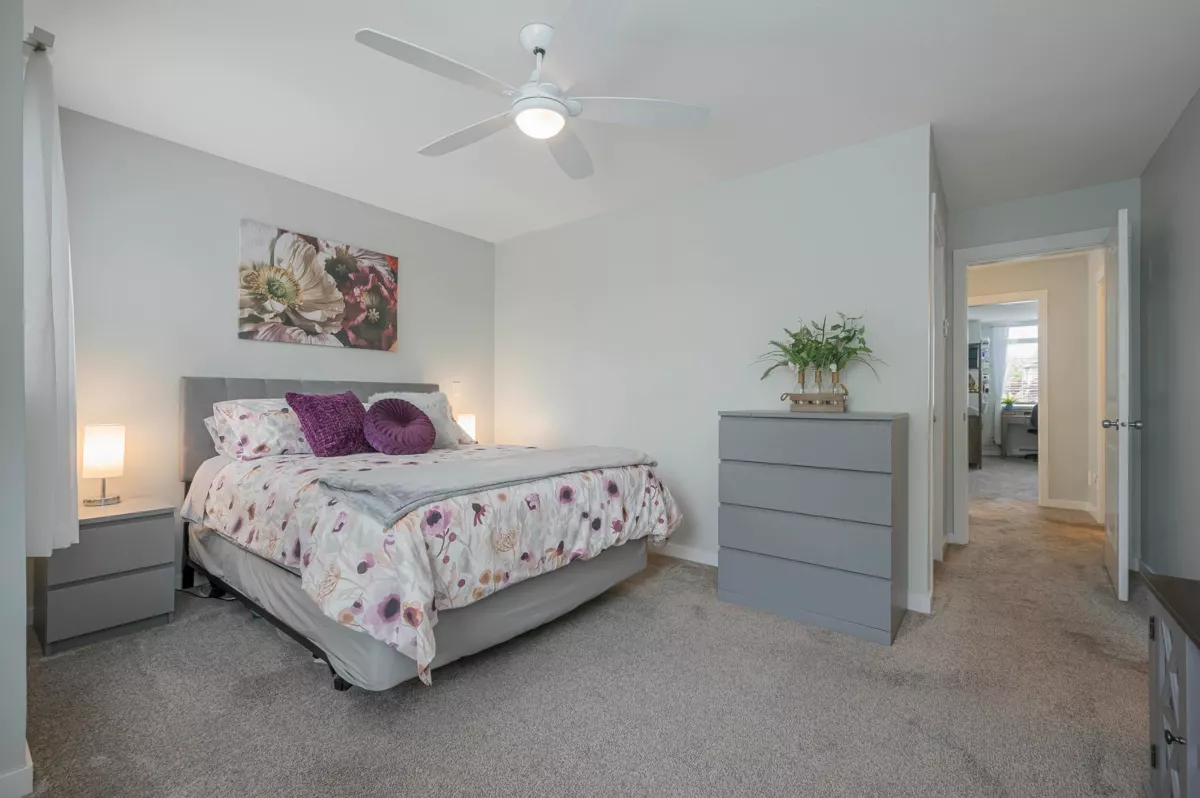 Welcome to this stunning 1,646 sq. ft. corner unit in the sought-after Indigo community. Designed to feel like a single-family home, this unique townhome offers two well-sized bedrooms, a spacious primary suite, two and a half bathrooms, and parking for three vehicles. The main floor exudes elegance with California shutters, crown moulding, resurfaced cabinets, and new appliances. Upstairs, the primary suite is a true retreat, boasting a spa-like five-piece ensuite with a double-wide shower, soaking tub, and dual sinks—the perfect space to unwind. Book your private showing today!