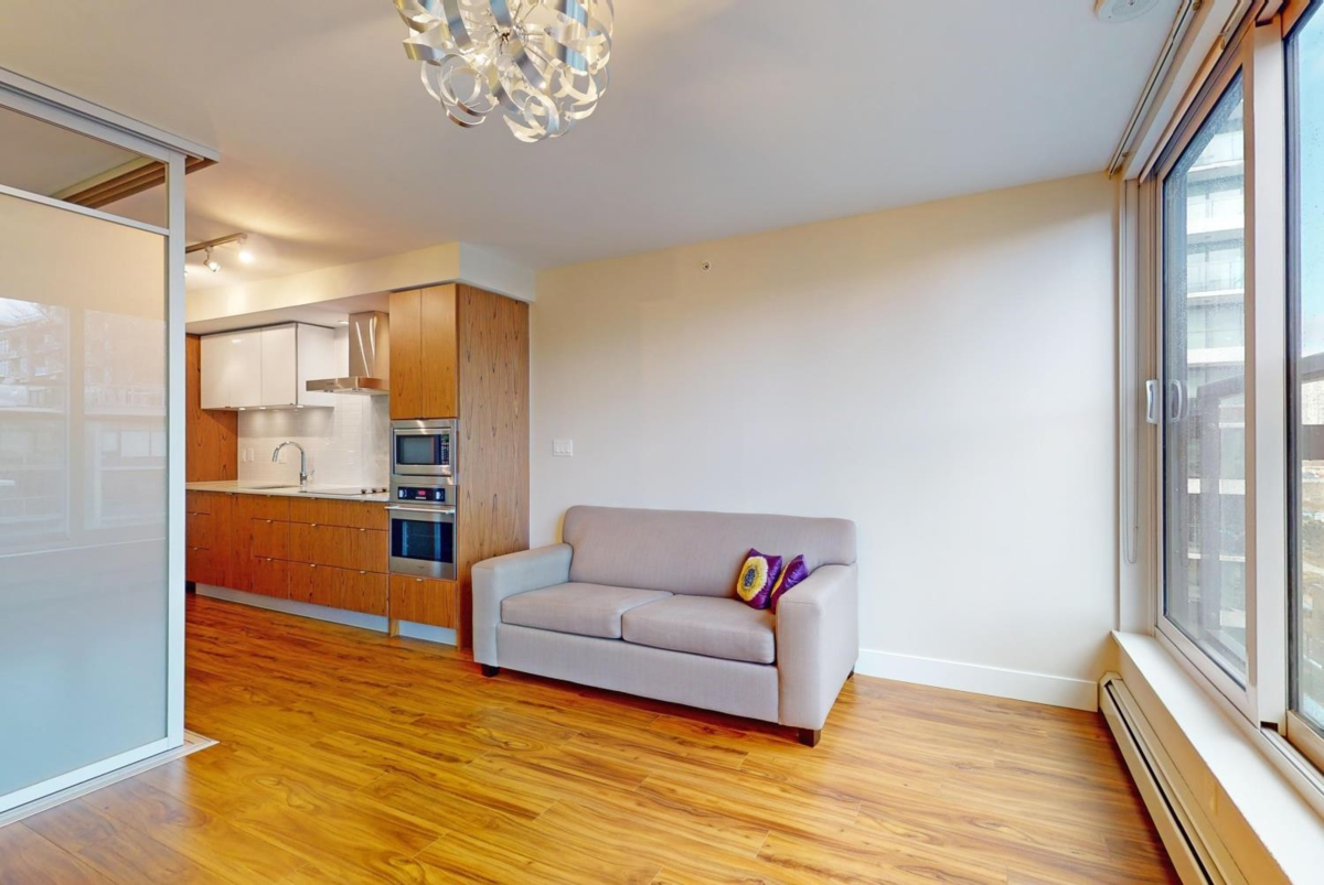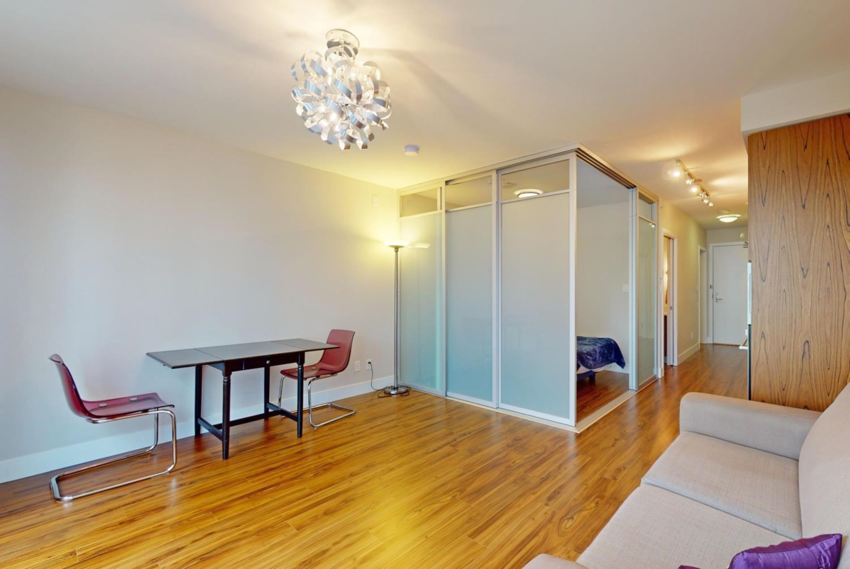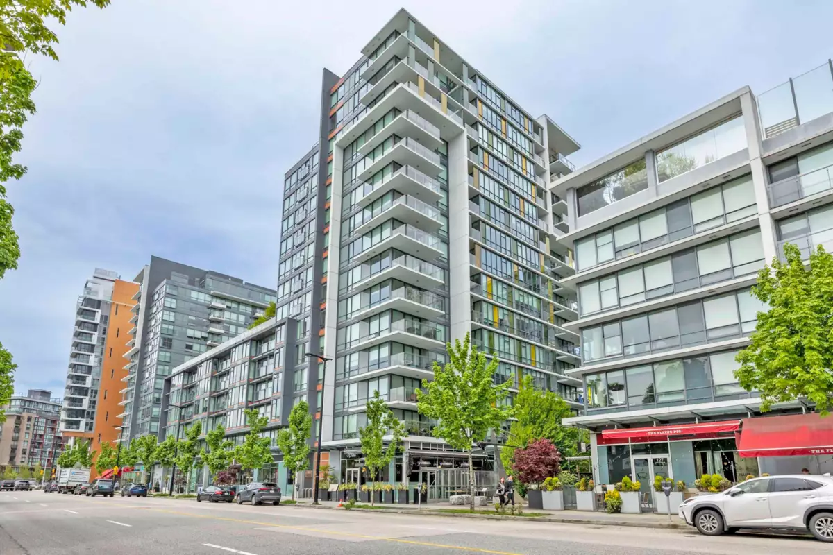 Tower Green at West, located in the heart of Olympic Village. This immaculately-kept junior 1-bedroom residence boasts 515 square feet of living space with a flex room, plus 1 parking and a locker. Enjoy the modern, open layout highlighted by floor-to-ceiling windows, sleek Eurostyle kitchen features high-end stainless steel Blomberg and Fulgar appliances, quartz countertops, and contrasting upper/lower cabinets for ample storage. Amenities including landscaped rooftop, BBQ patio, gym, meeting room, and party lounge. Live Vancouver's best location, packed full of choice restaurants, bars, shops, & steps to the Seawall and 2 skytrain stations.