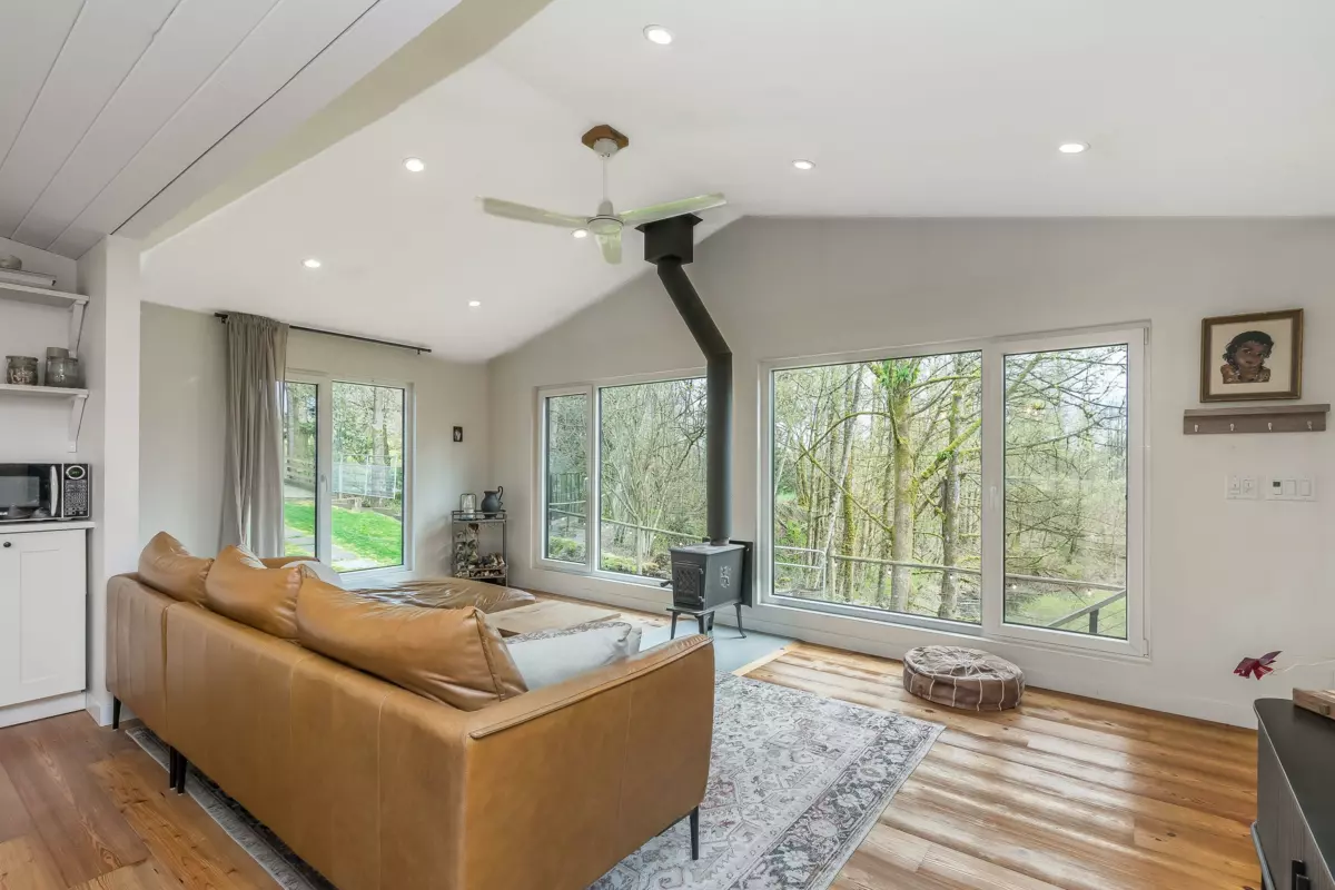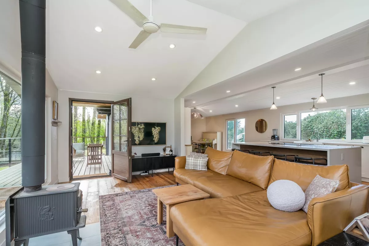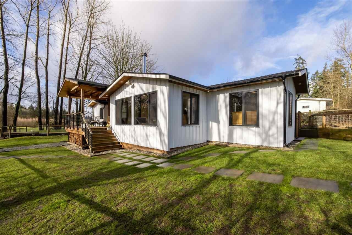 Dreaming of your own hobby farm? This uniquely renovated manufactured home, sitting on 1.85 ACRES, offers just that! Discover a modern 2 bed/2 bath layout with abundant natural light streaming through large European-style windows and doors. Fully renovated in 2016, it boasts a new roof, kitchen, bathrooms, floors, newer septic field & tanks, and a brand-new Waterwell system. The kitchen dazzles with a Belfast sink, double oven, and spacious island. Relax in the master bedroom with its walk-in closet and luxurious ensuite, featuring a clawfoot tub. Enjoy panoramic views of the property from every room and the deck. Outbuildings include two barns, a shed, and a greenhouse. Plus, your very own pond!