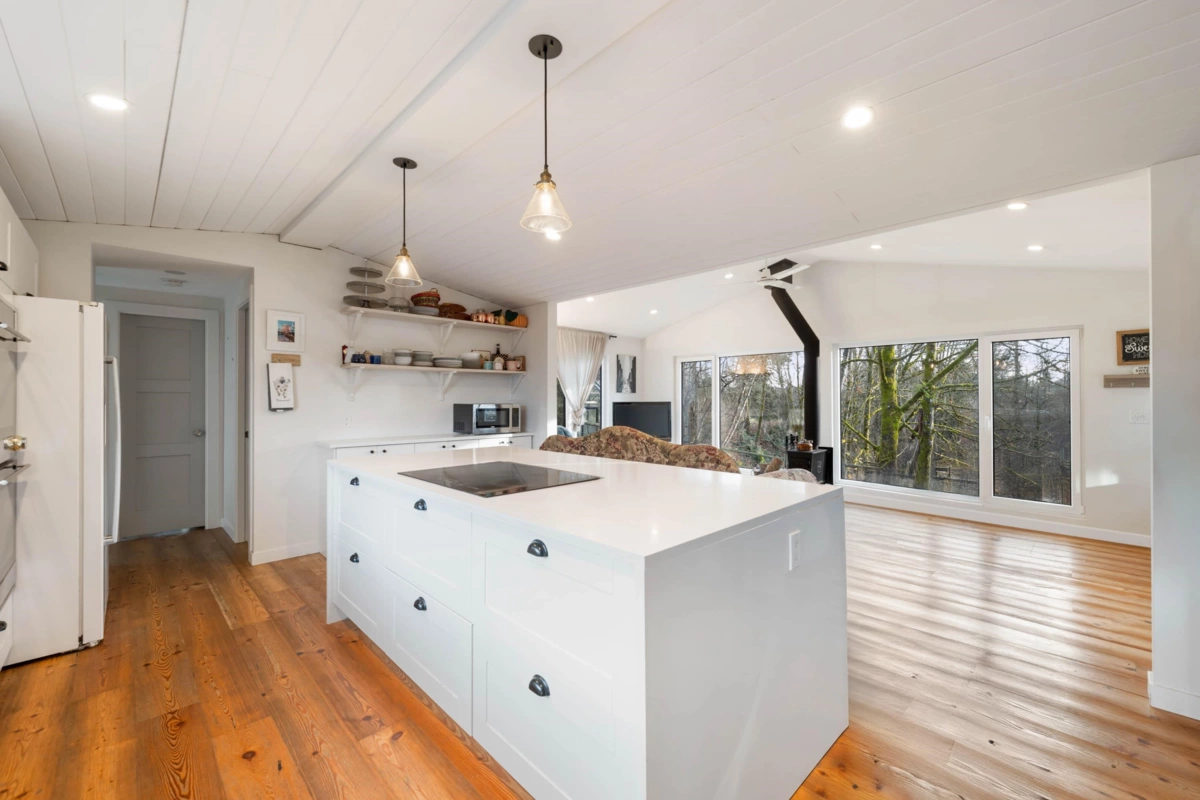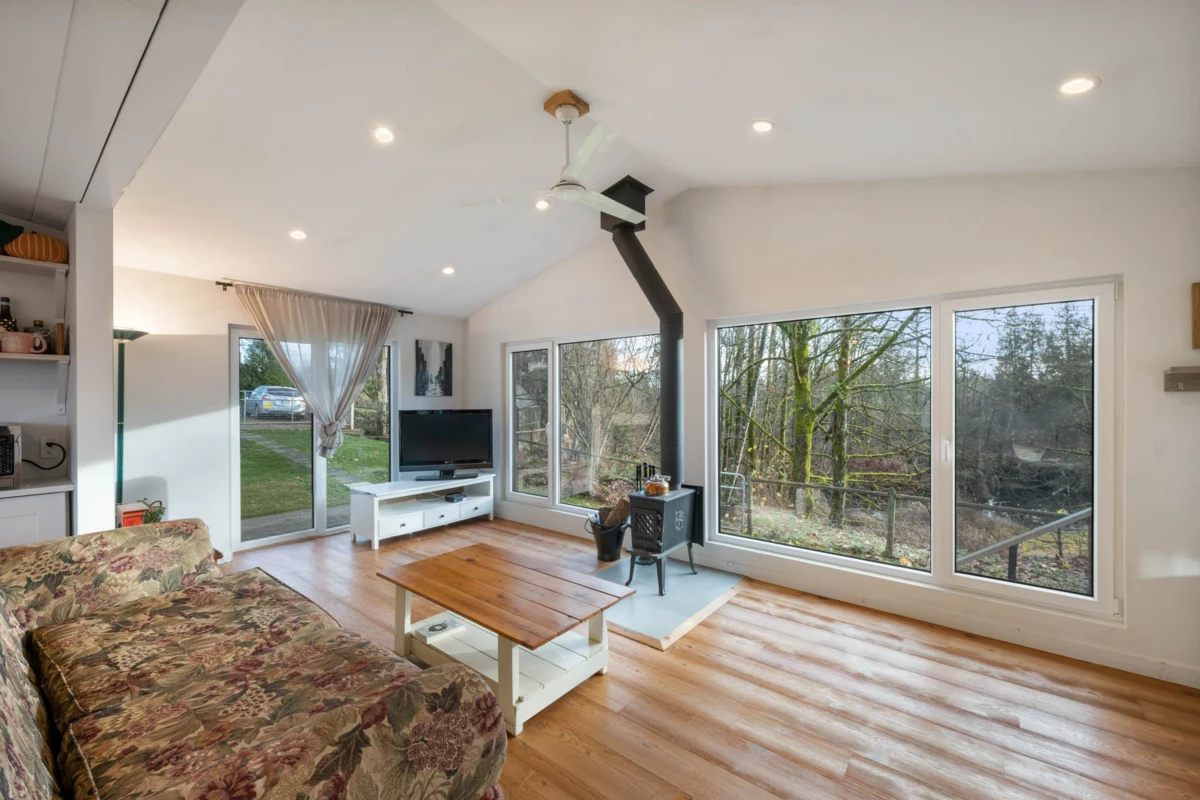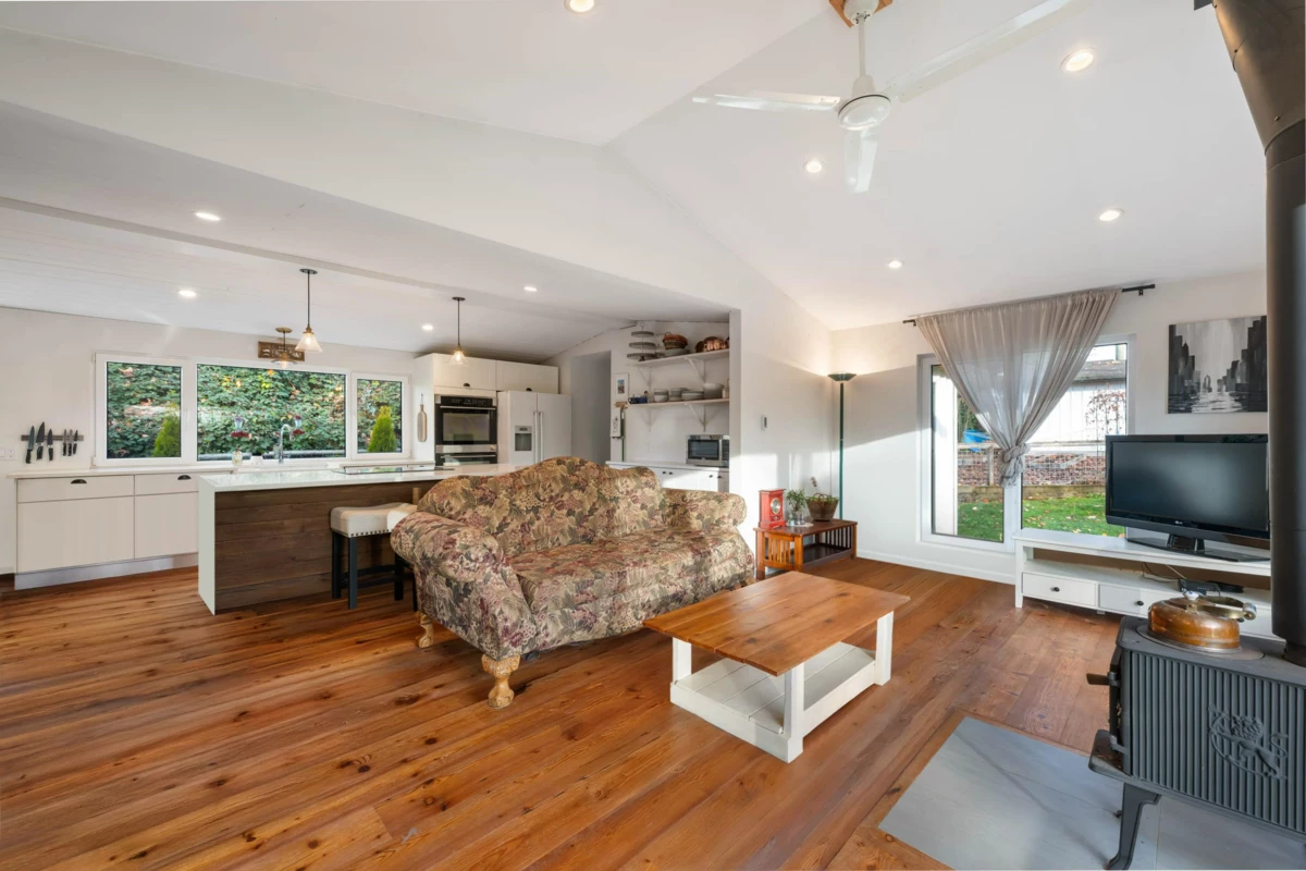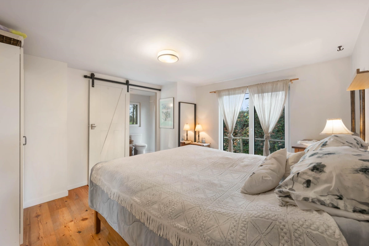 Dreaming of a hobby farm lifestyle? This uniquely renovated home on 1.85 acres puts that dream on the table. Step inside to a bright, modern 2-bed/2-bath layout flooded with natural light from oversized European-style windows and doors. Fully renovated in 2016, the home features a new roof, refreshed kitchen and baths, updated flooring, a newer septic field and tanks, and a brand-new Waterwell system. The kitchen delivers serious country-chic credentials with a Belfast sink, double oven, and a generous island built for gathering. The primary suite offers a walk-in closet and a spa-inspired ensuite complete with a clawfoot tub. Every room—and the deck—captures sweeping views of the acreage. Outside, two barns, a shed, a greenhouse, and even your own private pond round out the offering.
