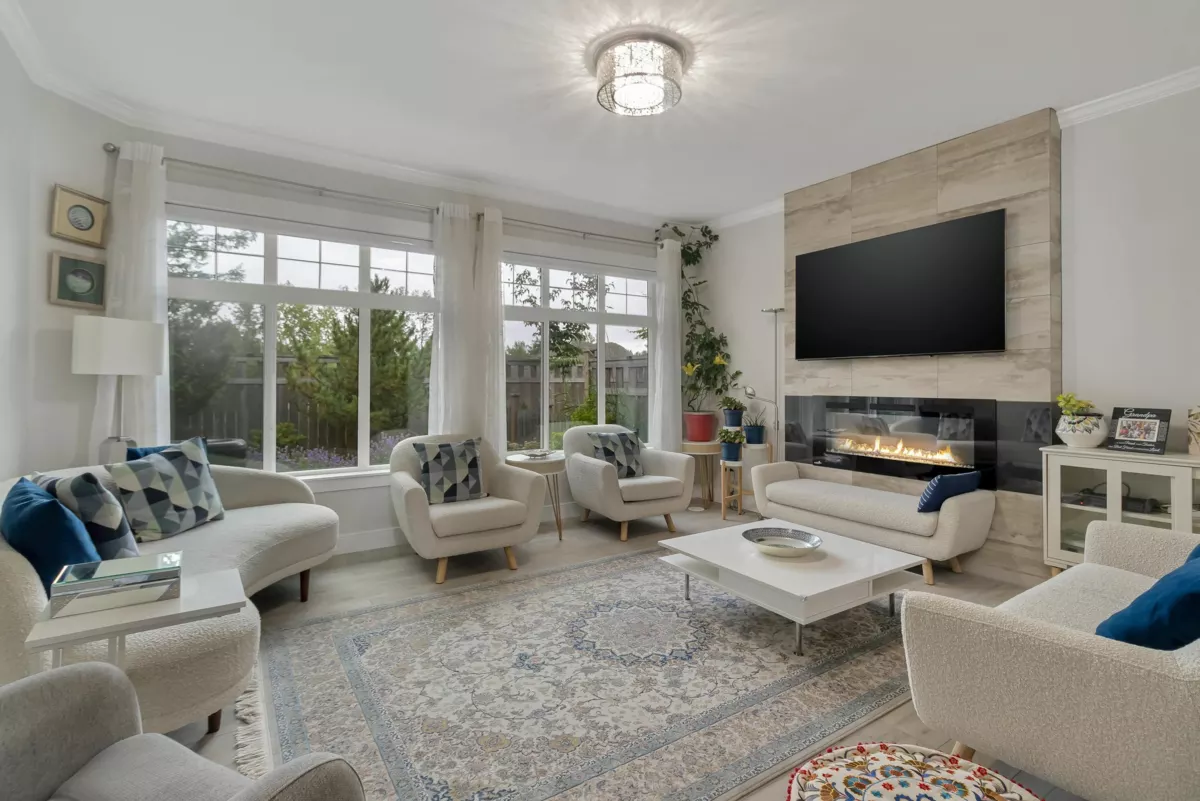 Welcome to this stunning, meticulously maintained 4-bedroom, 4-bathroom townhome in the heart of Fleetwood! Built in 2021 and shows 10! This spacious 2,792 sqft residence offers luxurious living across 3 levels. Enjoy year-round comfort with air conditioning, and entertain in style with a gourmet kitchen featuring a gas stove, wine cooler, pantry space. The open-concept main floor includes a cozy electric fireplace, while the lower level boasts a large rec room with its own wet bar--perfect for movie nights or hosting guests. Additional highlights include a double side-by-side garage, built-in vacuum, and an abundance of closet and storage space throughout. Open House Sun, Aug 24 between 12-2pm