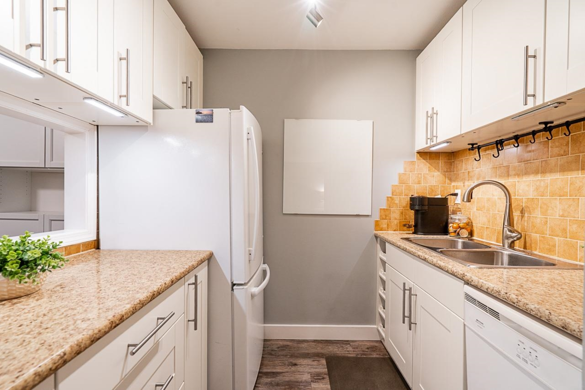 PRICED BELOW THE LAST SALE. Beautiful 3-bedroom townhome in the popular well maintained complex CEDAR PARK. 2 pets any size welcome and tons of parking on a first come basis. This unit offers a storage room, updated appliances, built in dining room hutch, electric fireplace, double glazed windows, private deck off the primary bedroom and newer laminate floors. Main bath has been completely renovated. Enjoy the east exposed fully fenced backyard with TREX decking ($5k) and gazebo. Walk to Parkside Elementary, the up & coming ATC shopping district, and the bus stop right there on 32nd. Home Sweet Home!