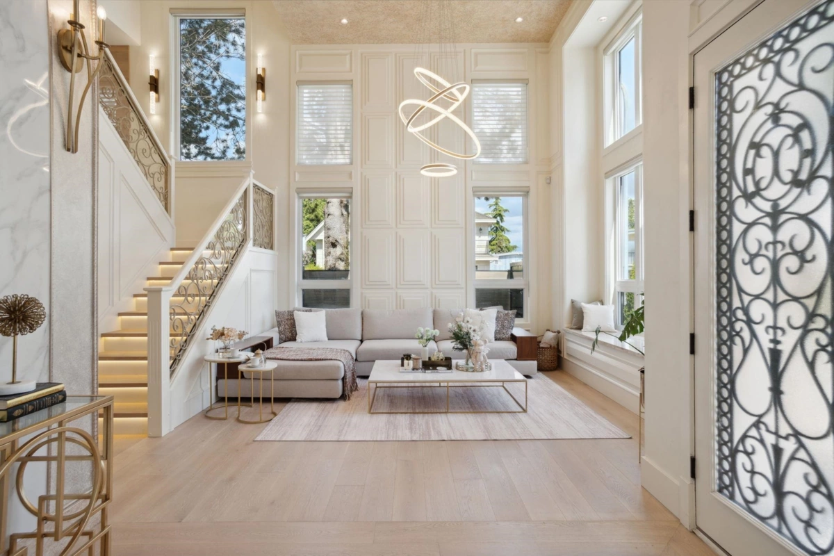 A signature residence in Richmond’s Riverdale! This 2021 custom-built 3242 sf home sits on a 6600 sf corner lot and showcases premium materials & bespoke craftsmanship throughout. Soaring 16’ ceilings, floor-to-ceiling windows, Italian marble-clad fireplace & sculptural staircase create striking impact. Chef’s kitchen w/ integrated high-end appliances/wine fridge & marble counters opens to folding doors and a covered patio with BBQ/sink & putting green. A magazine-worthy wok kitchen adds beauty + function. Upstairs: 4 ensuited bedrooms (2 masters), skylights, 10’ ceilings & a spa-style primary w/ steam/rain shower & sundeck. BONUS-luxe media room+beautifully finished 1-bed legal suite.3-car garage w/EV-plug. Walk to top schools/shopping & scenic parks-This is boutique living at its finest!