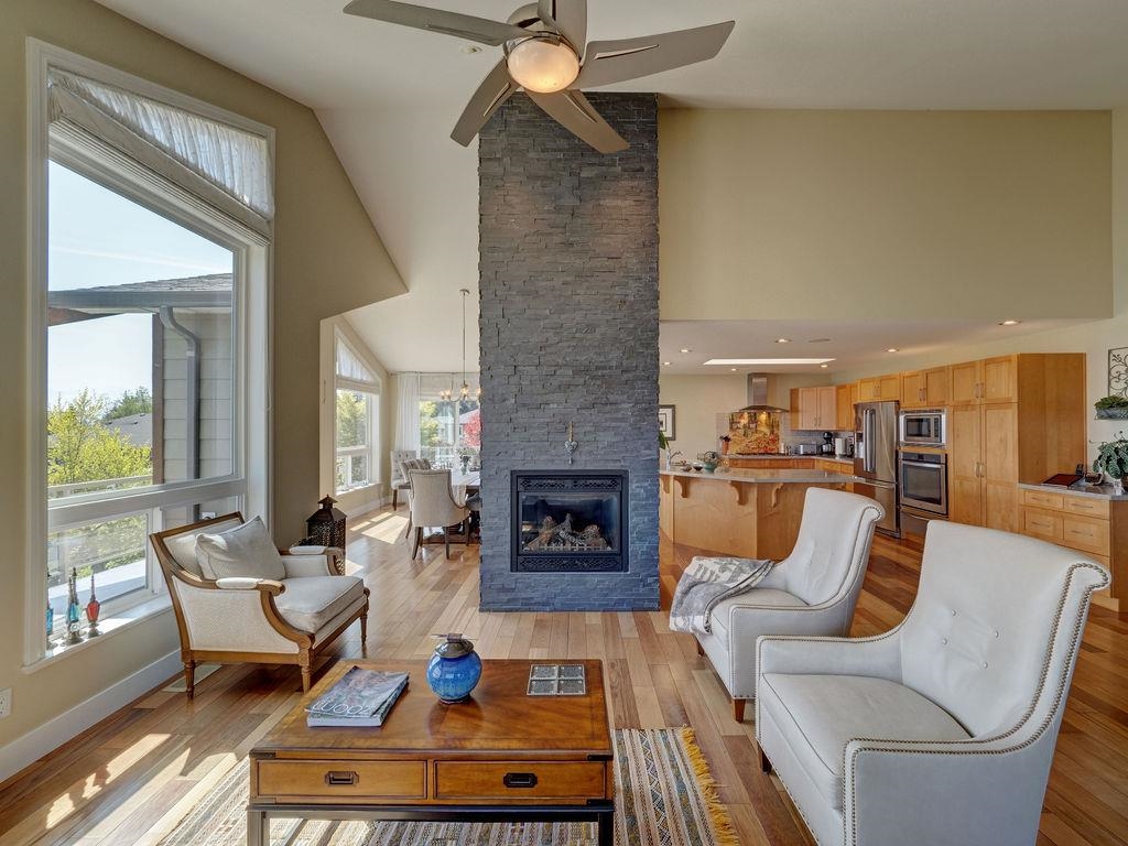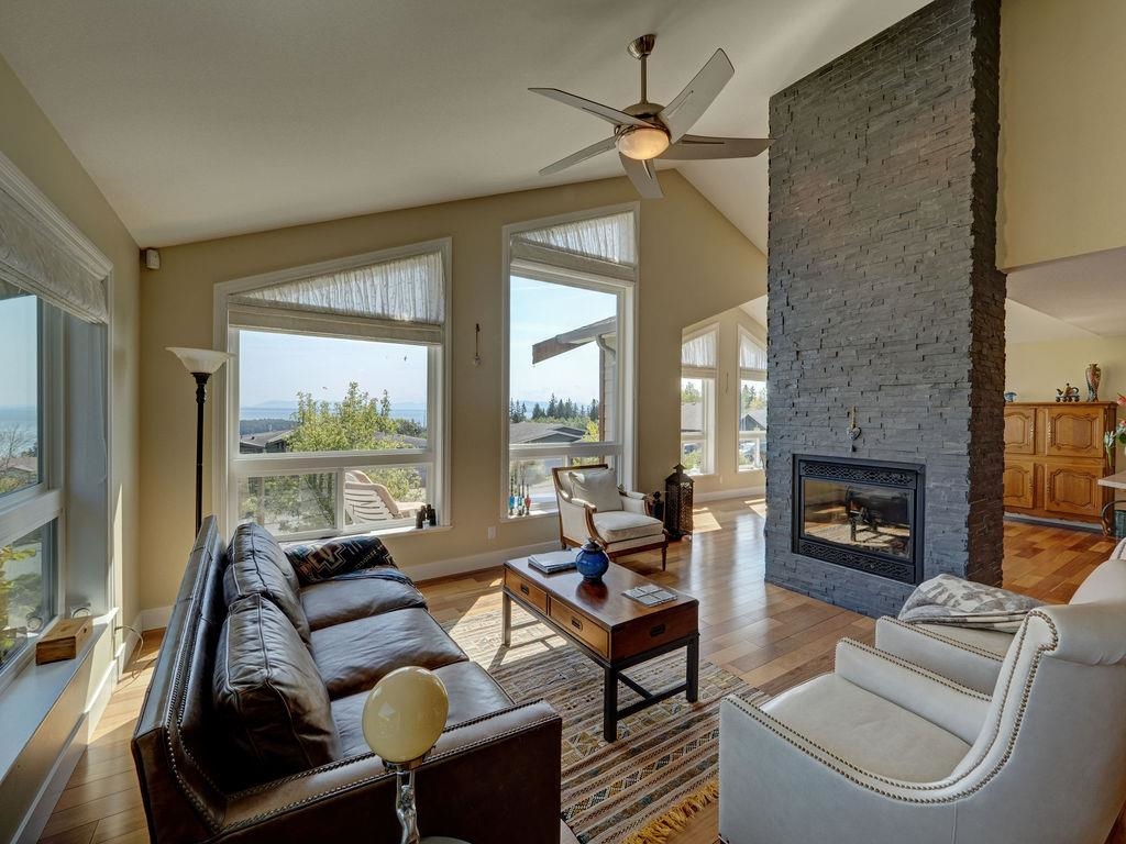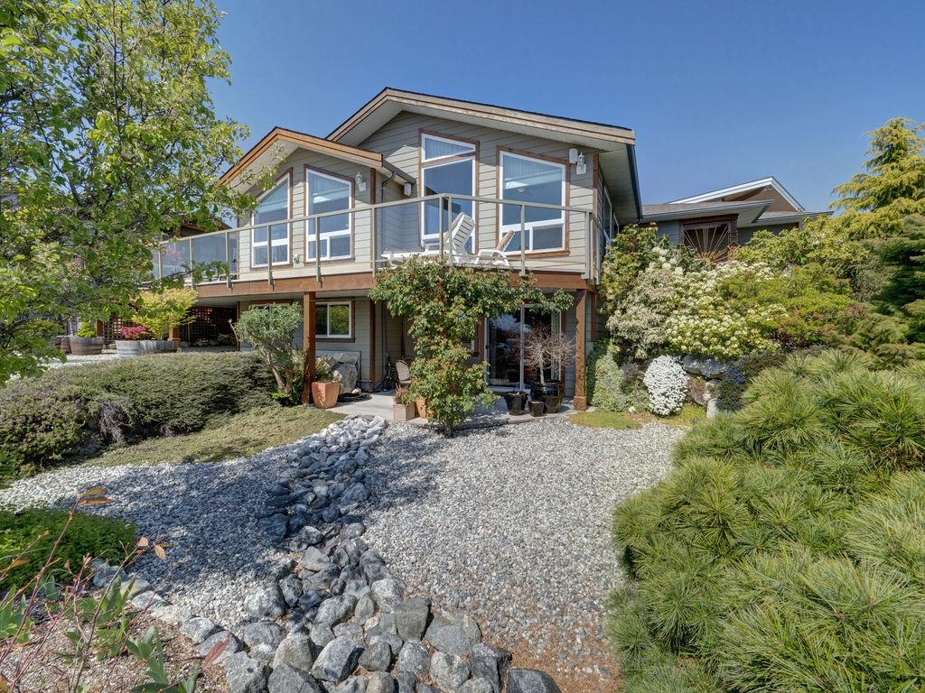 Enjoy spectacular VIEWS over the Georgia Strait and to Vancouver Island from this bright executive main floor entry home. Featuring vaulted ceilings that canopy the open floor plan. Cozy up to the impressive floor to ceiling slate lined gas fireplace in the living room. Custom kitchen is sure to impress with skylights, large island, gas stove, wall oven and pantry pull outs. Dining area leads to a sunny southwest facing sun deck overlooking established perennial and rock garden beds. Generous walk out basement is completely finished a large recreation room, which also leads onto a private patio and into the gardens. Very popular location for all age demographics close to neighbourhood store, West Sechelt elementary & high school. 5 zone sprinkler & drip watering system.