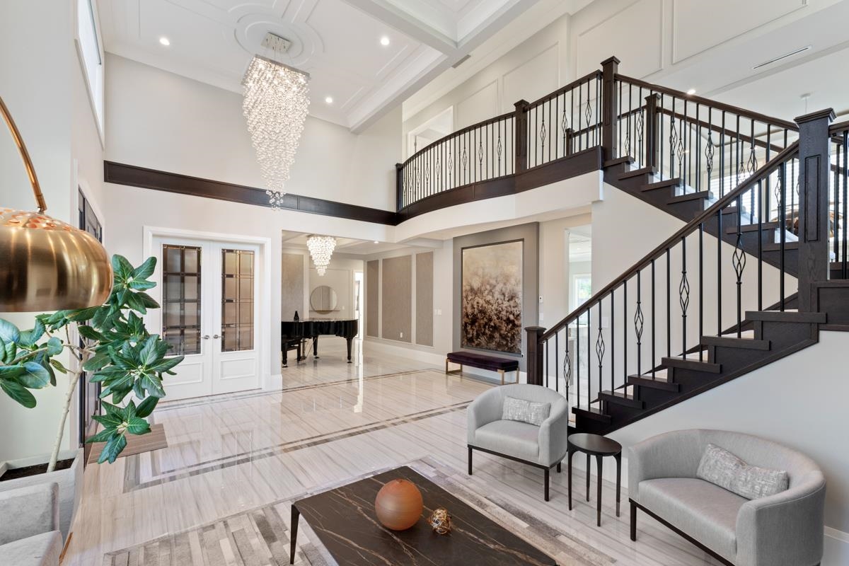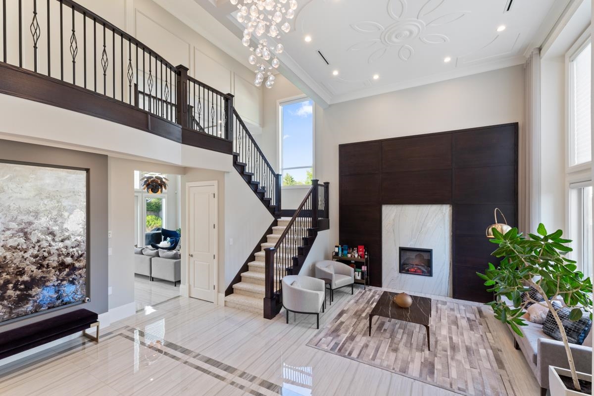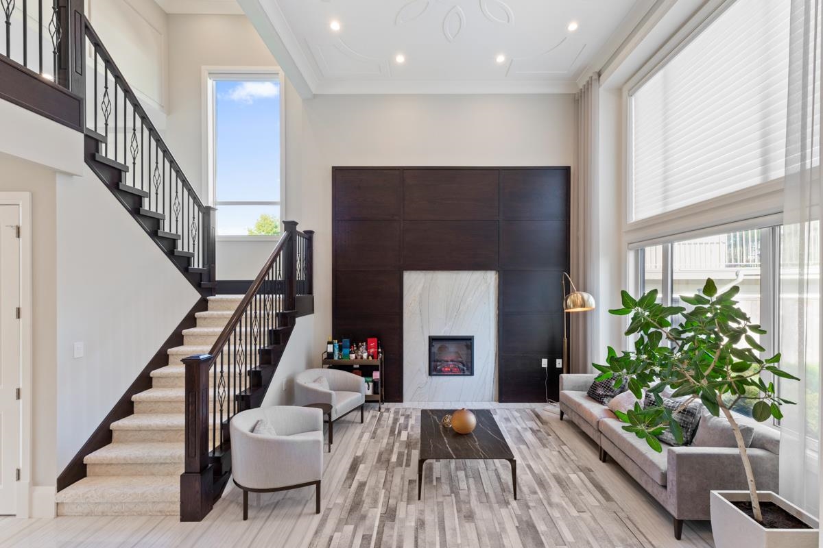 Modern French-inspired home in Richmond's prestigious Riverdale. Offers 5 beds & 6 baths, all bedrooms with ensuites, including one on the main level for added flexibility. Features a grand double-height family room, dedicated media room perfect for movie nights or karaoke, a spacious entertaining kitchen with premium built-in appliances, plus a separate wok kitchen for the culinary enthusiast. The luxurious primary suite includes a spa-like French-inspired bathroom, huge walk-in closet & private balcony. Efficient upper-level layout ensures comfort for the whole family. Well-maintained, sunny backyard ideal for kids & pets. Enjoy a private yet convenient lifestyle near Richmond Centre, top schools, parks, shops & restaurants—perfect for growing families or multi-generational living.