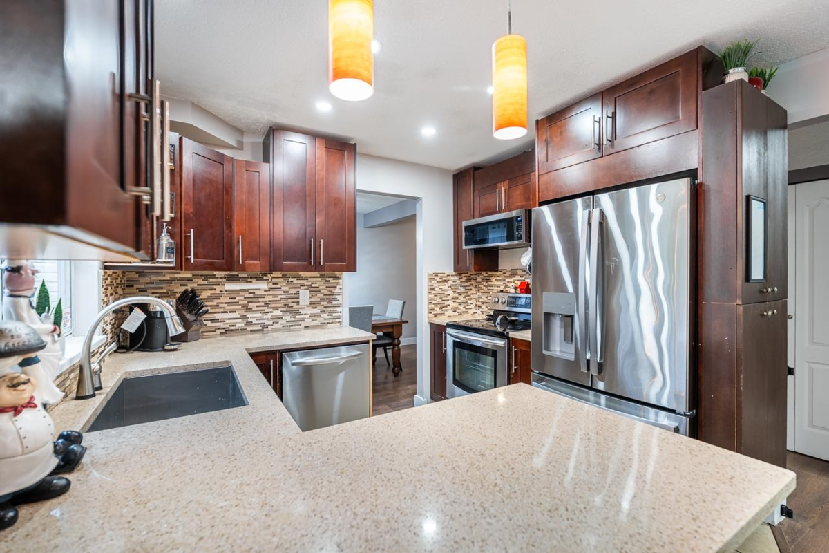 Welcome to this exceptional family home featuring a large single-car garage, ample driveway parking and convenient lane access—perfect for RVs, boats or a trailer. The open-concept living/dining rm flows seamlessly into the updated kitchen, which overlooks the back patio and boasts newer S/S appliances. A spacious bonus family rm with sliders opens to the patio and yard, creating the ideal indoor-outdoor connection. The main lvl includes a 2pc bath, laundry and a bonus crawl space for added storage. Upstairs offers 4 well-sized bdrms and 2 full baths, including a bright primary suite w/ WIC and a 3pc ensuite. New furnace and AC installed this year. A wonderful, well-kept home close to Glades Woodland Garden, Coverdale Athletic Park, great schools + tons of shopping.