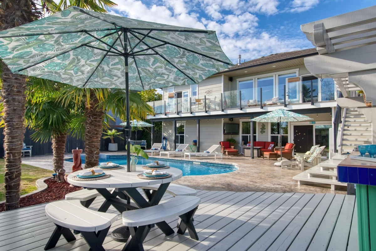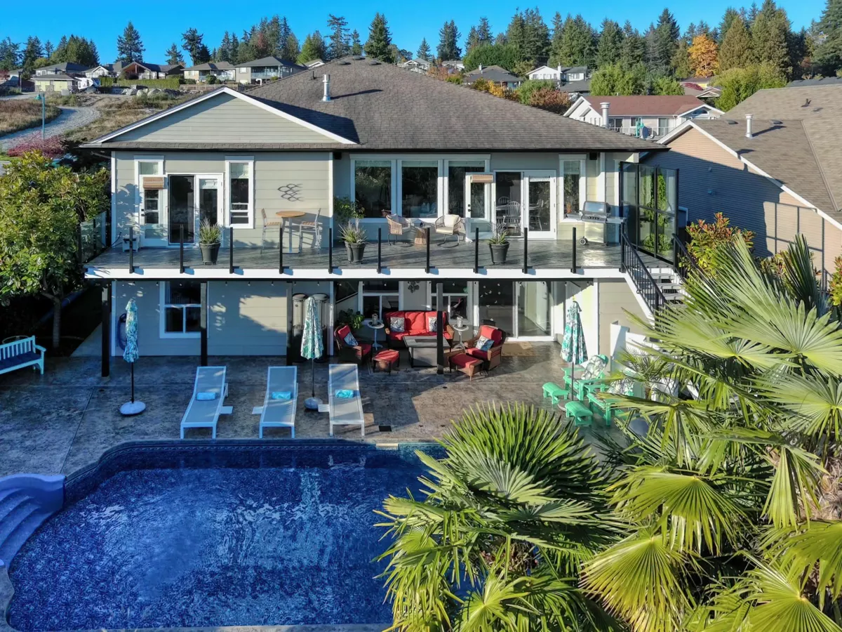 This home offers it all—an entertainer’s dream or resort-style living! The attention to detail is evident throughout this impeccably kept ICF-built executive home. The open layout flows seamlessly to the spacious stamped concrete patio, perfect for gatherings, and overlooks the heated pool and lush gardens. An Onkyo multi-zone surround system throughout the home & exterior creates the perfect ambiance. The main level features a luxurious primary bedroom with a spa-inspired ensuite, including a deep soaker tub and custom shower. Elegant bamboo flooring throughout the living area & slate tile in the kitchen and foyer provide easy maintenance. Downstairs, enjoy a custom bar, recreation area with a pool table, media room/gym, and two large bedrooms. The perfect package! Foreign buyers welcome.