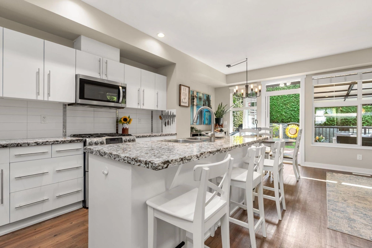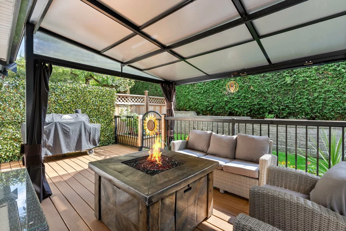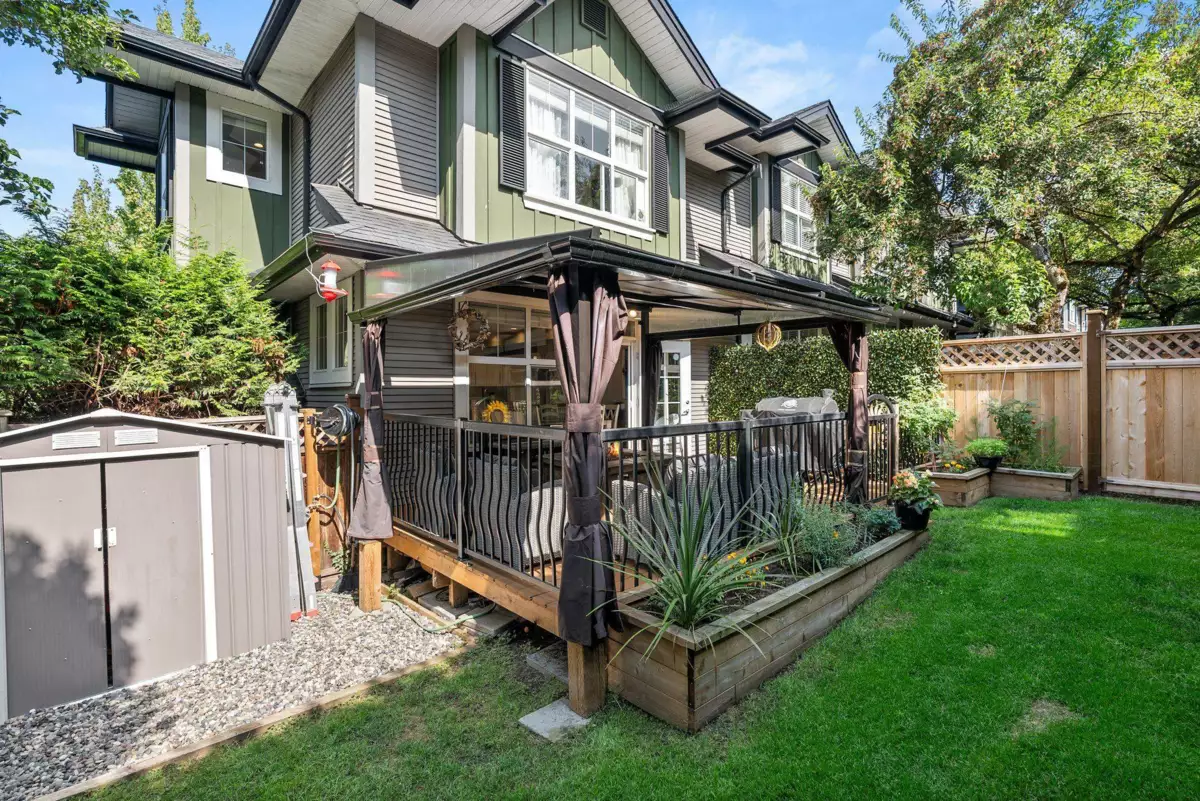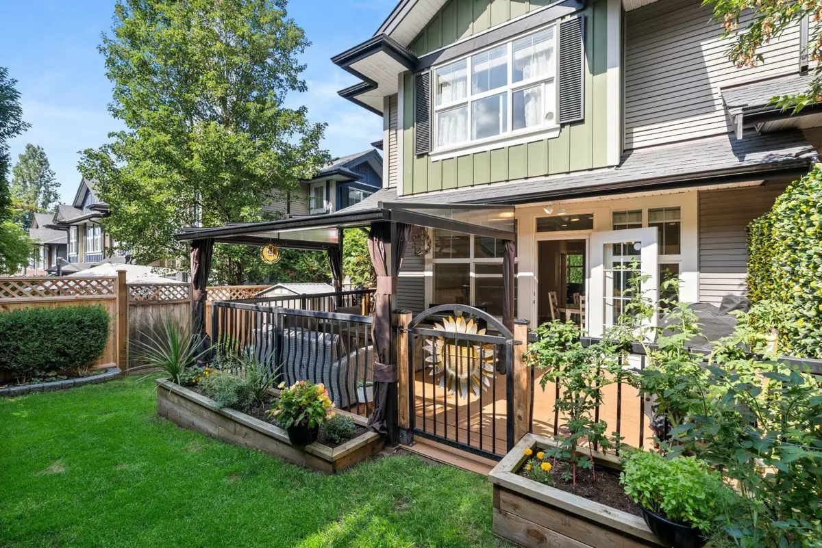 End-unit with double garage + full driveway = 4 parking! Walk out from the main floor and enjoy a private, hedged and sun-soaked south exposed backyard. A large covered Trex deck with retractable cover is ideal for relaxing or entertaining around the fire pit. Large kitchen, gas stove, eating area, and family room, plus a separate living/dining space and renovated powder room with updated flooring. Upstairs has 3 bedrooms, including a generous sized primary with walk in closet and ensuite with two sinks and a tub. The basement offers a rec room or 4th bedroom with a full bath. Forced air natural gas heating. Visitor parking stall right beside the unit. Short walk to Adam’s Road Elementary and Salish Secondary. This one checks all the boxes and is perfect for families.