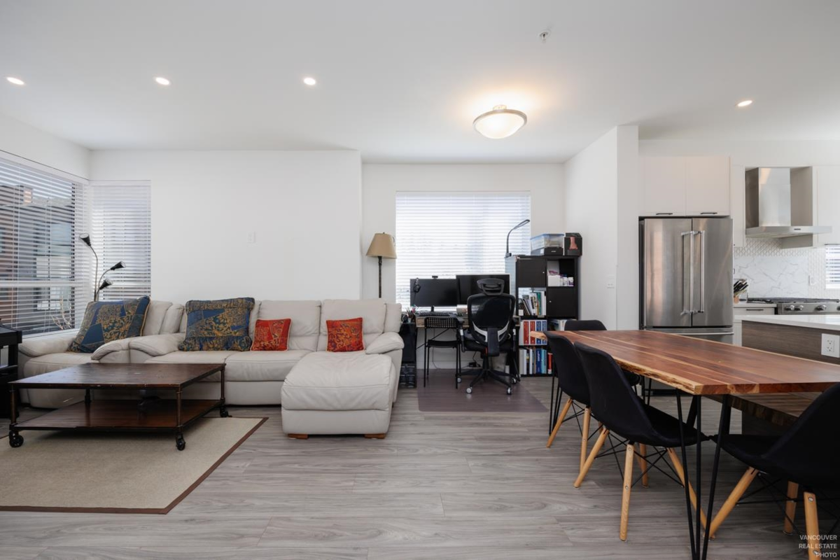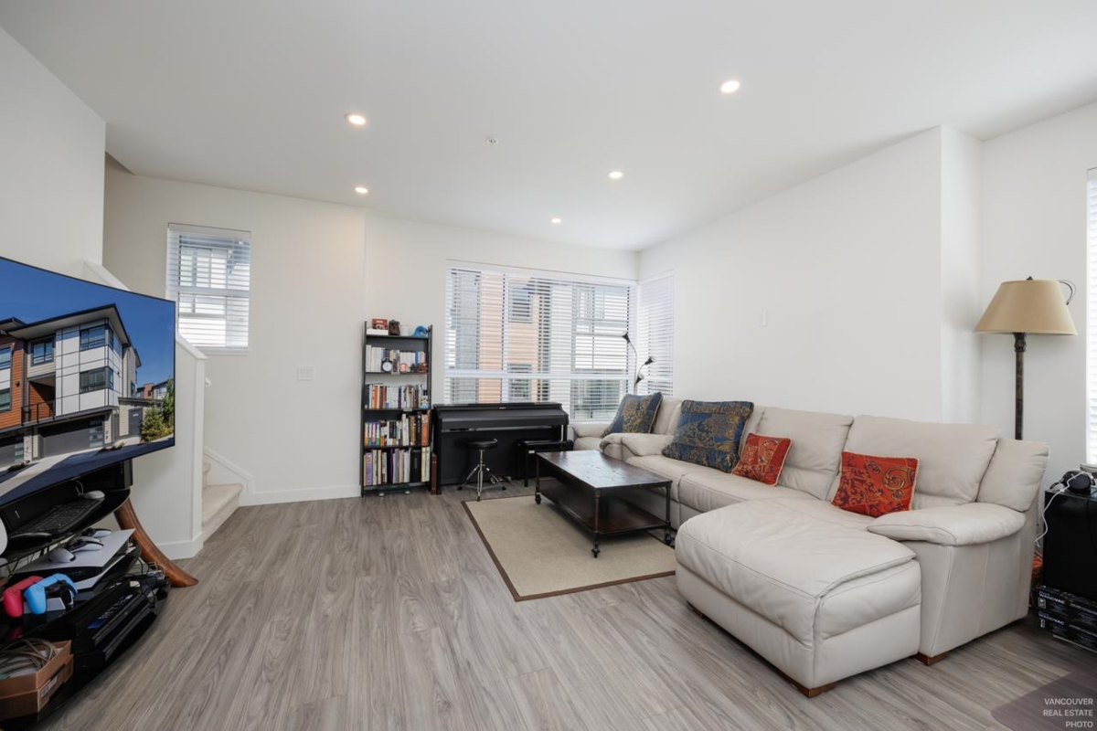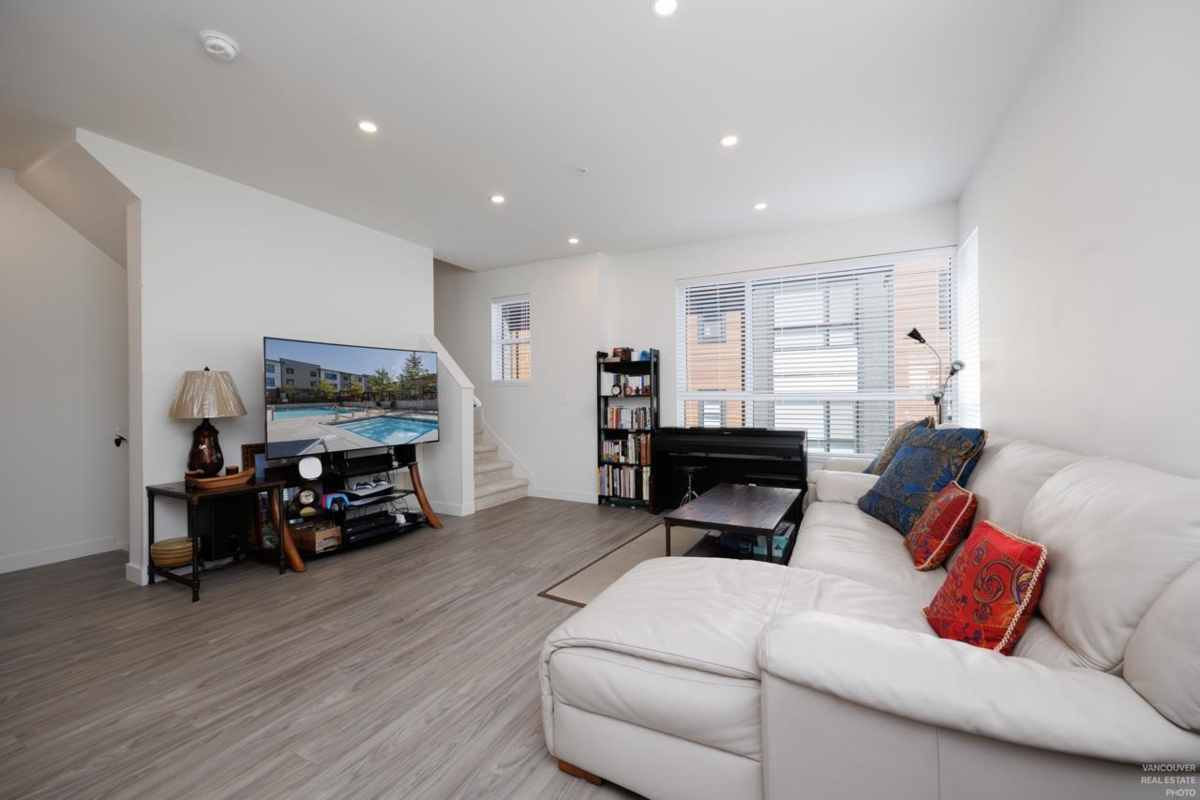 Welcome to "VERGE" by Essence Properties! This is 3 Bed + 3 Bath + 1 Den, corner unit with several upgrades including Air Conditioning, Laminate Floor throughout the unit and heated floor in Ensuite Bathroom. Being a corner unit, windows on the side allows extra brightness to the living and dining area. Side by side, double garage also allows wide living space on main level, unlike typical narrow and long townhome with double tandem garage! Kitchen features professional grade KitchenAir gas stove, double door fridge, quartz countertop. Amenities include club house with outdoor pool & hot tub, indoor & outdoor lounges. Steps way from Langley Event Centre. Easy access to 200 street and Trans Canada Hwy. Excellent home for a family.