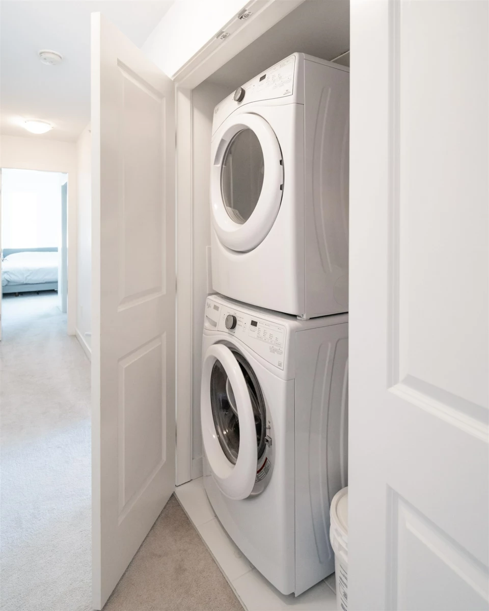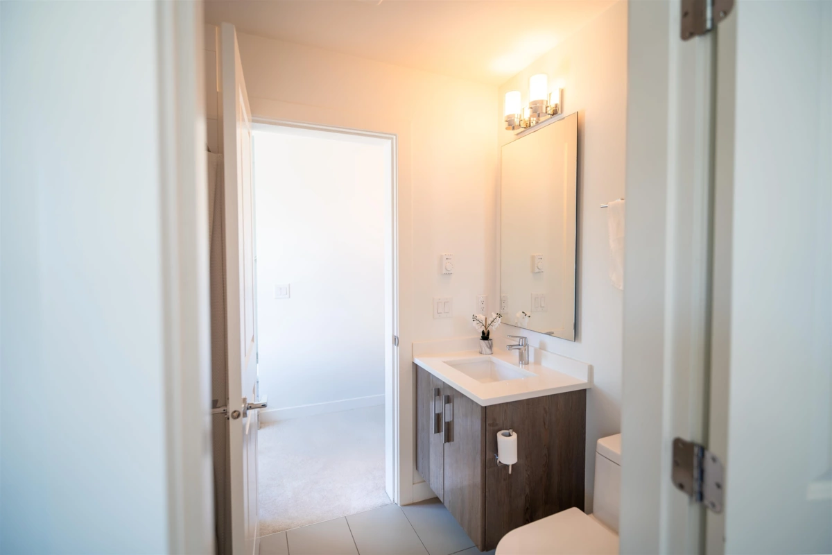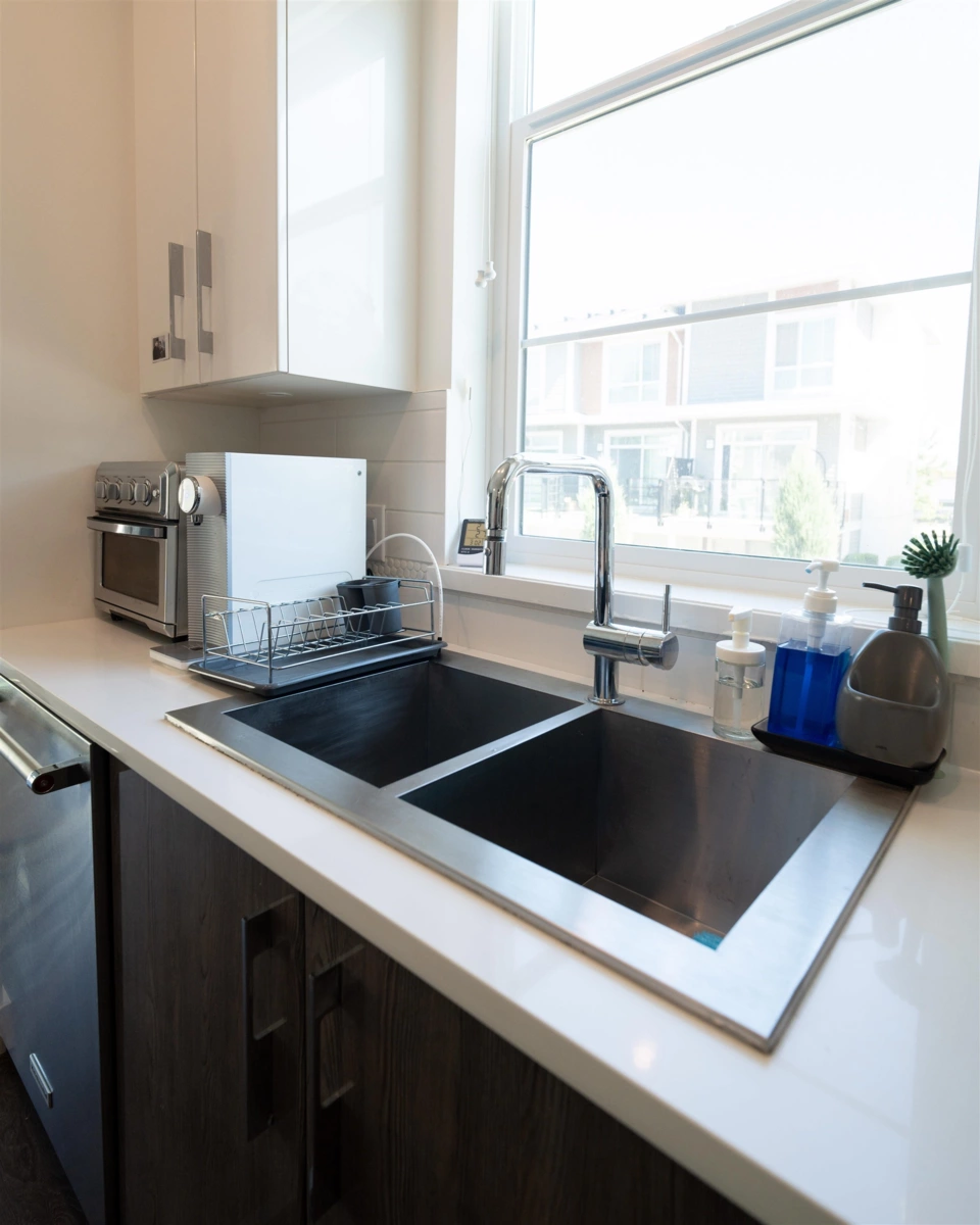 Stunning 1574 sq ft Townhome in Wexley! This generously sized 2 bed, 3 bath corner unit offers panoramic mountain views from a 400 sq ft rooftop deck. The main floor features a gourmet kitchen with quartz island and high-end KitchenAid appliances, opening to a bright living area with deck access for BBQs. 9-ft ceilings and oversized windows on the main and 3rd floors fill the home with natural light. The elegant primary bedroom boasts a walk-in closet and large ensuite. Upstairs includes an upgraded Whirlpool washer/dryer. Quality finishes and a thoughtful layout make this home spacious, bright, and luxurious.