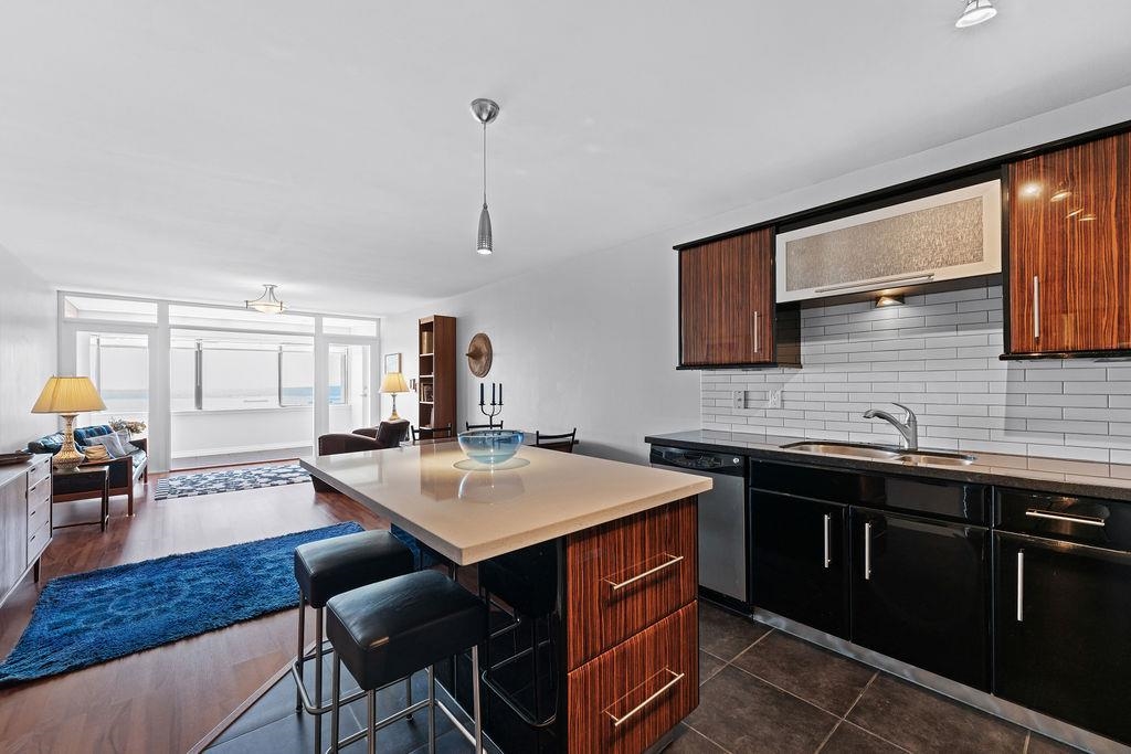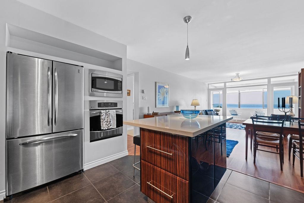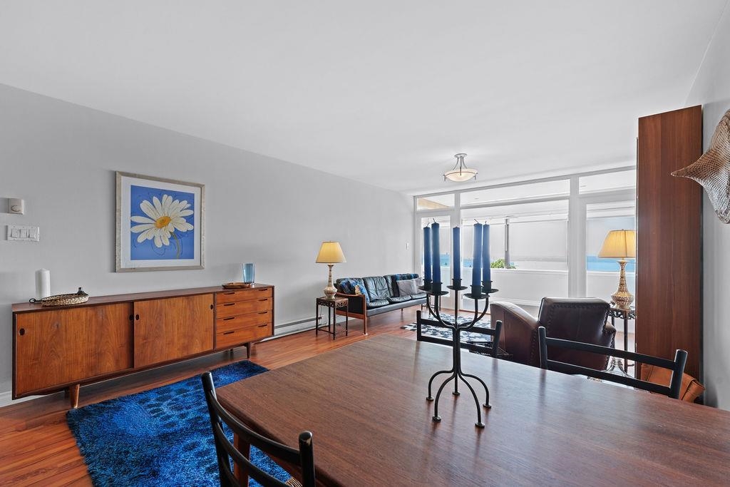 Welcome Home! Enjoy 180 degree south views from this open and spacious 1 bedroom + solarium home. The house sized kitchen has been updated with a large island that is open to the dining and living rooms, great for entertaining. The solarium runs the width of the suite and allows for sheltered outdoor space and can accommodate an office too. The primary bedroom is large enough for a king bed and offers ample space for dressers/armoires too. The bath has been updated as well! Parking is on the same level and just steps to the front door. There is an oversized locker as well for ample storage. All this and just minutes to the iconic Lions Gate Bridge and downtown!