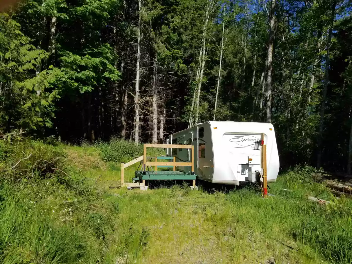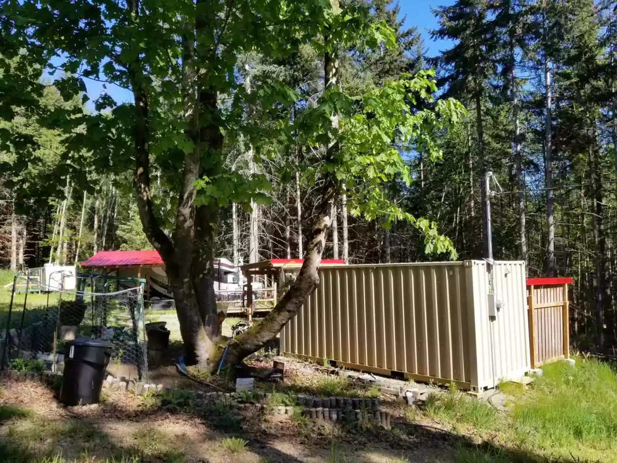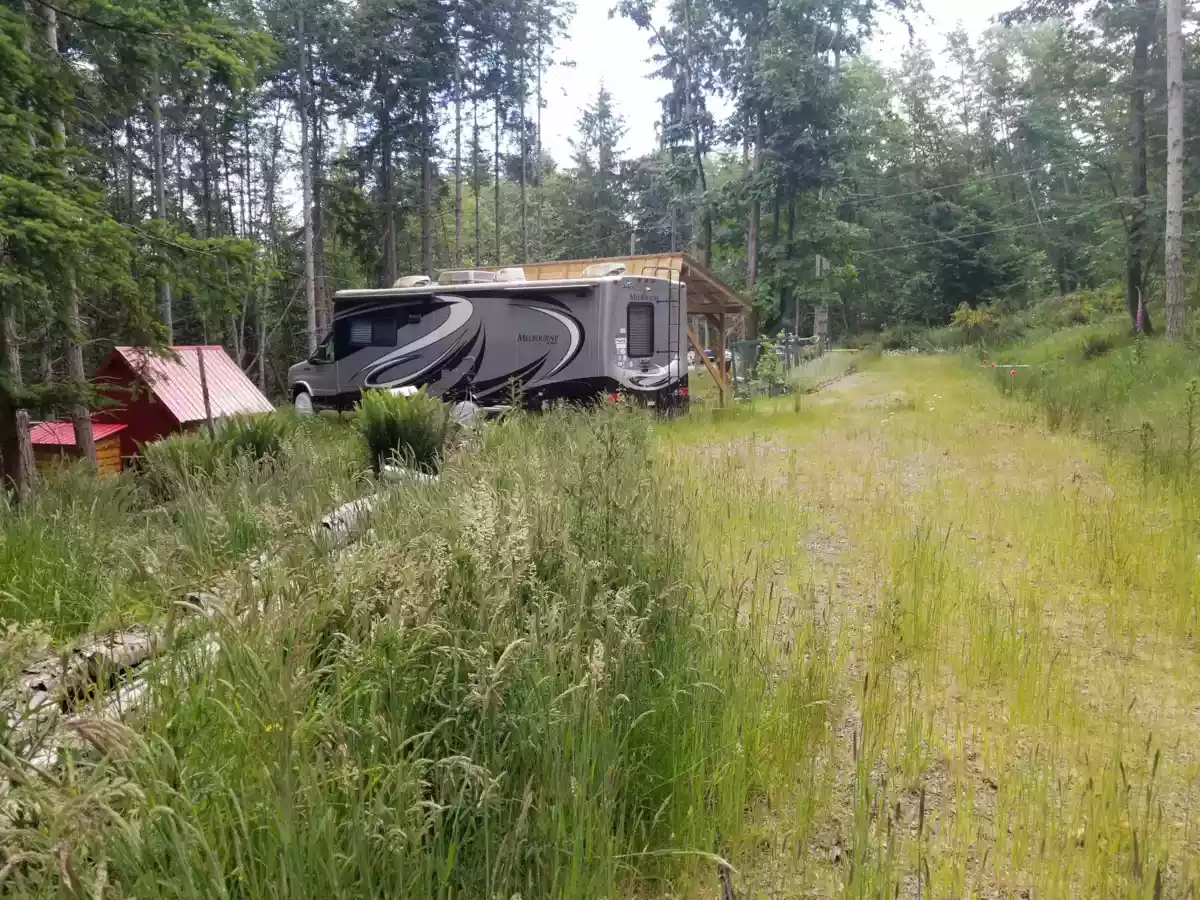 Backing into 980 acre Bodega Ridge Park! If you look for a building site in a rural, secluded area, this 4.72 acre property will tick many boxes. It comes with a driveway, cleared building site, a 200 amp electrical service hooked up to a sea can and of the most productive wells on the island (100 gpm, when drilled) . Stay in the comfortable motorhome to get a feel for your getaway! And your guests can stay in the serviced trailer nearby. An irrigation system is set up to water the fruit trees & berry bushes. Property comes with a 100 sqft cabin & an enclosed shower stall. The clean sea can functions as a hub for the water system, the electrica1 panel & storage for your tools. Beau Vista Lane is a private access road for 6 lot owners in this subdivision. Salish Sea beach accesses nearby!