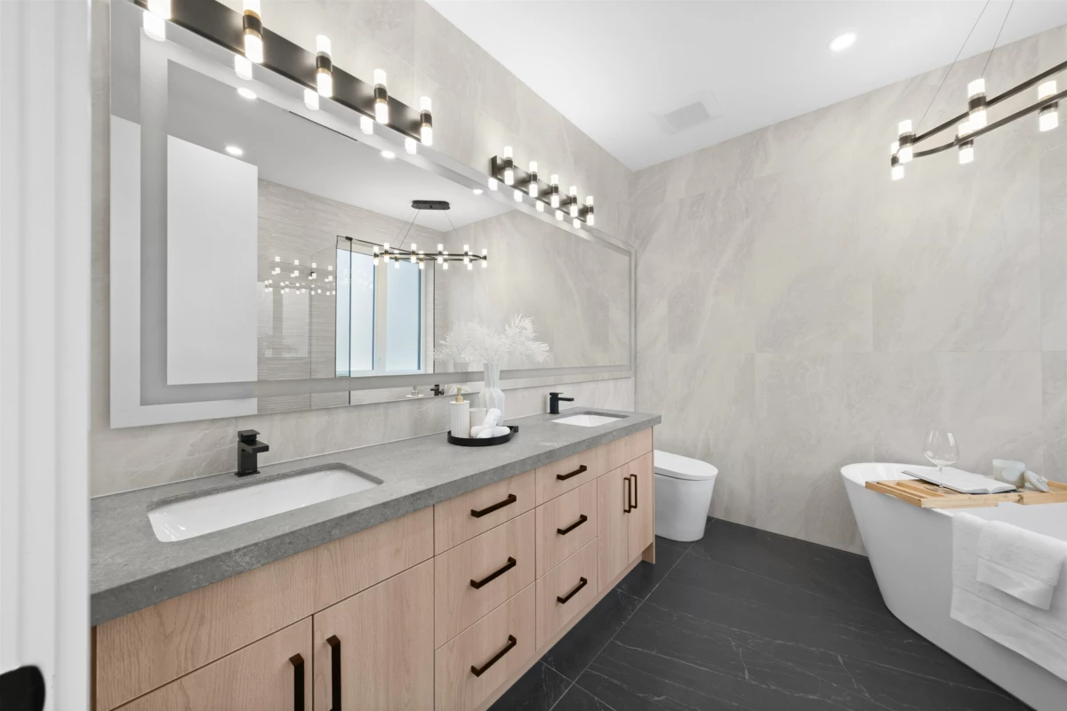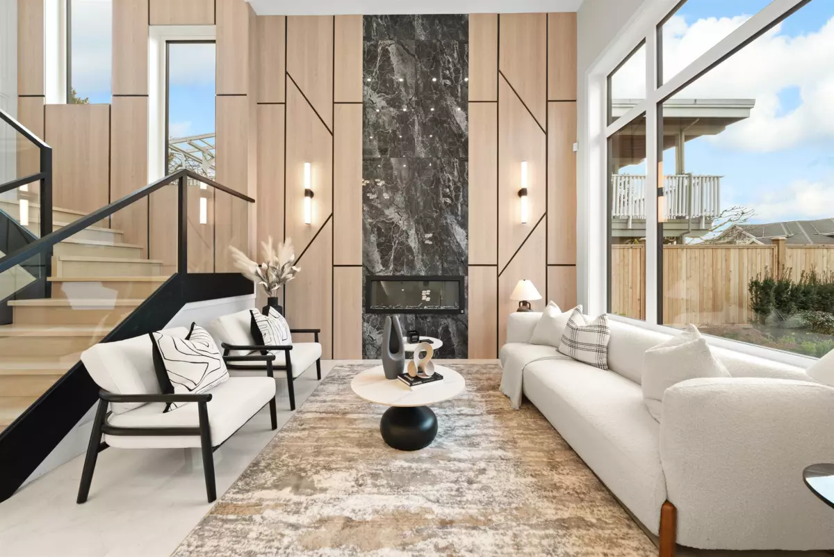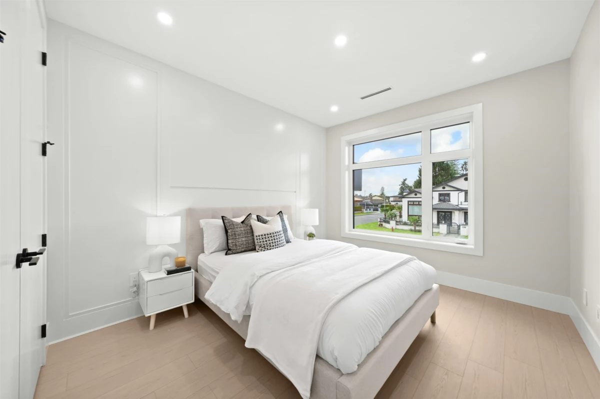 Built by Leisure Homes, this luxury brand new custom residence is centrally located in the heart of Riverdale, Richmond's most prestigious neighbourhoods. Defined by wide roads, no overhead power lines, an elegant well planned streetscape without any gutters. Residence showcases refined modern living with a grand open concept layout, soaring 16'4ft ceilings, Miele appliances, large spice kitchen, and tile throughout main. A heat pump system delivers seamless year round comfort, air conditioning and radiant in floor heating. Main level offers a discreet mortgage helper/in-law suite, upper floor features four private bedroom ensuites, highlighted by a lavish primary bedroom with a 12ft ceiling. Minutes to Terra Nova Village, Richmond Centre, and located within Burnett Secondary.