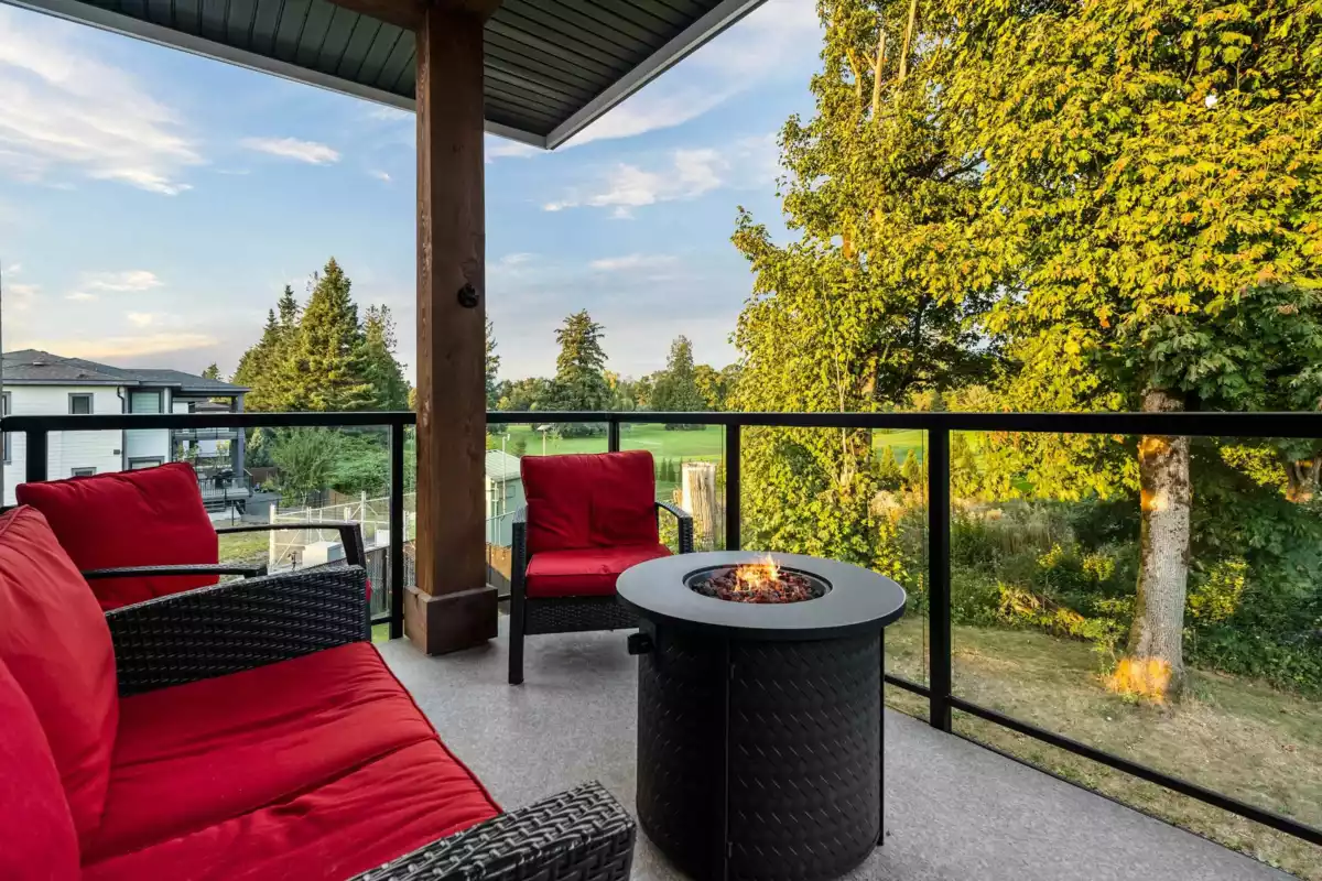 Executive custom home backing onto Kinkora Golf Course featuring a chef’s kitchen w/ high-end appliances, oversized island & a great room w/ floor-to-ceiling windows that fill the space w/ natural light. Off the kitchen, enjoy a private enclosed patio w/ fireplace & hot tub for year-round entertaining. Upstairs offers 4 spacious bedrooms, including a luxurious primary suite w/ spa-inspired ensuite, steam shower & soaker tub. Lower level includes a bright 2-bed suite ideal for in-laws or rental. Additional highlights: detached 1-bed coach house, double-wide lot & car enthusiast’s dream garage. Unobstructed golf course views w/ no rear neighbours—an estate-style property in one of Chilliwack’s most sought-after locations.