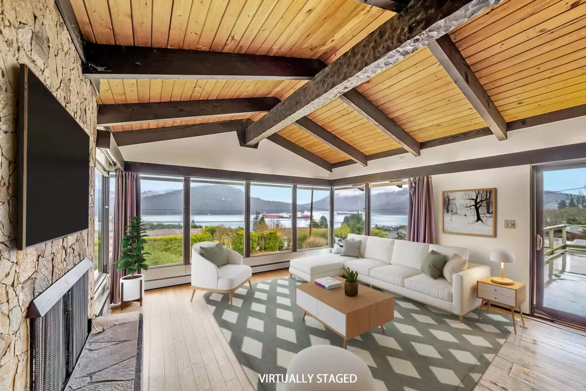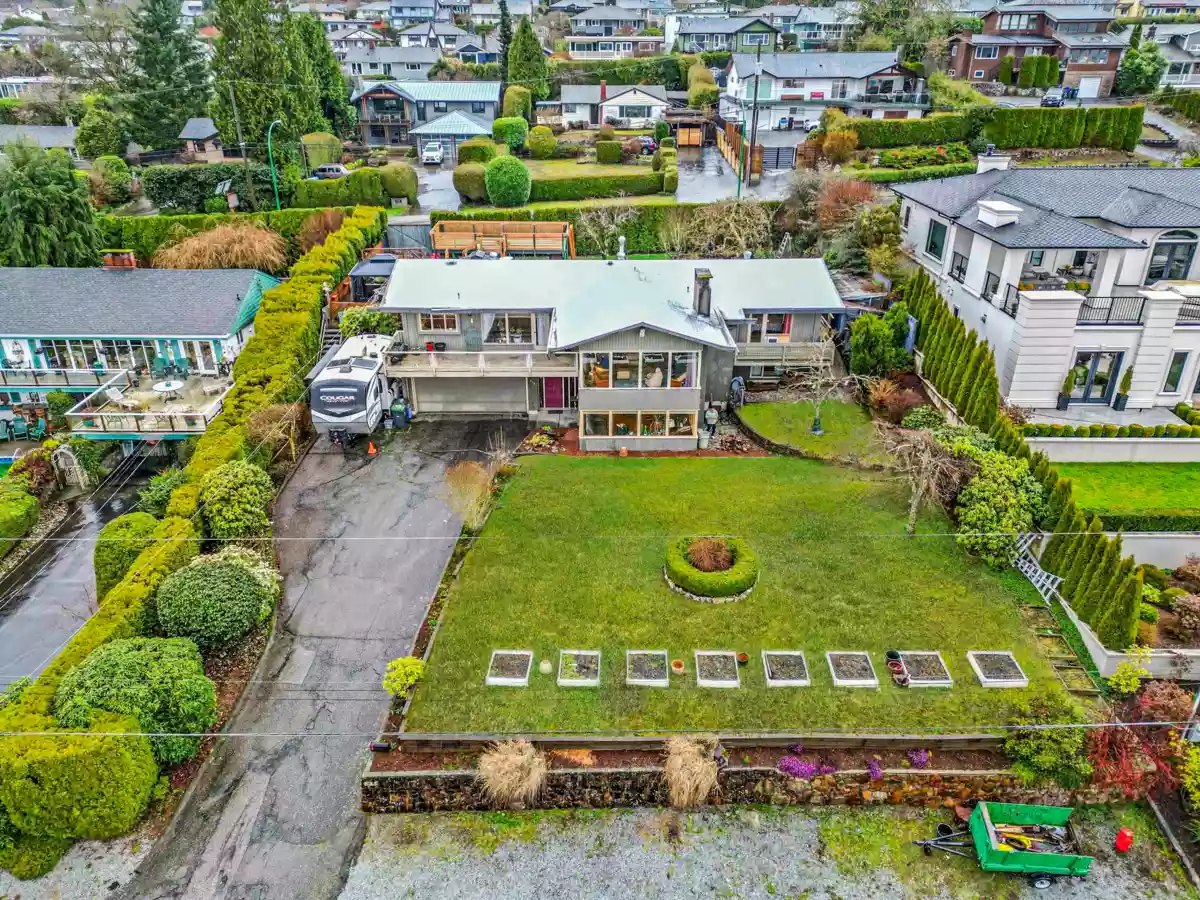 Great ocean views from both floors of this home set on a beautiful 15,000 sq ft lot. If you've dreamt of a home with an amazing ocean view, then welcome to 645 Baycrest Dr, North Vancouver. With 6 bedrooms, 3 bathrooms, 2 kitchens large 2 car garage and 3,600 sq ft of living space has so much potential. Bring your renovation ideas and imagine the rewards of having a view home so close to parks, recreation, transit, the ocean and shopping choices. All photos of home have been virtually emptied or staged. Call your agent for a private showing