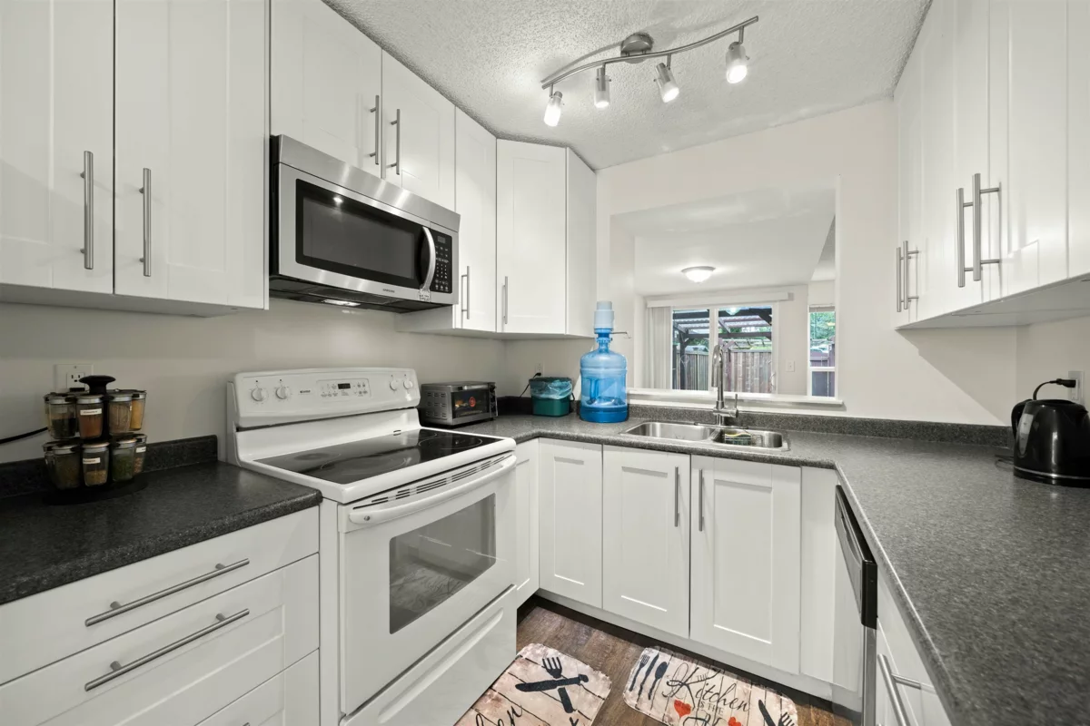 Welcome to Surrey Meadows! This spacious townhome features 4 bedrooms with a fully finished basement perfect for guests, in-laws, or extra living space. Enjoy year-round BBQs on your covered deck and a fully fenced backyard for added privacy. Located in a quiet part of the complex, this well-kept home offers a great layout for families. New roof completed in 2025. The complex also features a professionally maintained outdoor pool for summer fun! Close to parks, schools, shopping, and transit. Book your appointment and view! Open House Saturday September 27th 2PM to 4PM.