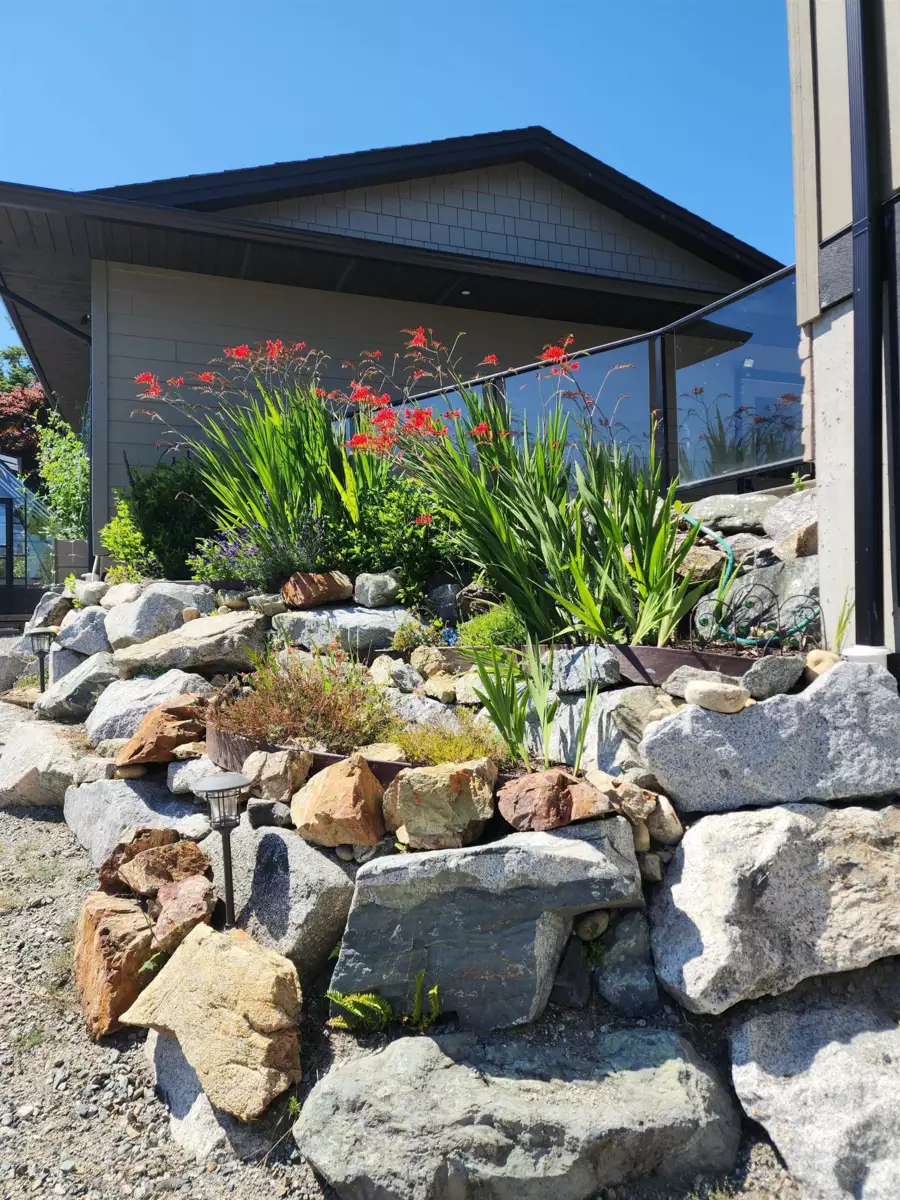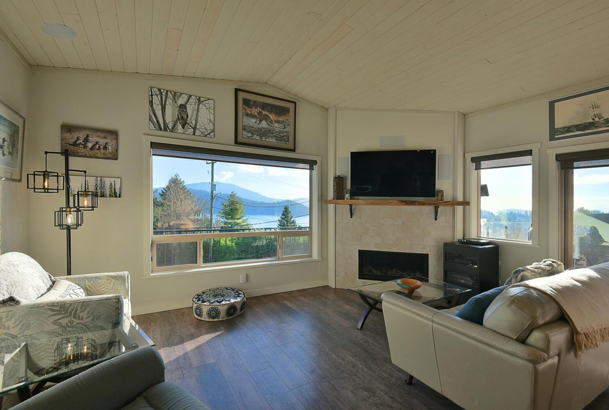 This stunning Gibsons view home offers one-level living on the main floor, designed to capture the scenery through large windows and a generous, sun-soaked deck—perfect for relaxing or entertaining. Features include a spacious primary suite, den with Murphy bed, vaulted ceilings, a custom high-end kitchen with gas range, built-in coffee system, wine fridge, plus a lower XL bonus room. Extensive upgrades ensure long-term value and low maintenance. Need a mortgage helper? Below are two income suites: a 1-bed legal suite and a licensed Airbnb. Enjoy the outdoor oasis with BBQ, hot tub, and breathtaking views. Double garage with ½ bath, garden shed, and greenhouse. Walk to Molly’s Reach, trails, and shops. A rare blend of views, versatility, and comfortable living in one exceptional property.