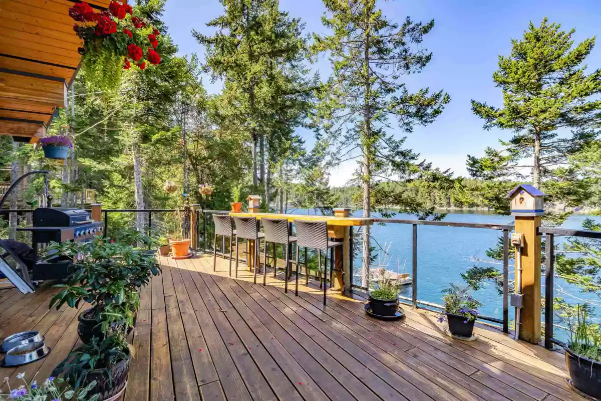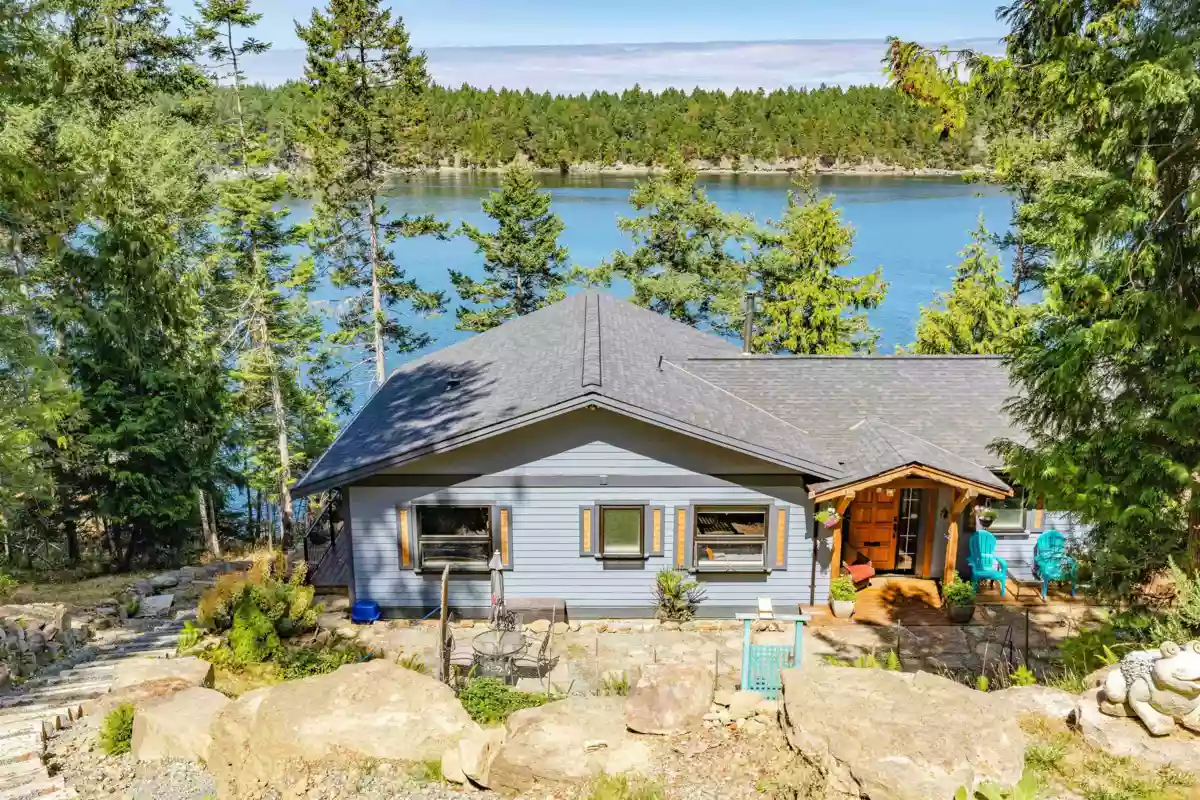 Tucked away at the end of a private no thru road is your Mayne Island waterfront dream come true! Easy stone steps lead you down to a 2 storey, 4 bed, 3 bath, 2440 sq ft home built in 2018, perched on the edge of serene Campbell Bay. Featuring a Legal Dock, self-contained suite with separate entry on the ground level, open plan living spaces, large decks to take in the stunning views of the Bay, Mount Baker and beyond, with a beautifully landscaped yard throughout the 0.35 acre property, there isn't much else you could ask for. Whether you're looking for a vacation spot or a new place to call home, this spacious west coast style house checks off all the boxes. Come Feel the Magic!