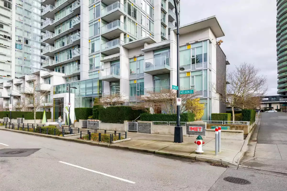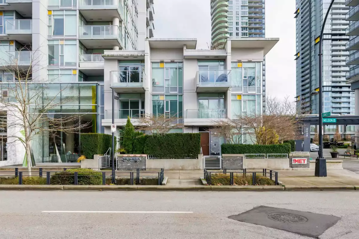 Luxury two-level concrete townhouse at The Met by Concord Pacific, located in the heart of Metrotown, one of Burnaby’s most vibrant urban centres. This well-designed home offers 3 bedrooms, 3 bathrooms plus a den. The main level features an open-concept kitchen, dining and living area, ideal for modern living and entertaining, with access to a private patio offering excellent privacy. The upper level includes three bedrooms and two full bathrooms. Exceptionally convenient location with Bonsor Recreation Complex, 55+ Centre, Metrotown Shopping Centre, medical clinics, banks, restaurants, SkyTrain and public transit just steps away. Includes two parking stalls and one storage locker. A rare opportunity to own a high-end concrete townhouse in the core of Metrotown.