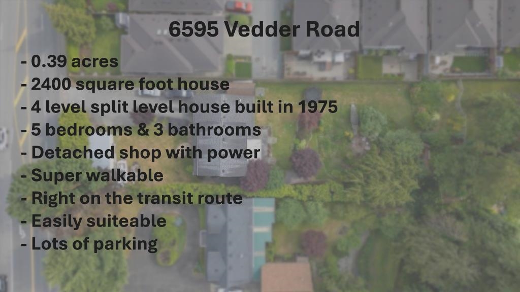 Opportunity Knocks in One of Chilliwack's Fastest-Growing Corridors! This well-maintained split-level home sits on a spacious lot with endless potential. Featuring 4 bedrooms, 2 bathrooms, and multiple living areas, there's plenty of room for family life or rental income. The home is solid and functional, with tons of potential to personalize or hold while values rise. The property is designated Medium Density in the OCP, making it a prime candidate for future townhouse or apartment development. Located just steps from schools, shopping, transit, and the Vedder River trail, and neighboring a 41-unit strata, this is both a smart home purchase and a strategic land play. Live in it, rent it, or plan for what's next - this is an opportunity you don't want to miss.