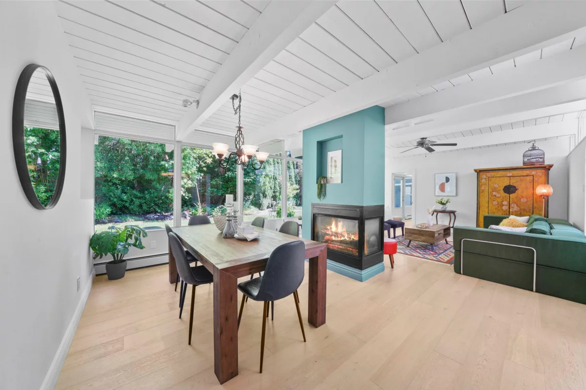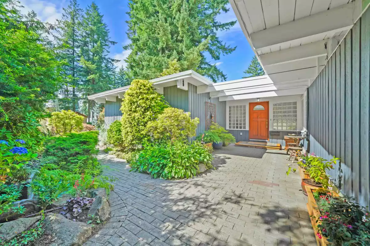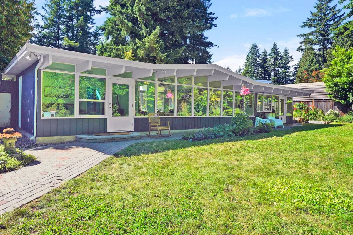 Renowned designer and builder Bob Lewis created this quintessential West Coast Modern post-and-beam rancher for Dr. D. Gibson with a family of 10. Hidden among the lush private gardens and lawns of an 11,500 sf lot in Sunshine Hills, light pours through 20 large windows. The home has been thoughtfully renovated over time, most recently in 2020 with a kitchen both stylish and functional, Duro-Tuff membrane cool roof, and wide-plank flooring. Features also include a Miele combi-steam oven, 200A electrical service, 2-car garage with EV-ready receptacle, large shed, and drip irrigation for convenience. Grow food or flowers in raised beds within the landscape. Walk to Watershed Park. Easy access to Hwy 99/91. Catchment for IB program at Seaquam. Timeless design and modern living. Welcome home.