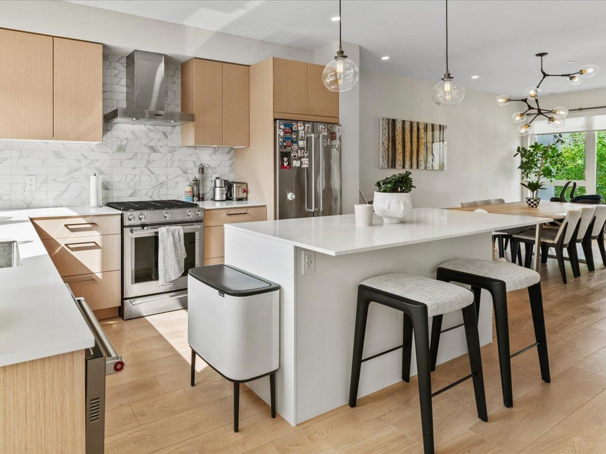 Welcome to Seymour Village, where contemporary design meets West Coast living. This spacious 3-level townhome w/ AC offers over 2,050 sqft w/ 4 beds & 4 baths, perfect for families of all sizes. The open-concept main floor features a gourmet kitchen w/ SS appliances, a generous island, & seamless flow into the dining & living areas—ideal for entertaining. Upstairs, you’ll find 3 bedrooms including a primary suite w/ a spa-inspired ensuite & walk-in closet. A lower-level bedroom w/ its own bathroom provides the perfect guest space, home office, or media room. Enjoy a private outdoor patio & deck, as well as an attached double garage w/ ample storage & EV charging. Offers as they come.