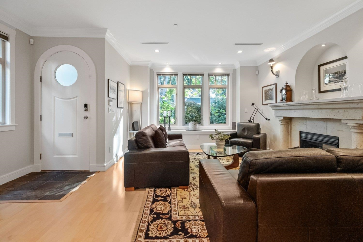Perennial gardens lead to the front entry of this stately 4-bed, 4-bath, 3-storey Kerrisdale home. Open concept main w/ over-height ceilings, maple H/W floors, & architectural details throughout, including crown moulding, recessed bench seating in family rm, windows seat & gas F/P in living rm. Chef's kitchen w/ bespoke cabinets & island, granite counters, gas range, & S/S appliances. French doors lead to patio for seamless in/outdoor living. 2nd floor features: sprawling primary bed w/ ensuite, + 2 additional beds (one w/ vaulted ceiling), bath, & laundry. Potential 2nd primary suite on top floor w/ ensuite, W-I-C, skylight, & W-facing balcony. Serene backyard w/ professional hardscaping & custom pond.