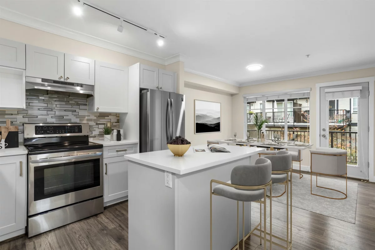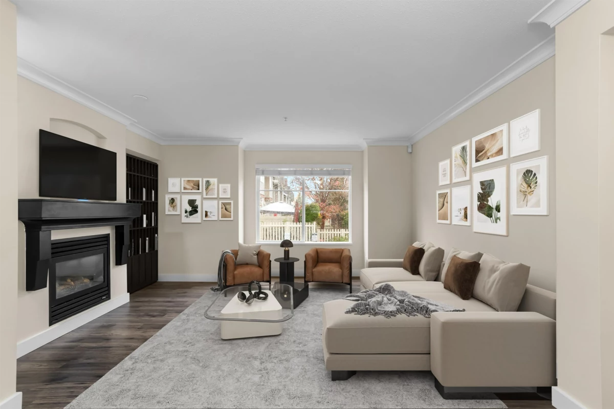 Bright, stylish, fully updated unit in Sunscape! This refreshed townhome features an airy layout, an updated kitchen with Quartz counters, newer stainless steel appliances, a spacious island, and ample storage. Enjoy a cozy gas fireplace and a rare main-floor powder room. Upstairs offers a large primary bedroom with a 4-piece ensuite and double sinks, plus two versatile bedrooms. Fresh paint, newer flooring, carpet, washer/dryer, and a new hot water tank add comfort. The fully fenced yard with covered porch and a deck is perfect for relaxing. With low fees, and a prime location near schools, shopping, and transit, this move-in-ready home checks every box.