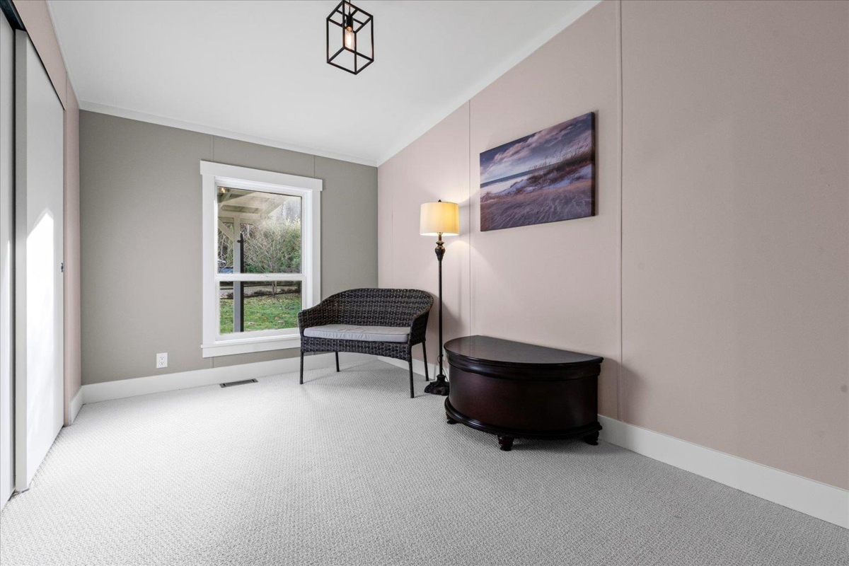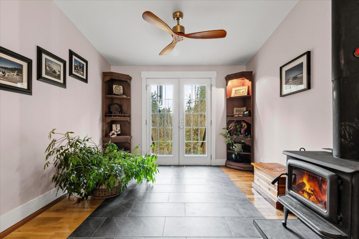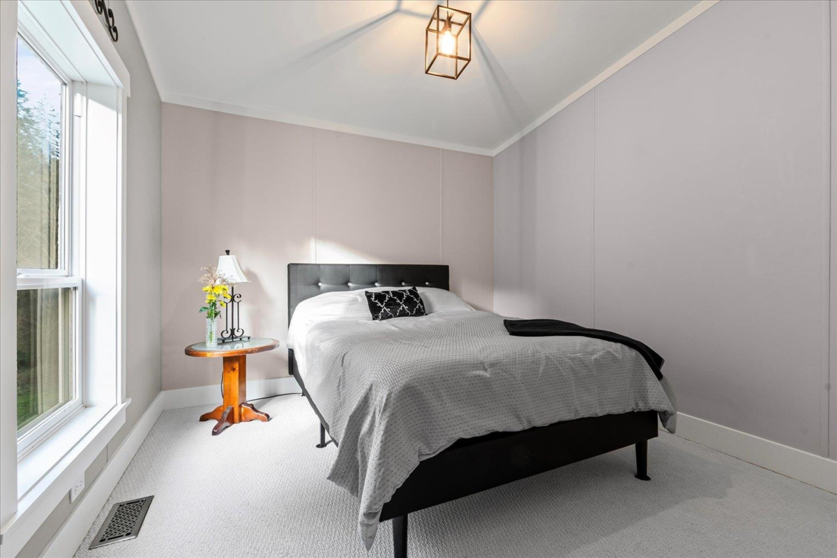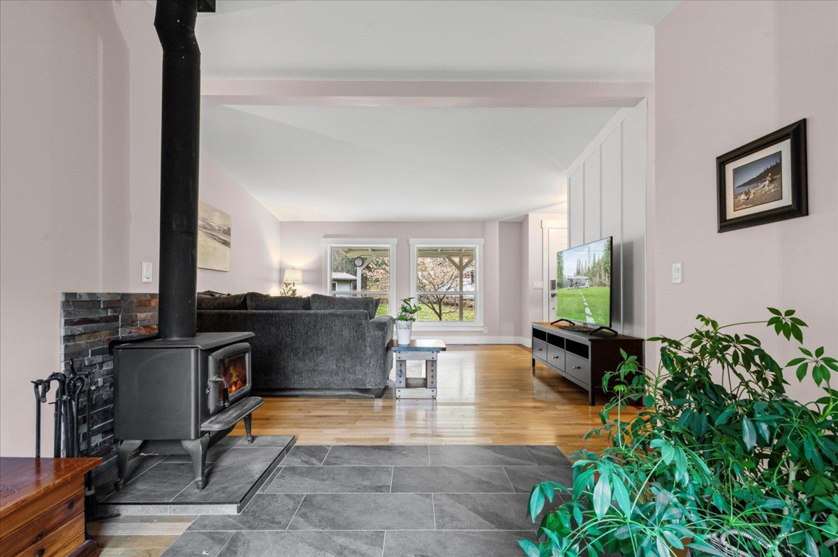 Private rural acreage just 15 minutes from downtown Chilliwack! This beautifully updated property offers a deluxe remodelled manufactured home surrounded by mature landscaping, a pony shed, and a shop—perfect for those seeking peaceful country living with modern comforts. Inside, you’ll find vaulted ceilings, oversized windows, hardwood floors, a wood-burning stove, and French doors leading to a private back deck with hot tub. Major 2023 upgrades include a 100-year metal roof on the home & shed, Hardi-Plank/Nexstone exterior, new gutters with underground drainage, updated ceilings, fresh paint, new flooring, trim, and lighting. Recent improvements include new water pumps and filtration system, new electric furnace, and high-end electric stove. A rare move-in-ready acreage!