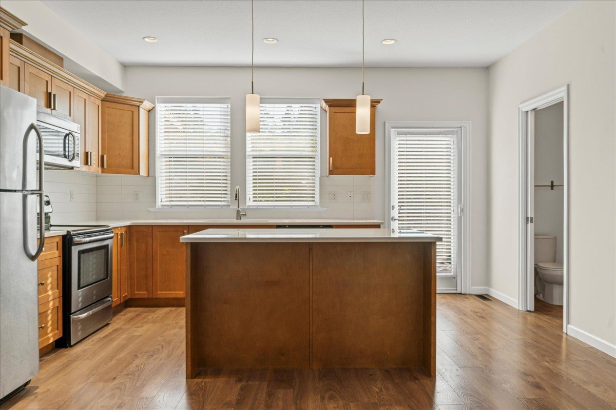Tesla Level 2 EV charger! No strata fees, move-in-ready 3-bedroom, 3-bath row home located in the popular Milner Heights community. Updates include newer laminate flooring, new kitchen countertops, and fresh neutral paint throughout. Spacious kitchen, stainless steel appliances, pantry & ample storage, with a convenient 2-piece bath, HW Tank 2022. Upstairs, you’ll find a large primary bedroom with a walk-in closet, vaulted ceiling, and 4-piece ensuite, plus two additional generously sized bedrooms, perfect for a growing family. The unfinished basement is ready for your ideas. Enjoy outdoor living on your private deck overlooking a fully fenced backyard. Located in the R.E. Mountain school catchment, known for its IB program, with the convenience of a bus stop out front, & future Sky Train.