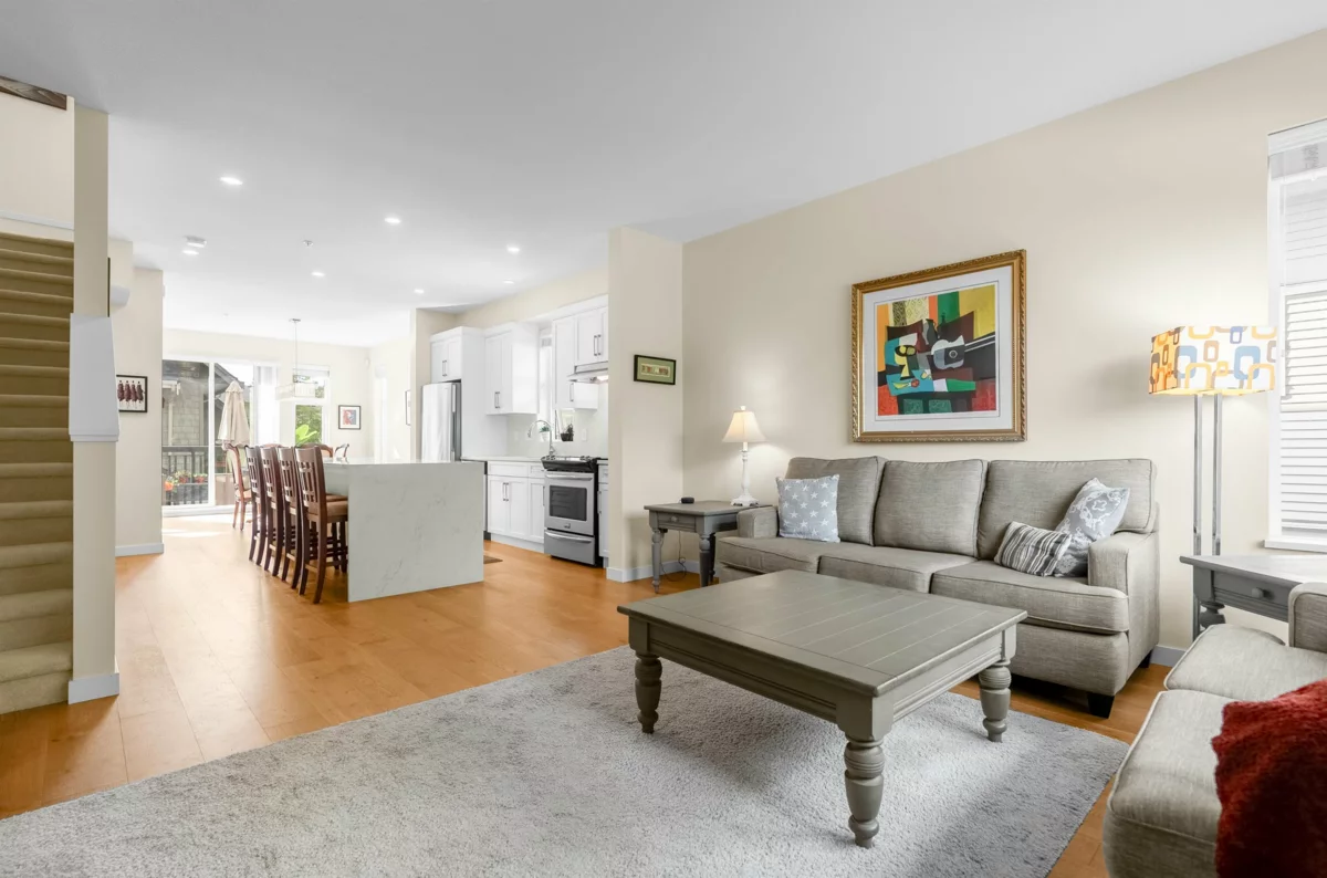 This spacious, quiet, and bright three-bedroom corner home at Wedgewood by Polygon has everything you’re looking for! The contemporary interior of this 1,437 sq. ft. townhome boasts an open-plan layout, a luxurious ensuite, and a gourmet kitchen with granite countertops, newer engineered hardwood flooring, pot lights, fresh paint throughout, and sleek stainless steel appliances. The family room opens onto a spacious southwest-facing balcony, perfect for barbecues, relaxation, and entertaining. Enjoy a private front entrance with a large yard, plus a double-car garage with ample storage—ideal for any family. Located just blocks from the calming waters of Lynn Creek, with easy access to the best the North Shore has to offer, including shops, schools, trails, and transportation. Open Sun 2-4!