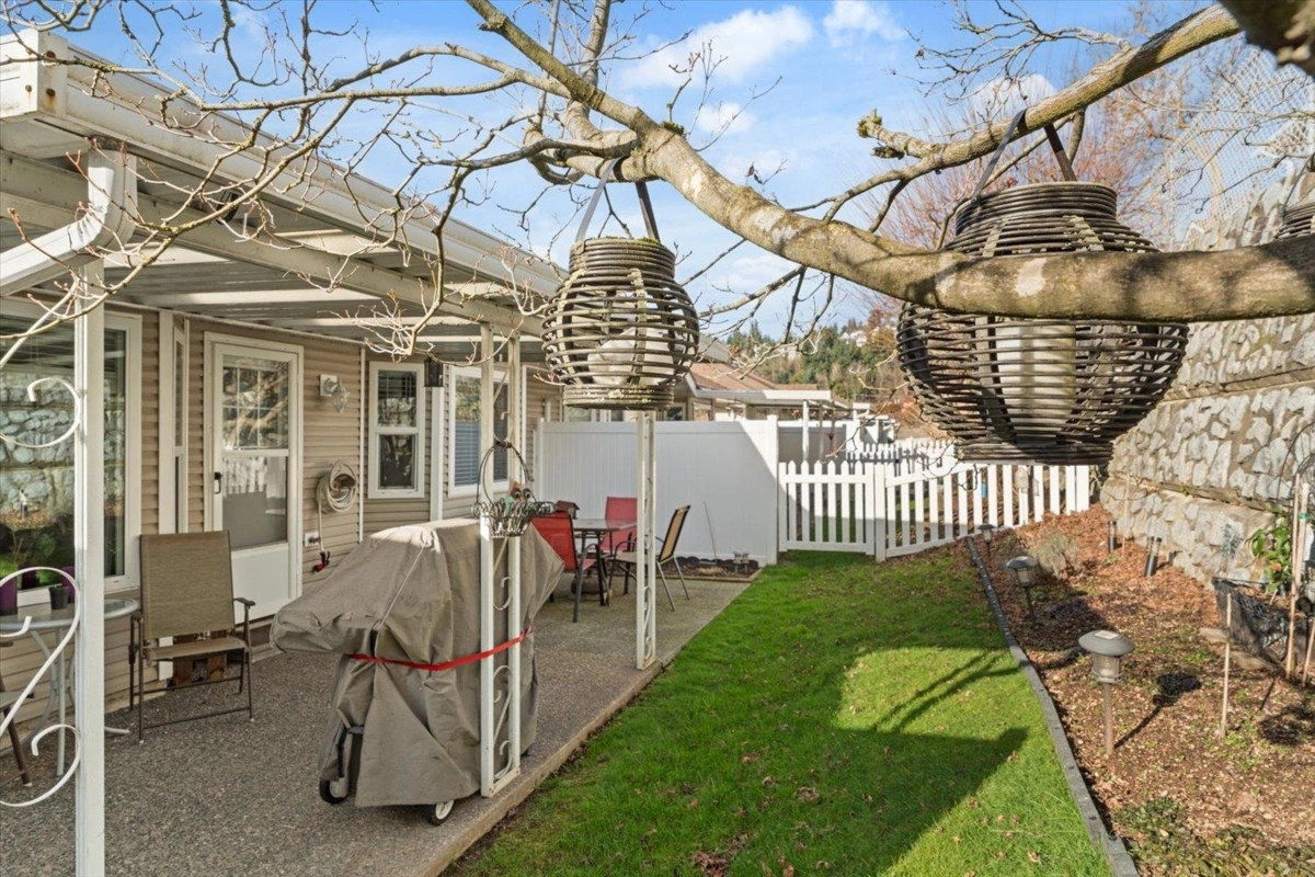 Welcome to Belmont Ridge in East Abbotsford. This well maintained one level two bedroom 2 washroom townhouse is close to shopping, banks, restaurants, Fraser Glen Golf Course and has easy freeway access. Many updates including quartz counter tops, laminate flooring, vinyl windows, blinds, garage door opener, ceiling insulation, stove, fridge, dishwasher are stainless. Newer dark grey W/D., large outdoor patio and the unit has been freshly painted. Single car garage with 2nd parking spot out front (rented $15 pm). This lovely townhome is move in ready. No age restriction. Rentals allowed. One cat or 1 dog not to exceed 25 lbs at maturity. The sellers are non-smoking.