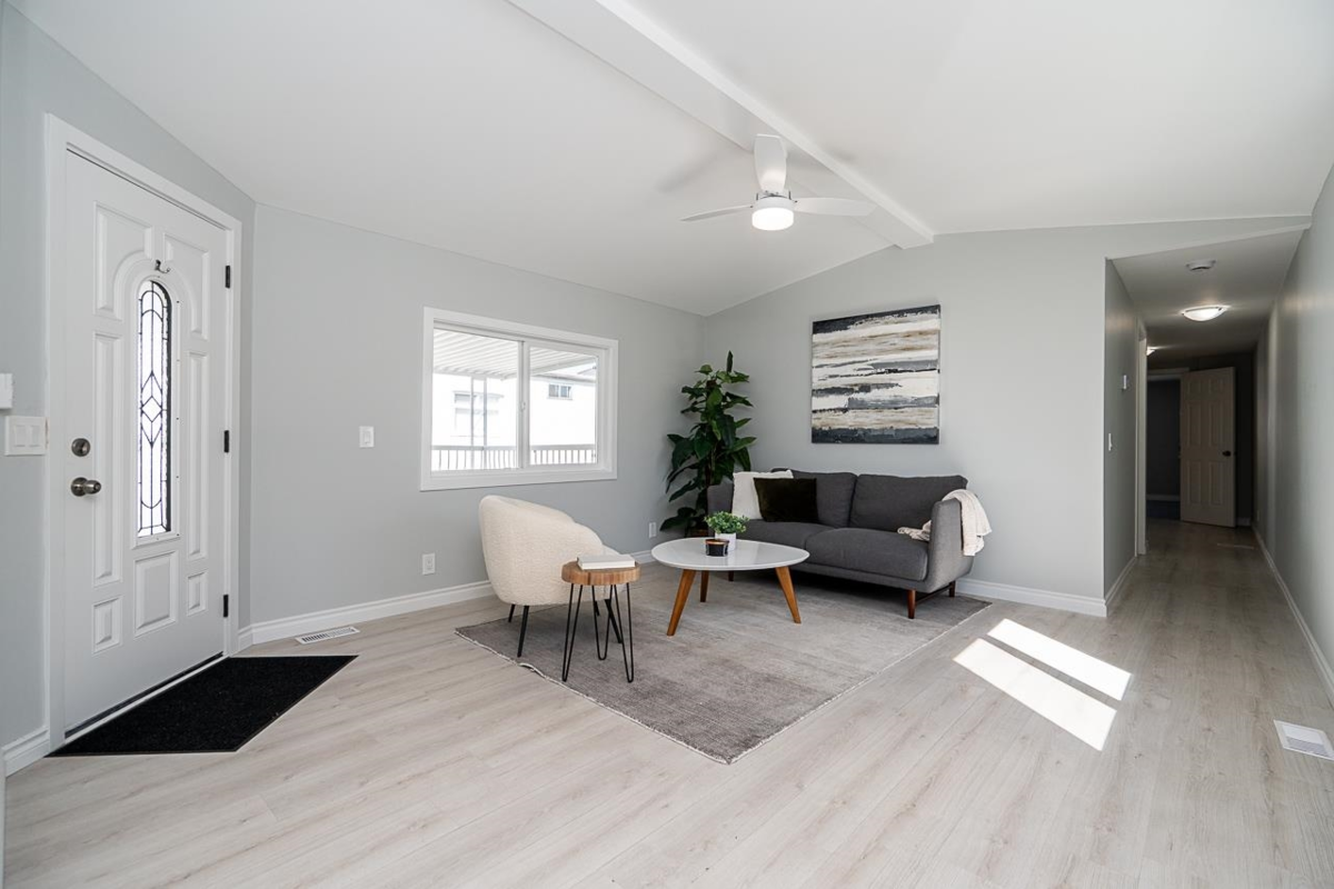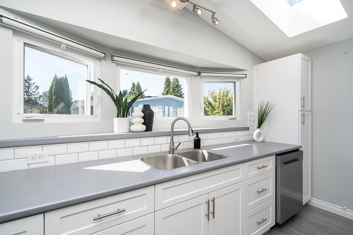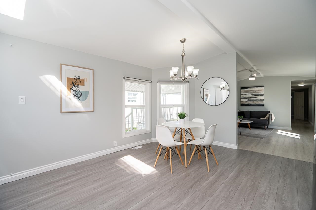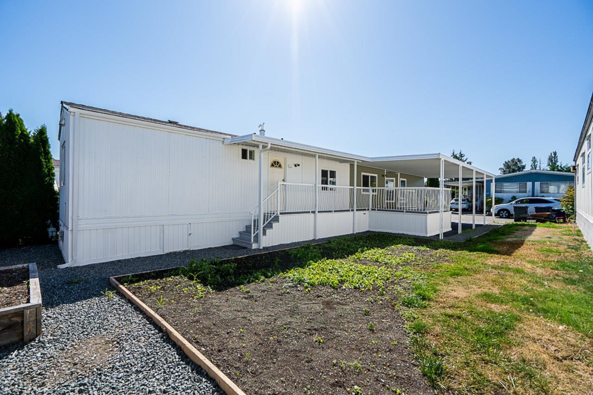 RENOVATED 980 sqft mobile home offers modern rancher-style living with VAULTED CEILINGS, SKYLIGHTS, and your own yard. Inside is a bright renovated kitchen with new stainless steel appliances and skylight windows that flood the space with natural light. Other updates include; vinyl flooring, fresh paint inside and out, renovated bathroom, newer washer and dryer, vinyl windows, and new carpet on the deck, making this home move-in ready. Outside you’ll find space to garden plus two storage sheds for all your tools. Westwood Estates is one of the Fraser Valley’s most sought-after 55+ communities where pad rent is just $892 per month for this home and includes water, sewer, garbage, and land taxes. Large dogs are welcome with manager approval (no vicious breeds).