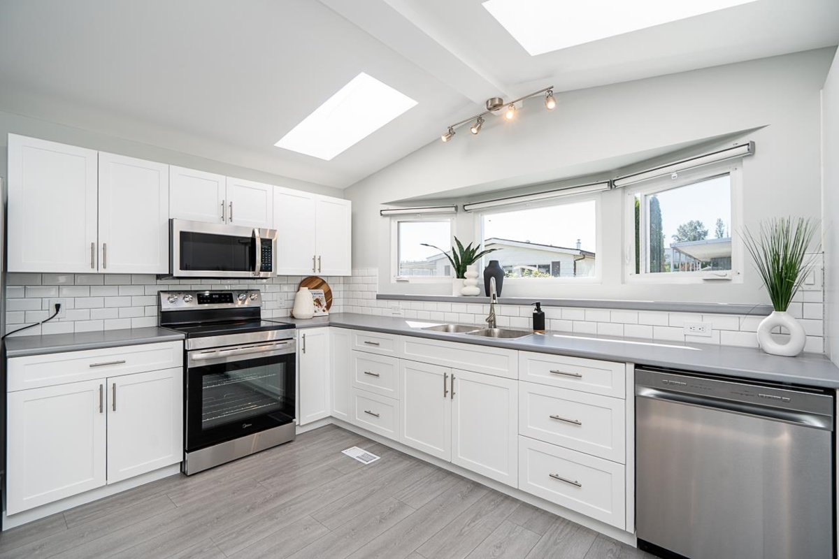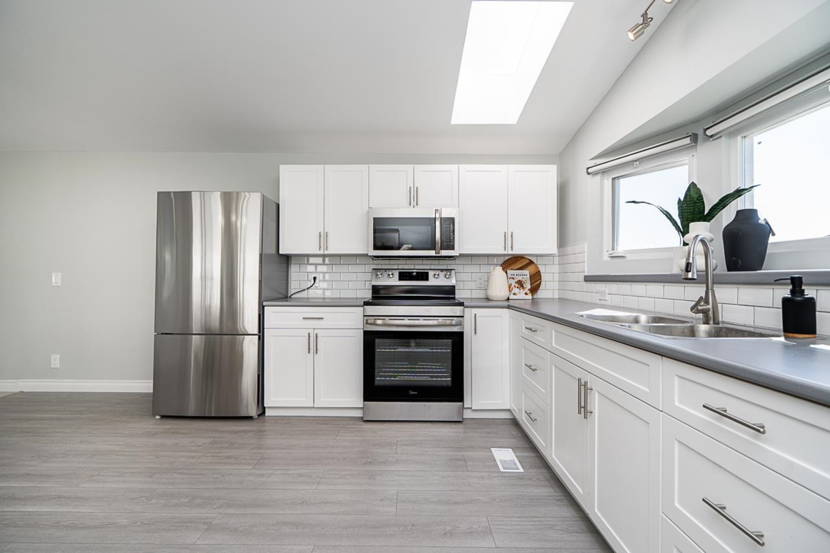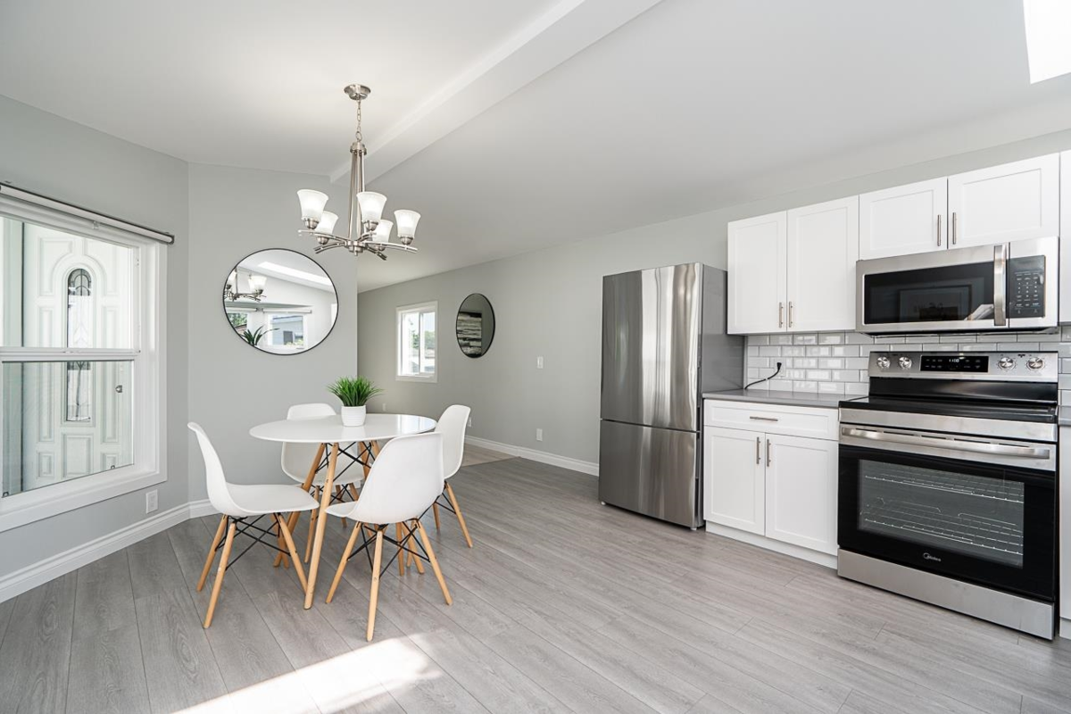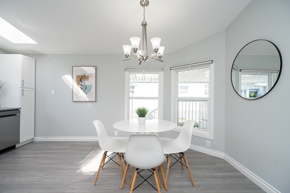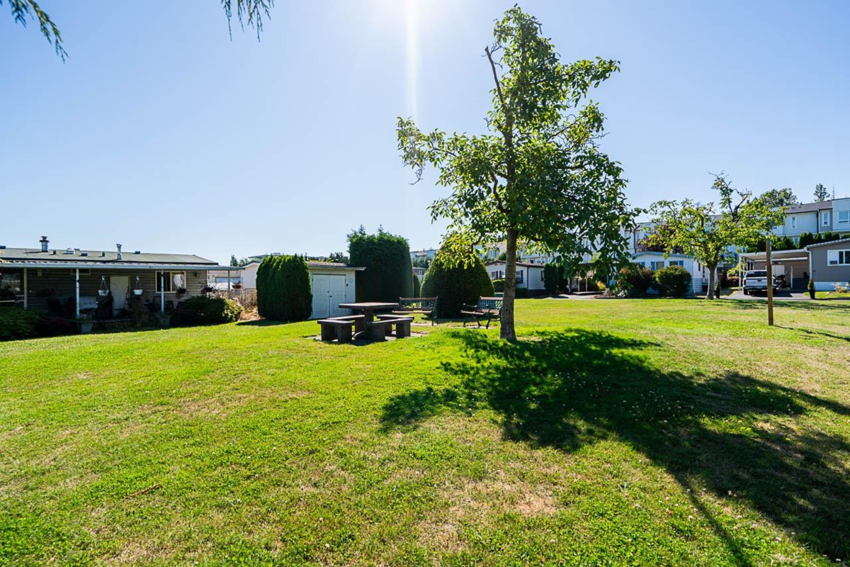 RENOVATED 980 sqft mobile home offers modern rancher-style living with VAULTED CEILINGS, SKYLIGHTS, and your own yard. Inside is a bright renovated kitchen with new stainless steel appliances and skylight windows that flood the space with natural light. Other updates include; vinyl flooring, fresh paint inside and out, renovated bathroom, newer washer and dryer, vinyl windows, and new carpet on the deck, making this home move-in ready. Outside you’ll find space to garden plus two storage sheds for all your tools. Westwood Estates is one of the Fraser Valley’s most sought-after 55+ communities where pad rent is just $892 per month for this home and includes water, sewer, garbage, and land taxes. Large dogs are welcome with manager approval (no vicious breeds).