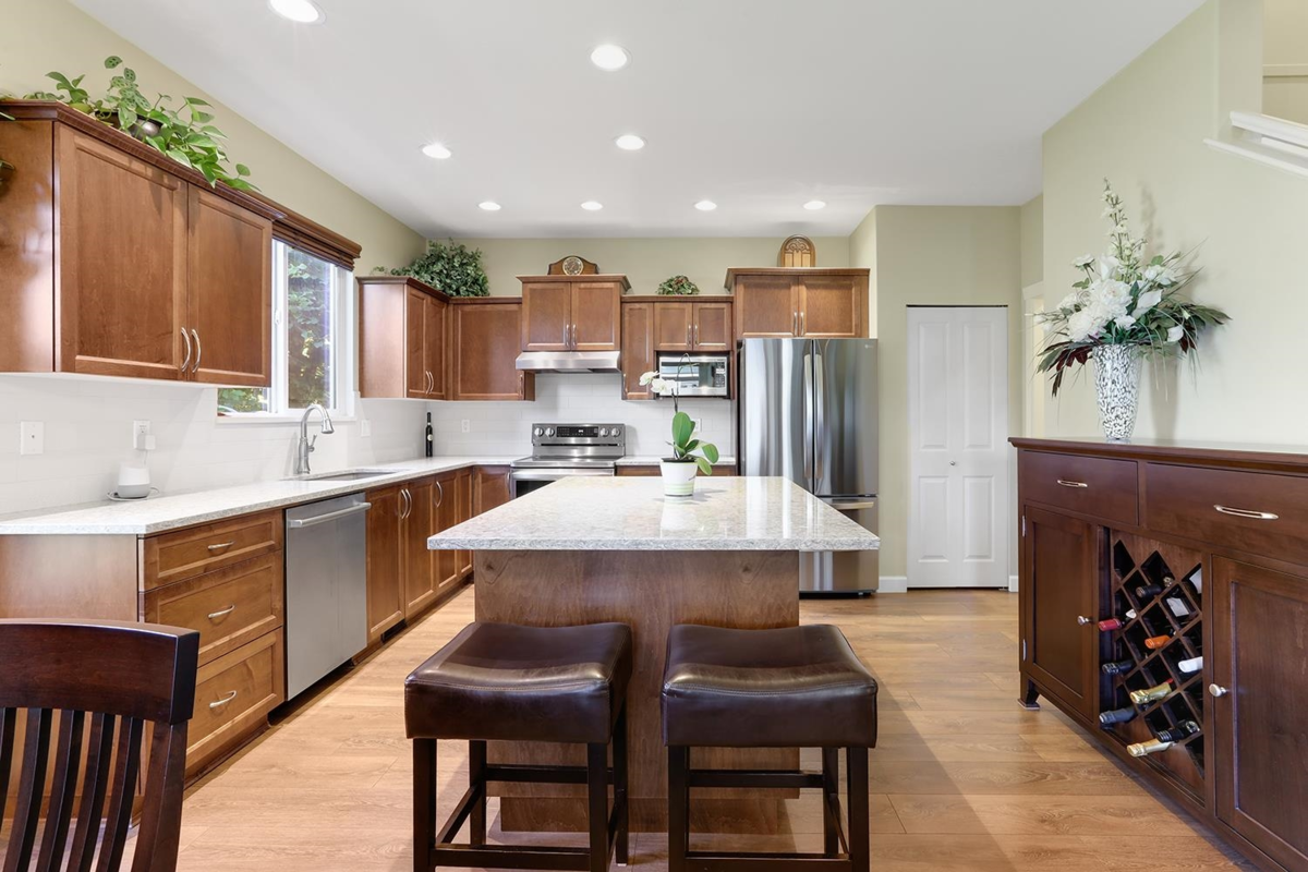 This refined 3,110 sq. ft. Willoughby home in Jeffries Brook is fully modernized for 2026. The main floor features an open-concept great room with a spacious kitchen showcasing quartz counters, S.S. appliances (2023) and a large island. Enjoy year-round hosting on the Insulated covered patio with gas BBQ hookup. Mechanical & Smart Upgrades: New Heat Pump/AC, Furnace, HWT, and Washer/Dryer (2024); Roof (2020). Features include Fiber-to-the-home, built-in vacuum, irrigation, and smart locks. Tastefully renovated with laminate/tile throughout, updated bathrooms and a new fireplace. The finished basement has a separate entrance with French doors and in-floor tile heating. Steps from Elementary, Middle, and Secondary Schools, Langley Events Centre, and shopping. Move-in ready luxury!
