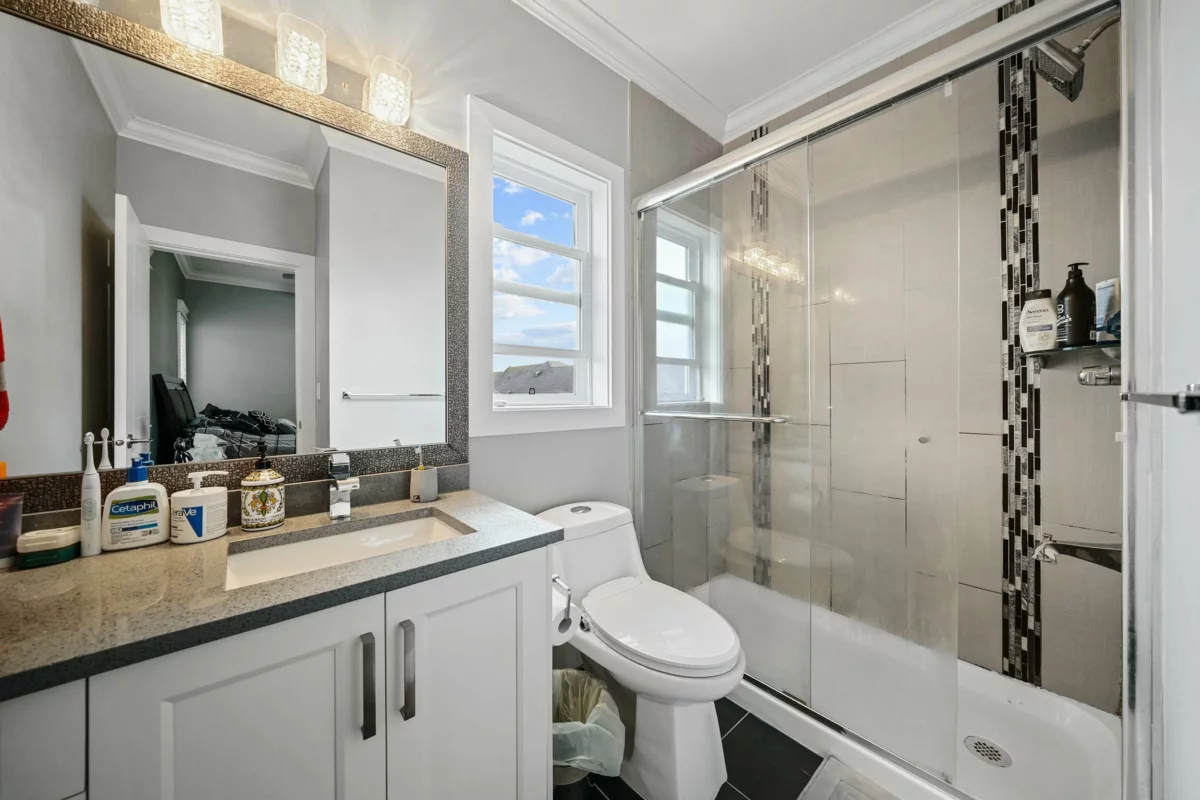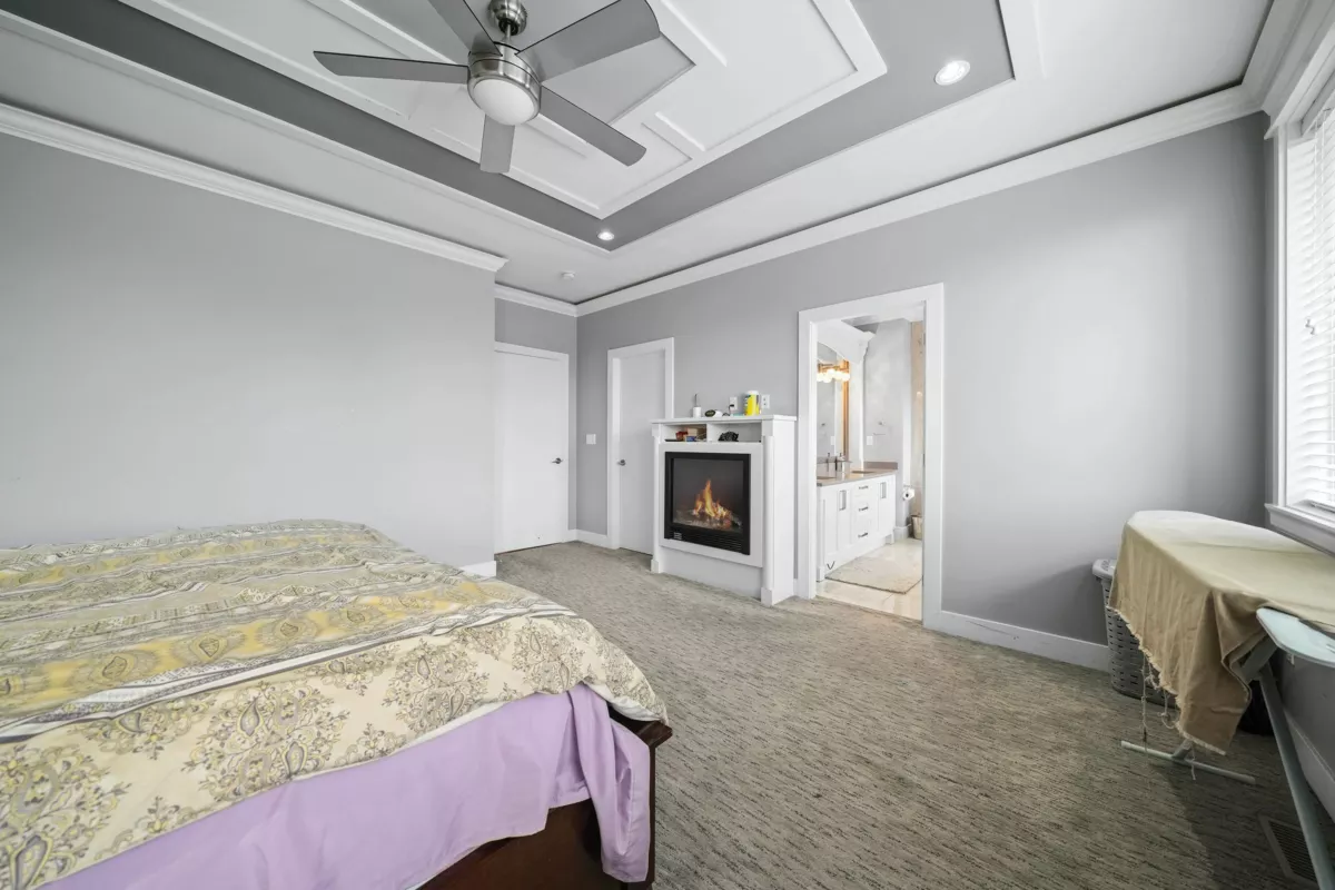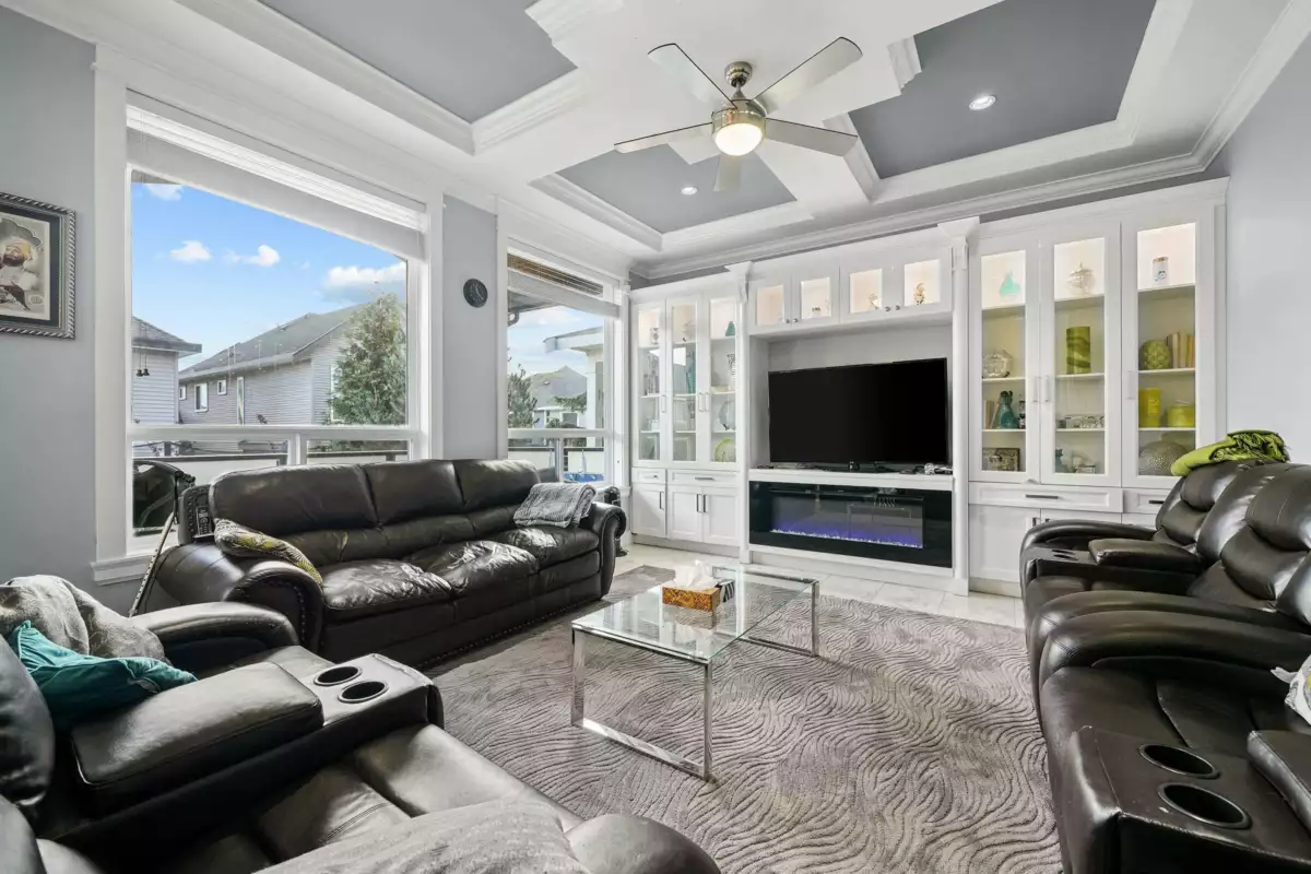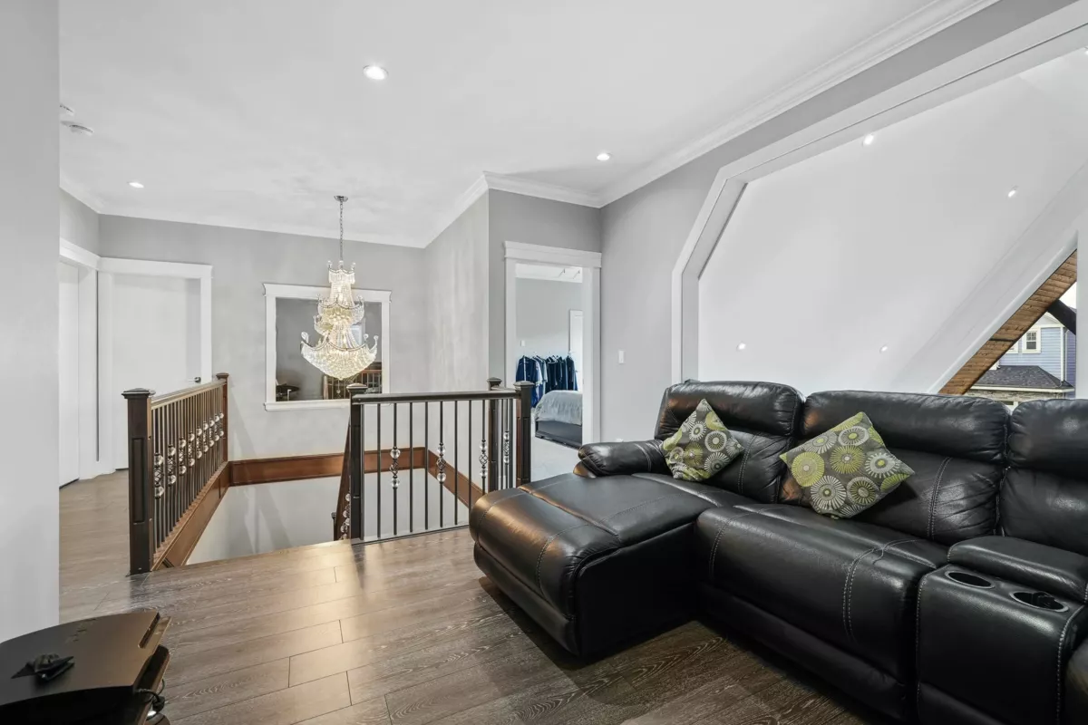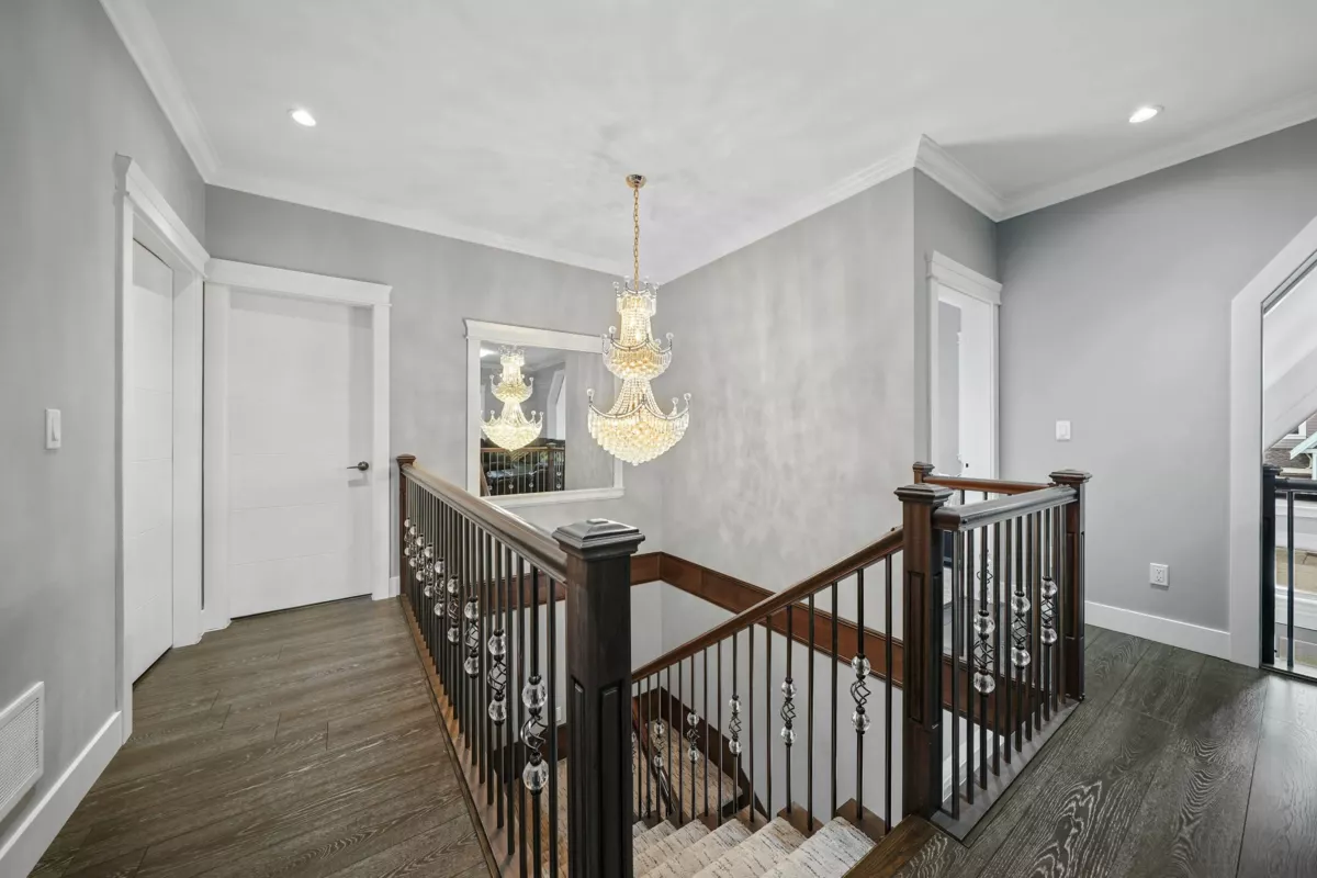 Welcome to this striking 2016-built home in the heart of Chimney Heights, blending modern luxury with timeless design. The grand vaulted entry opens to elegant living and dining areas with soaring ceilings and designer lighting. A chef-inspired kitchen features dual islands, premium appliances, and seamless flow into the family room — perfect for entertaining. Enjoy upgrades throughout, including epoxy garage flooring, turf backyard, and A/C comfort year-round. The lower level offers a 2-bedroom suite plus a bachelor suite, ideal for income or extended family. Steps to schools, parks, and easy Highway 10 & 152 access — this one defines refined Surrey living.