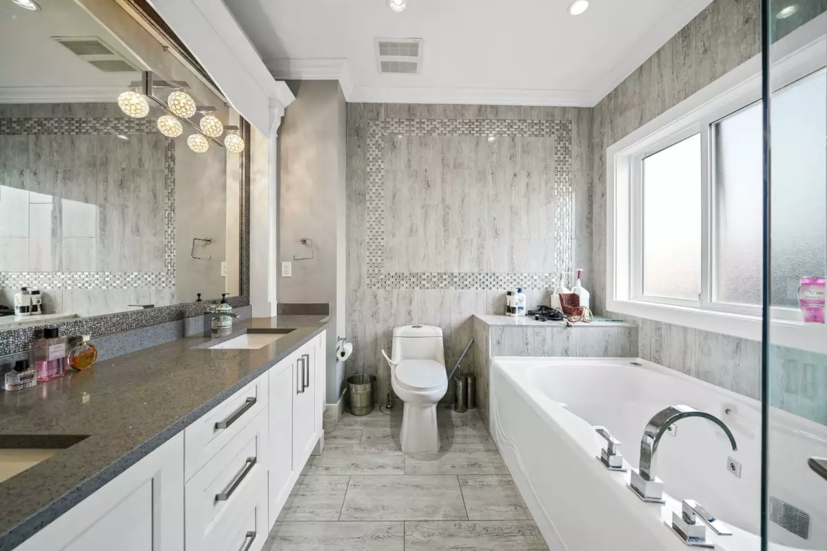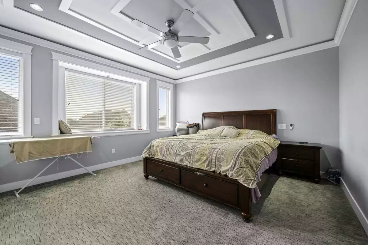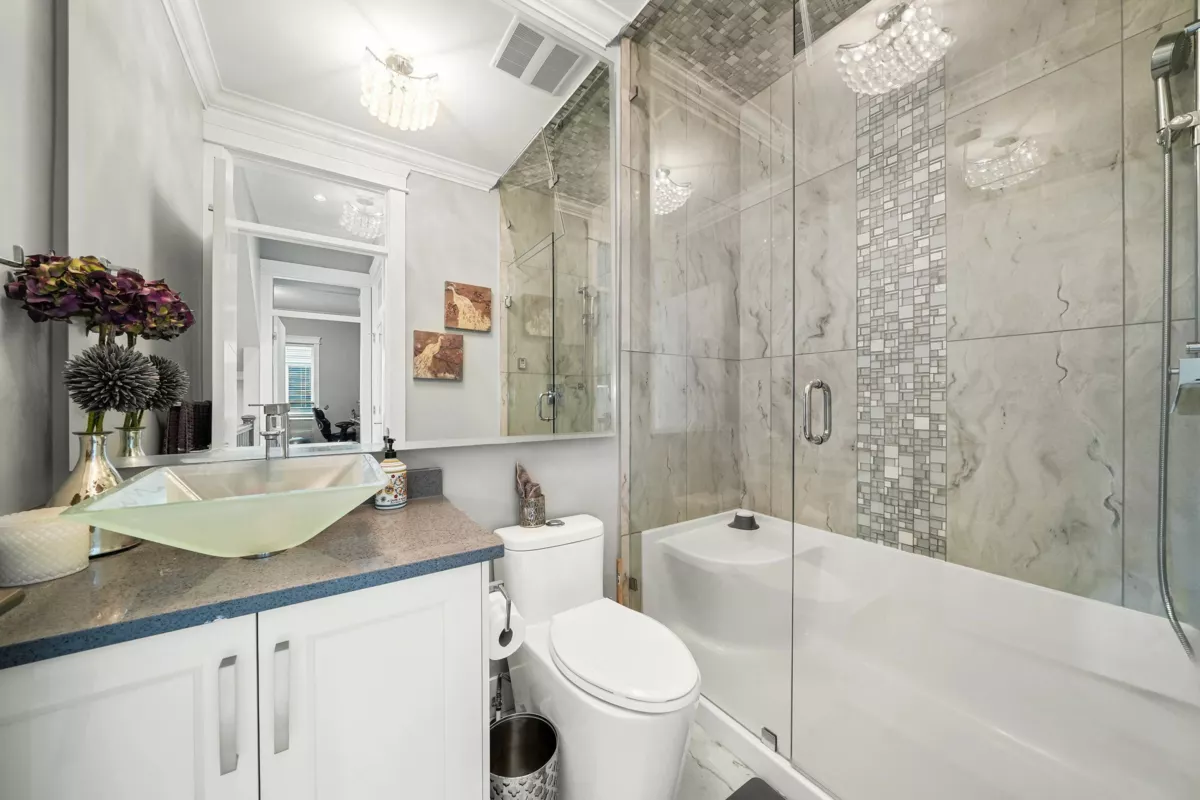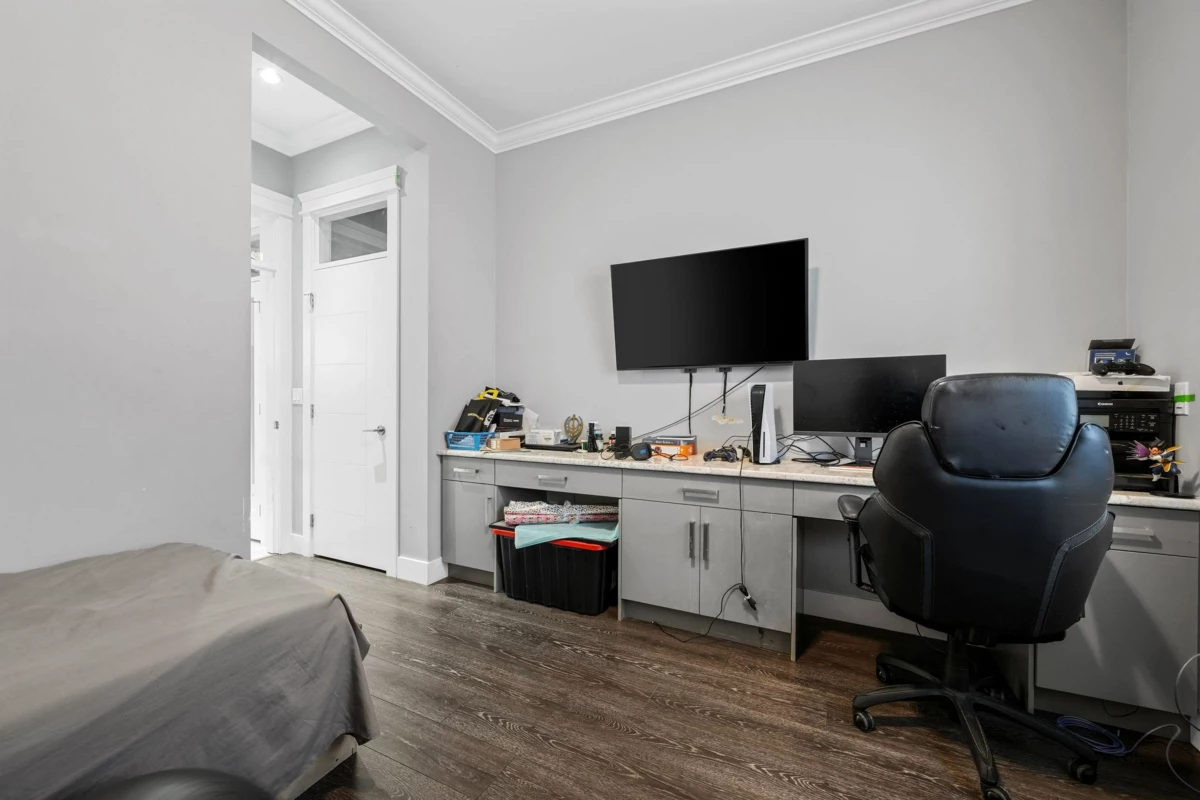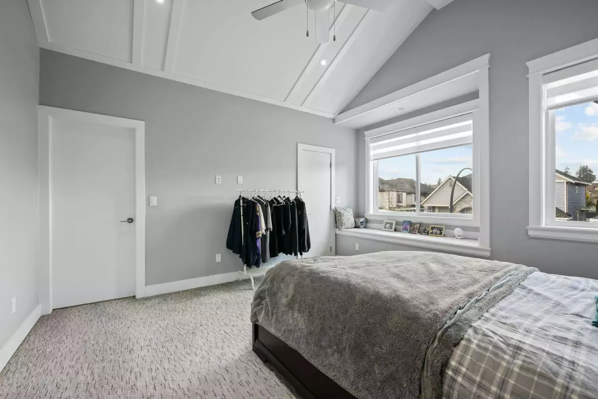 Welcome to this striking 2016-built home in the heart of Chimney Heights, blending modern luxury with timeless design. The grand vaulted entry opens to elegant living and dining areas with soaring ceilings and designer lighting. A chef-inspired kitchen features dual islands, premium appliances, and seamless flow into the family room — perfect for entertaining. Enjoy upgrades throughout, including epoxy garage flooring, turf backyard, and A/C comfort year-round. The lower level offers a 2-bedroom suite plus a bachelor suite, ideal for income or extended family. Steps to schools, parks, and easy Highway 10 & 152 access — this one defines refined Surrey living.